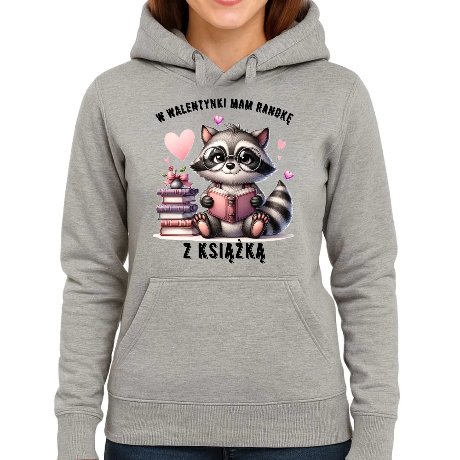 Bluza damska z kapturem na Walentynki dla mola książkowego – Mam randkę z książką W20