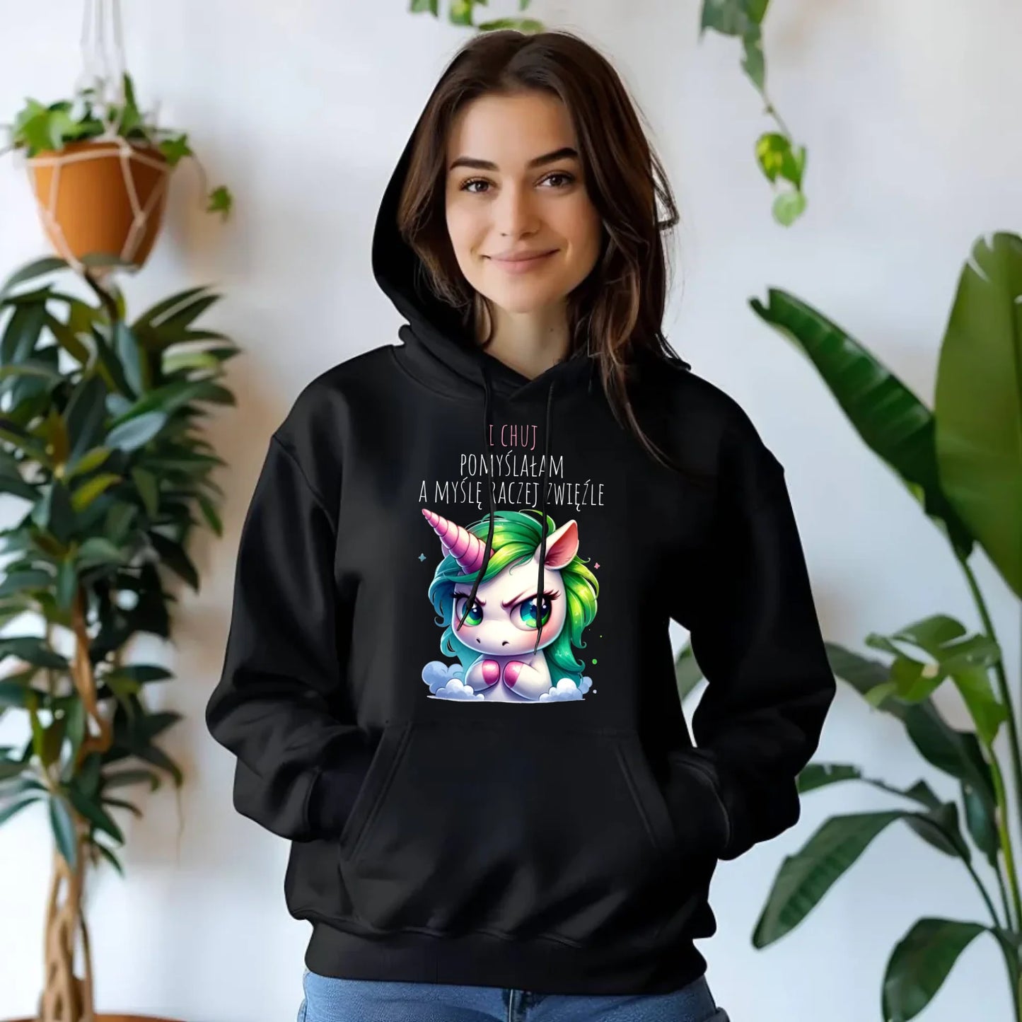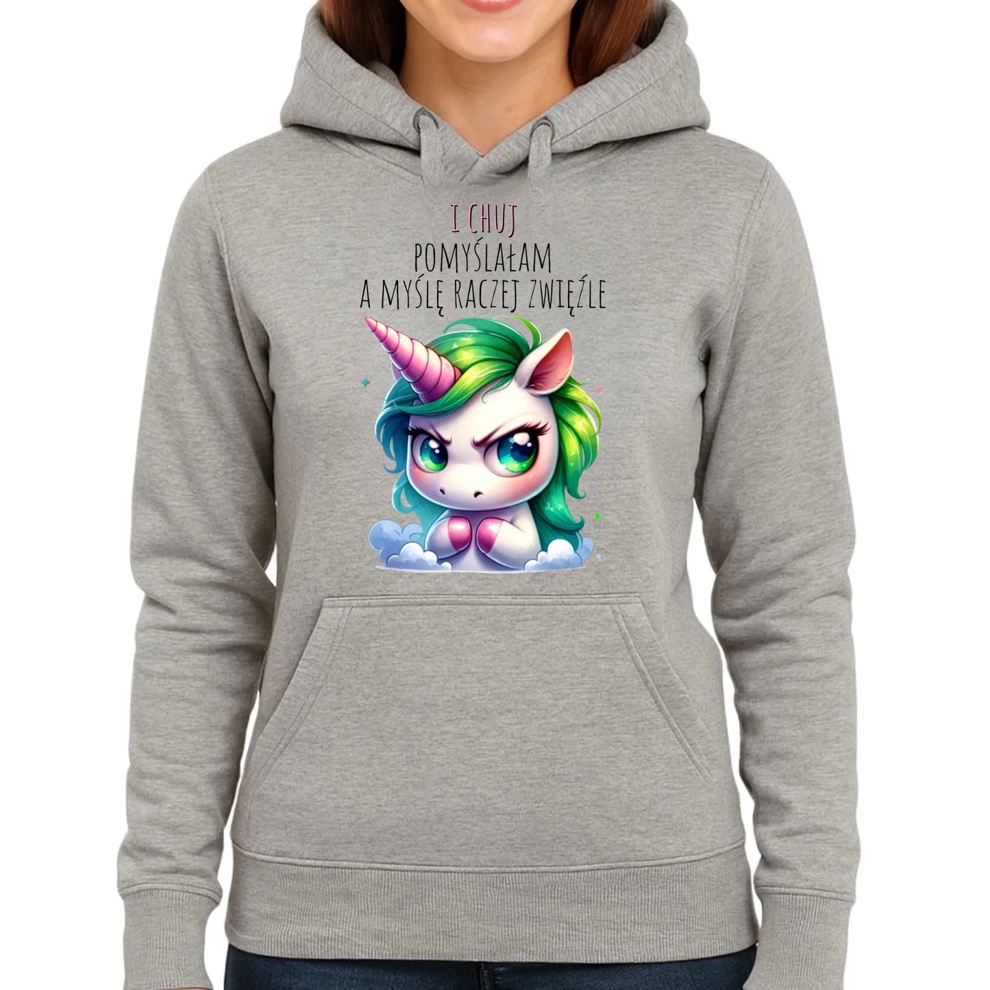 Bluza damska z kapturem - Jednorożec - I ch*j pomyślałam – bez cenzury DZ12
