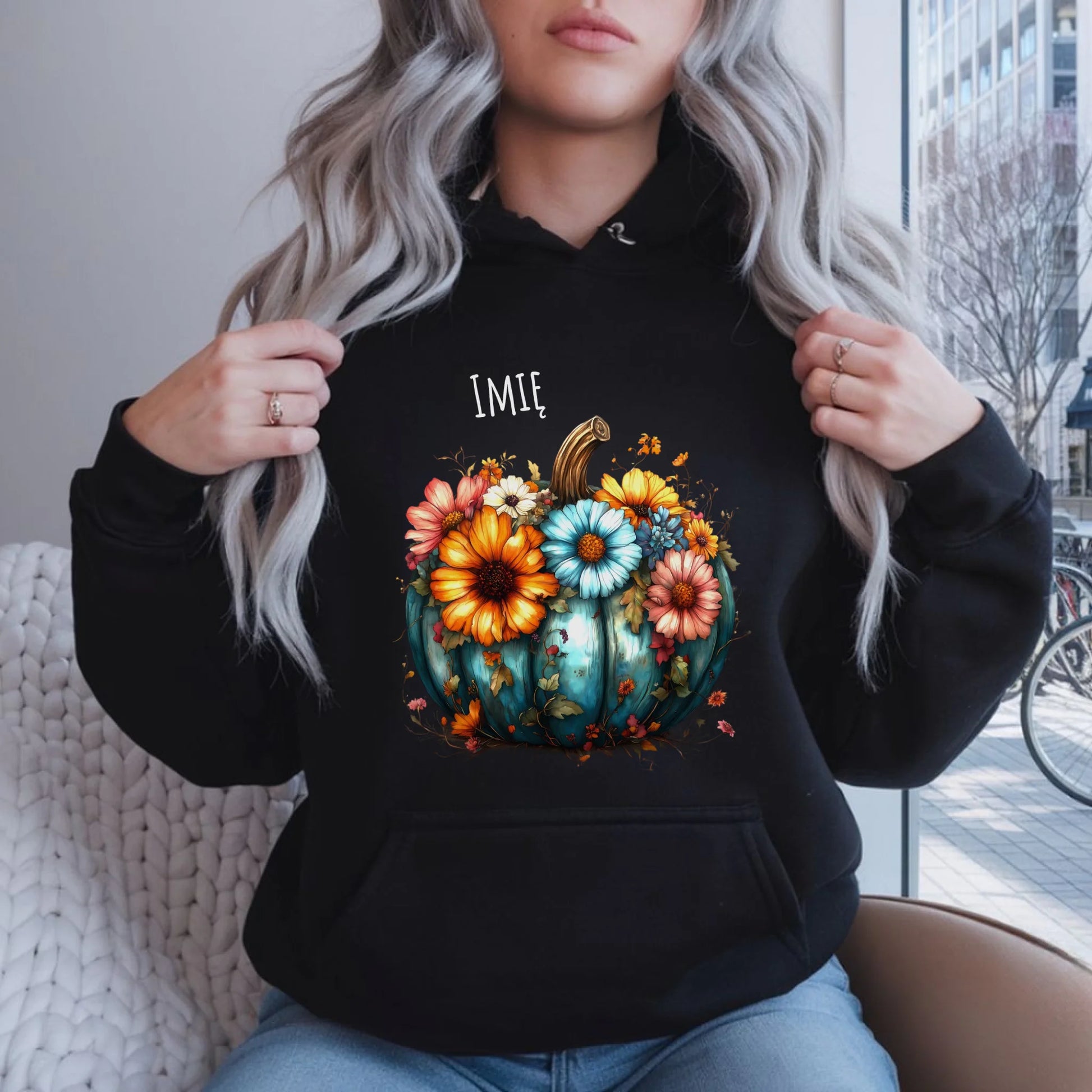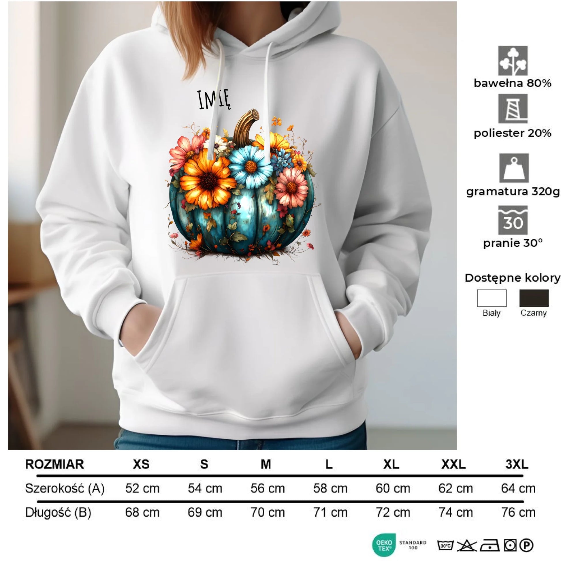 Bluza damska z kapturem jesienna - Kwiatowa dynia - personalizowana JS27