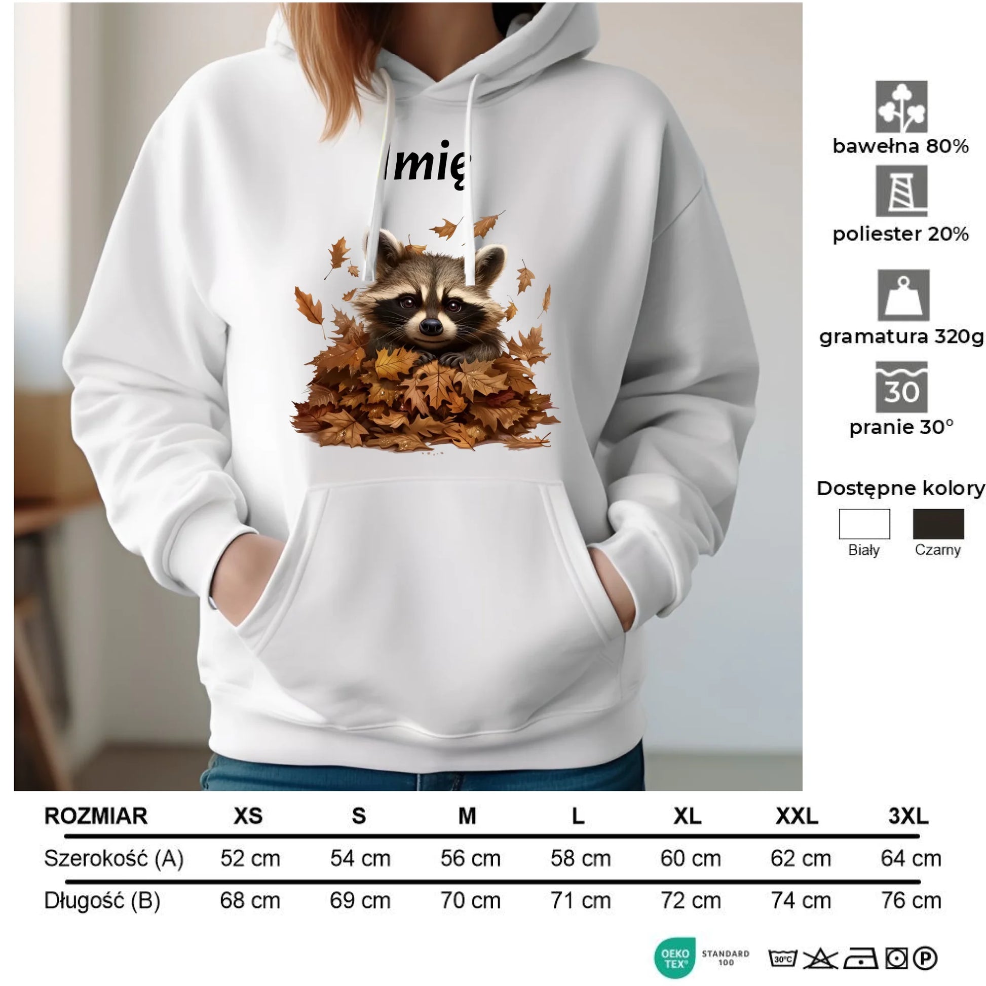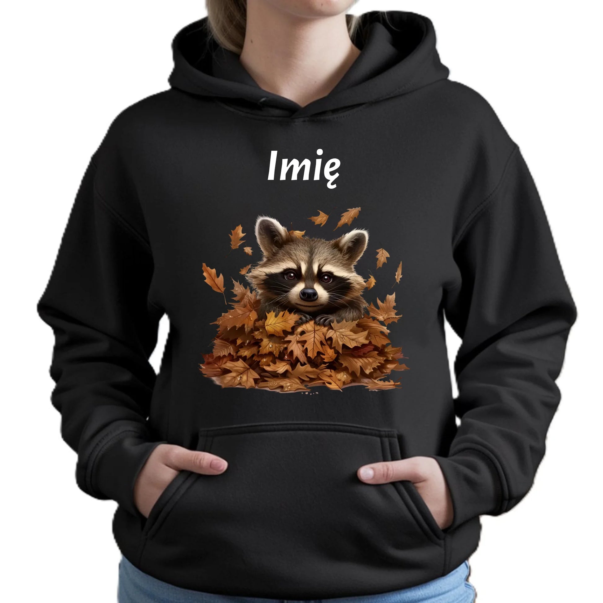 Bluza damska z kapturem jesienna - Szop w liściach - personalizowana JS24