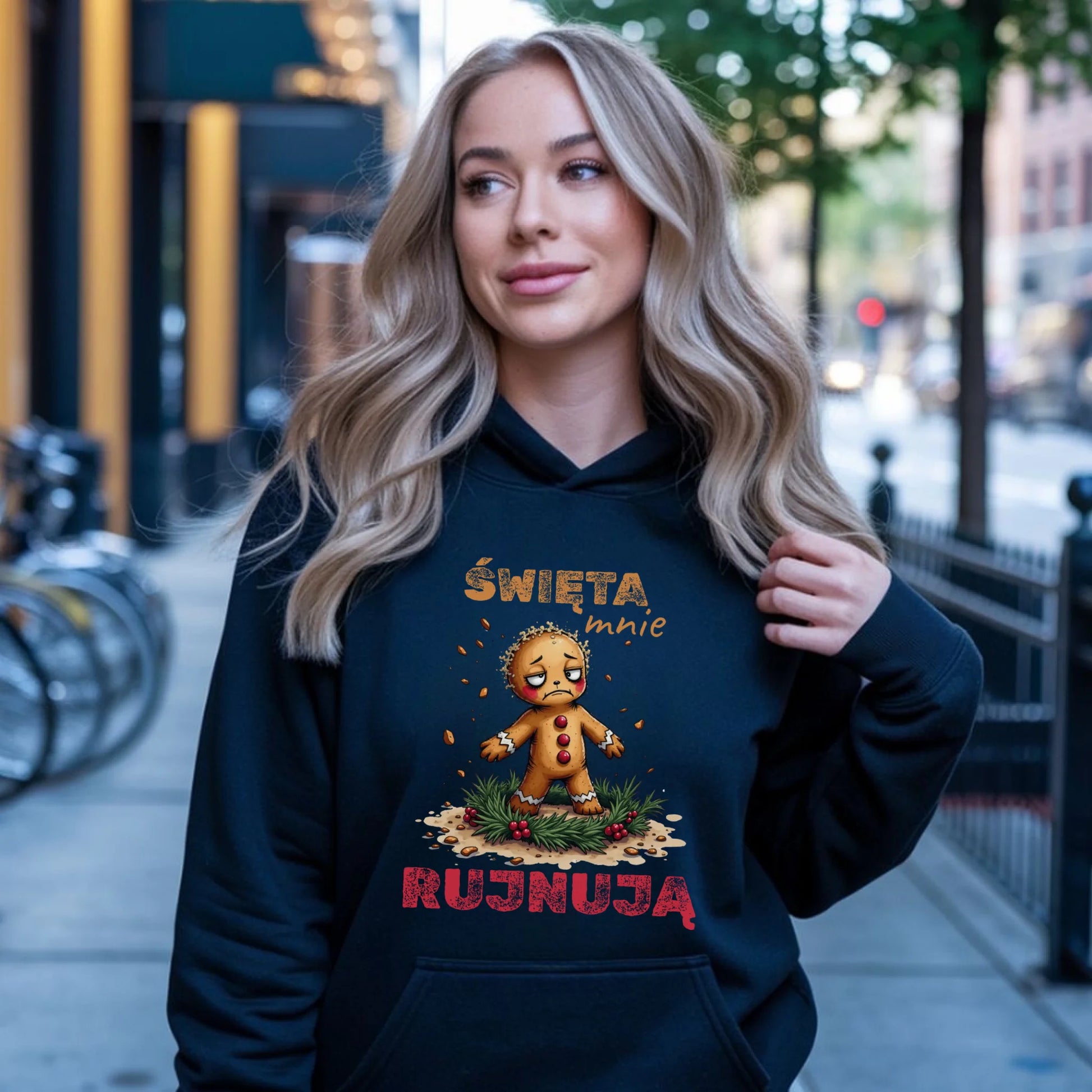 Bluza damska z kapturem świąteczna - Piernik Święta mnie rujnują BN143