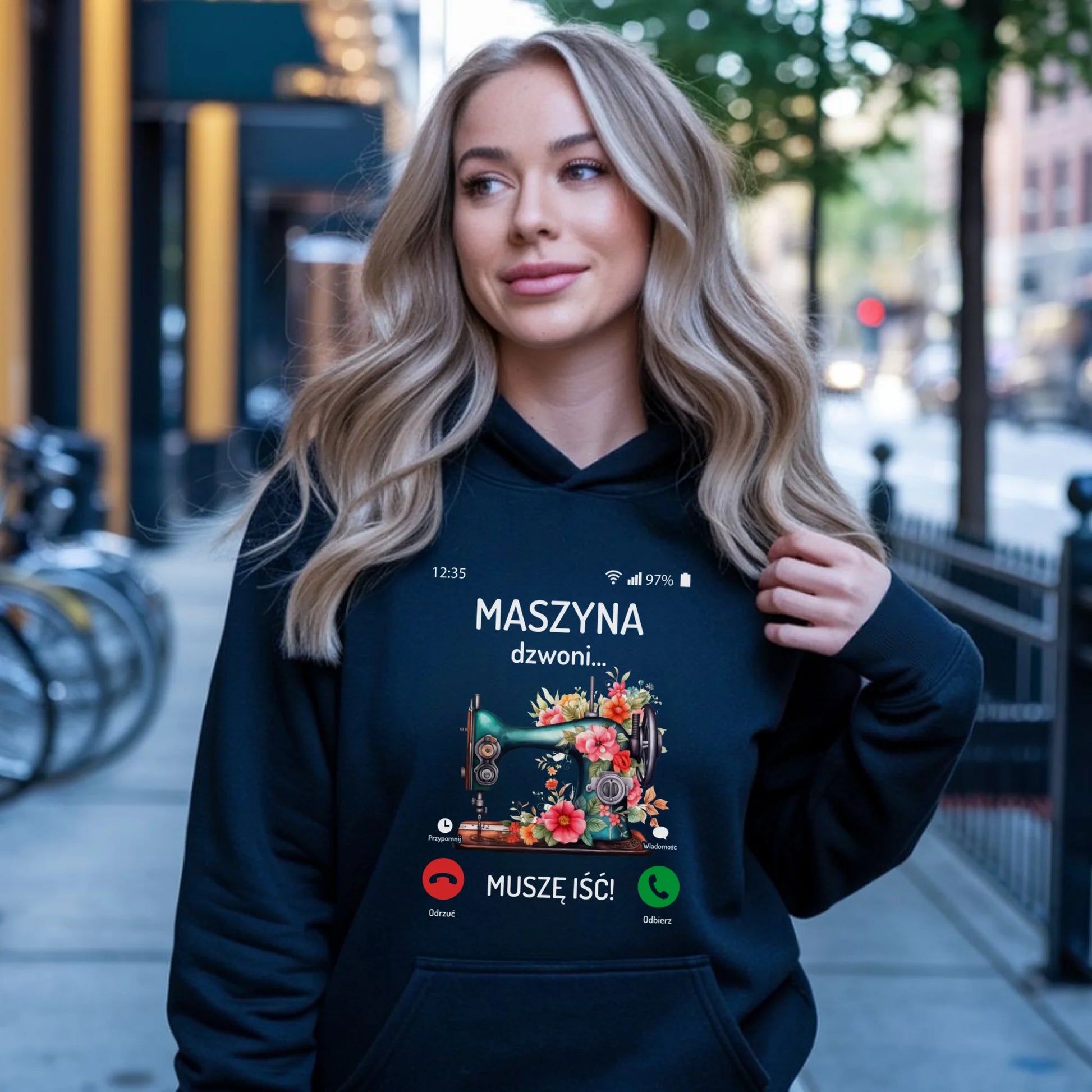 Bluza damska z kapturem szyciowa dla krawcowej - Maszyna dzwoni muszę iść HS05