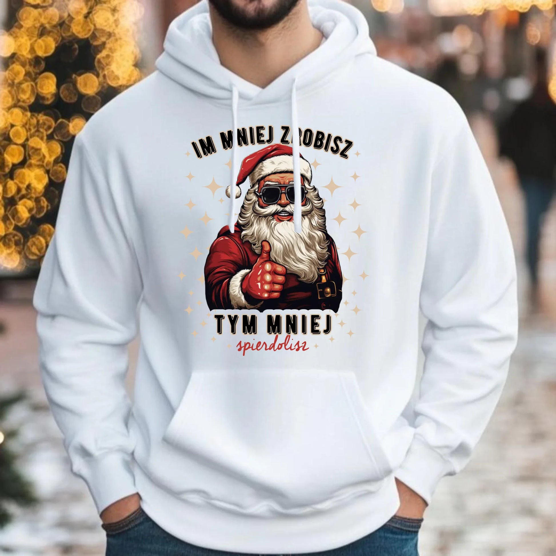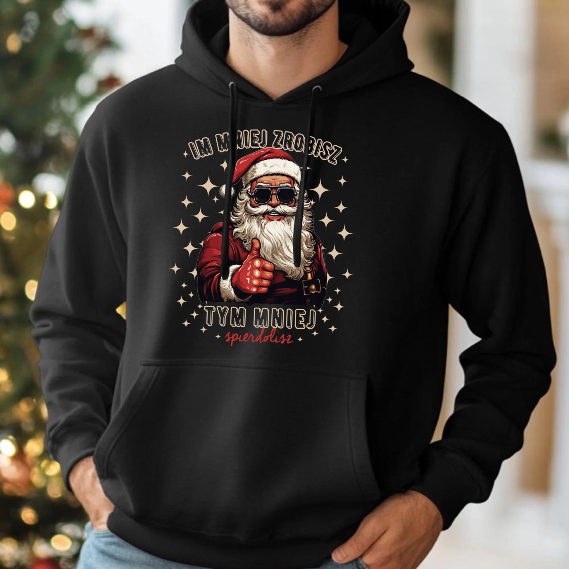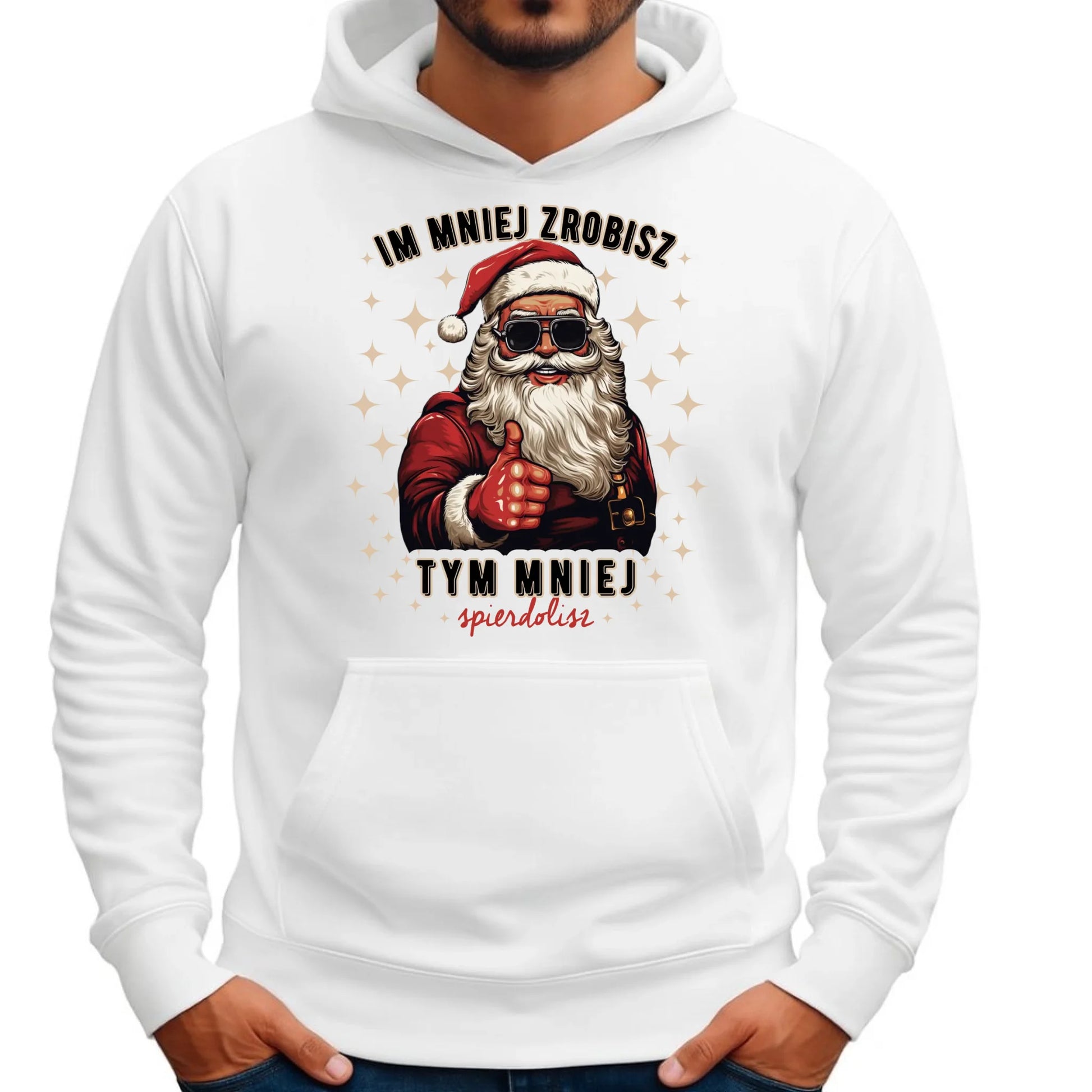 Bluza męska z kapturem świąteczna - Im mniej zrobisz tym mniej spie*****sz - bez cenzury BN146