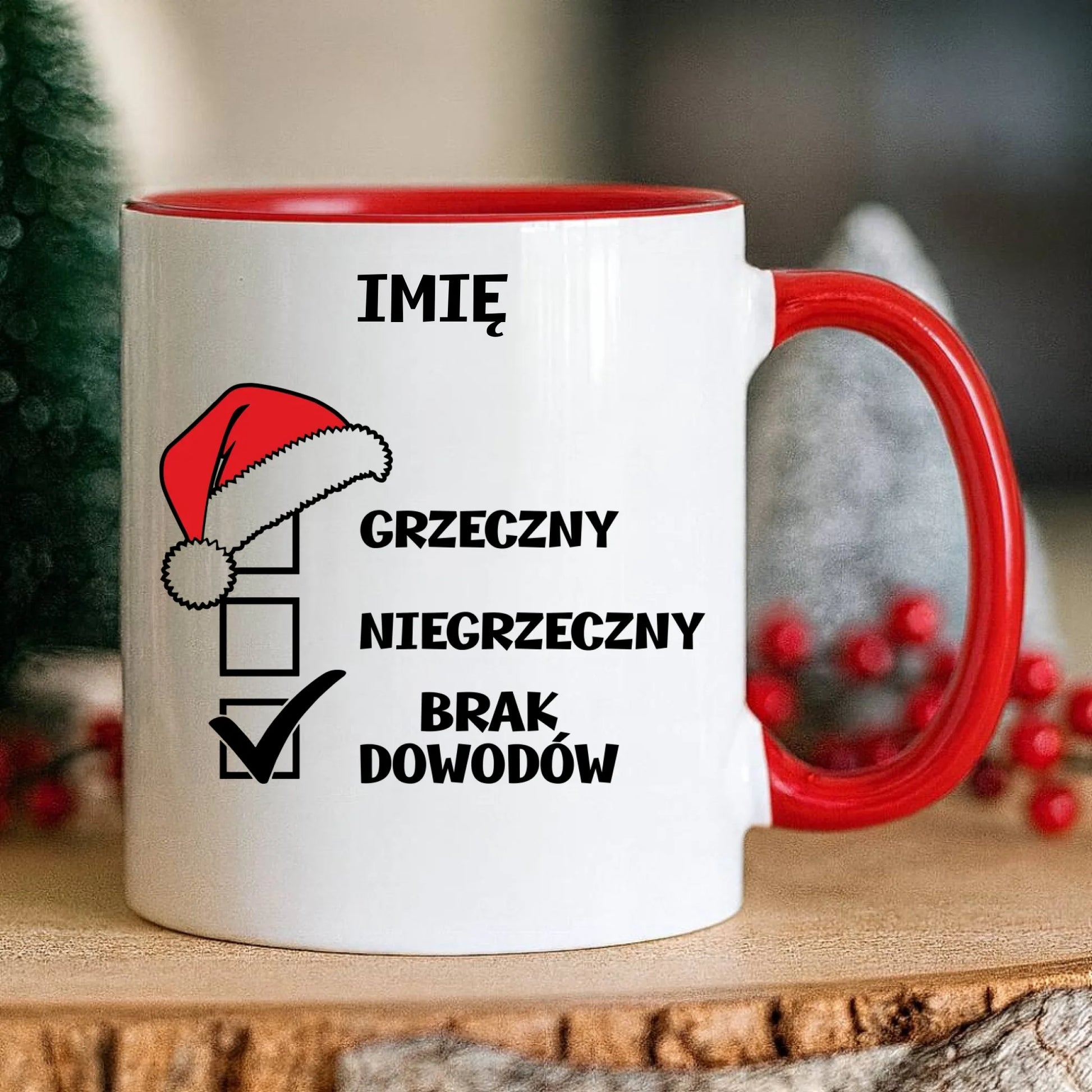 Kubek świąteczny - Grzeczny niegrzeczny brak dowodów - personalizowany BN99