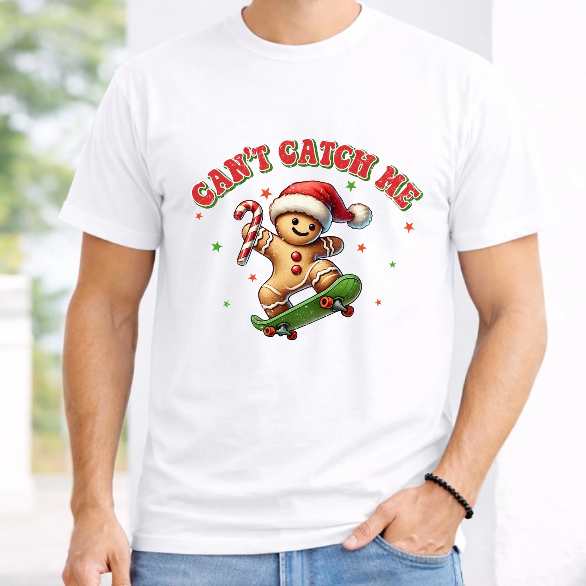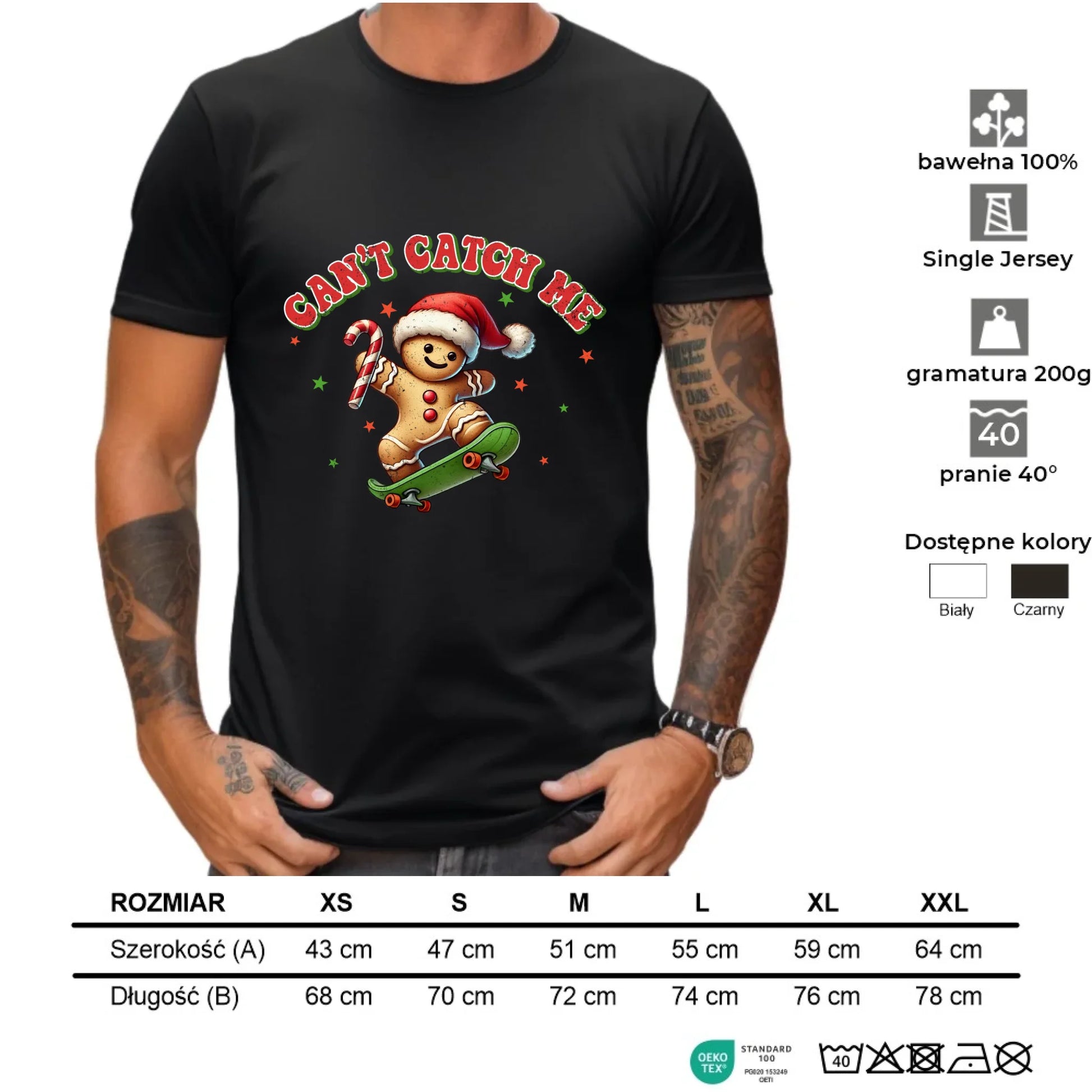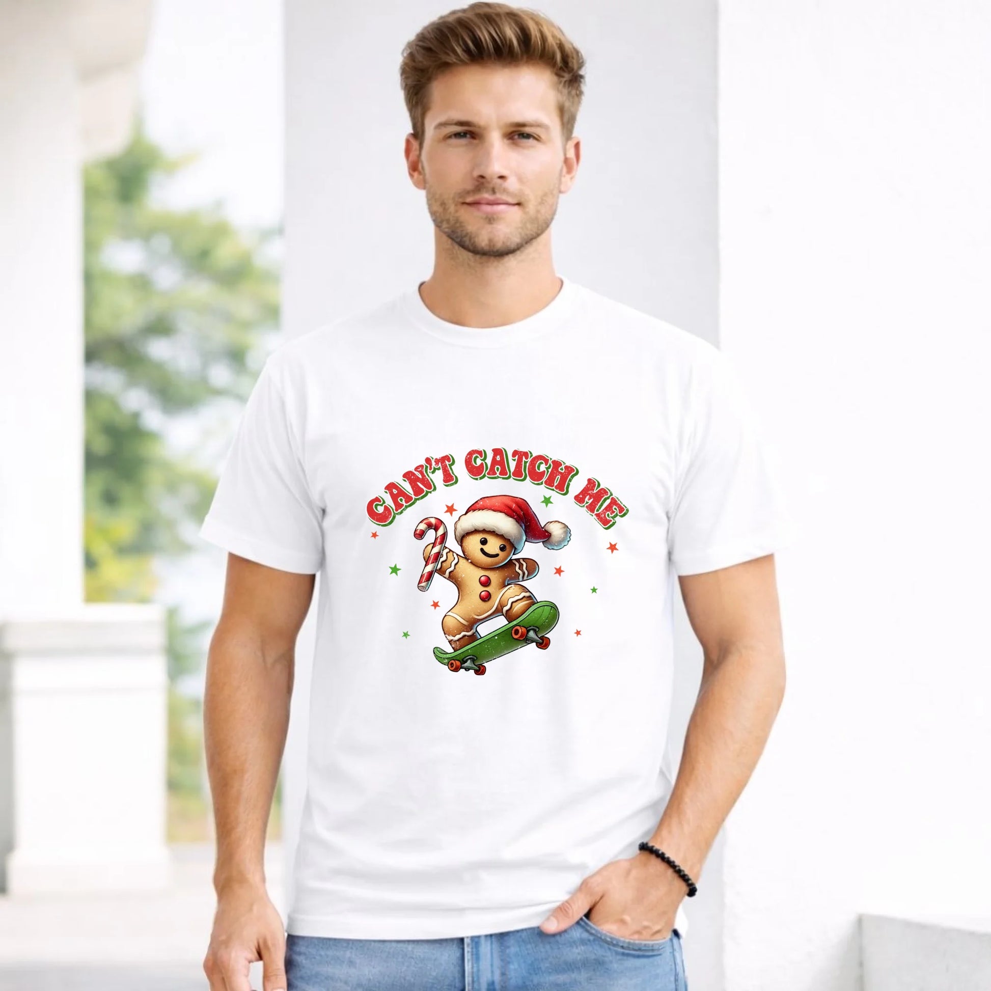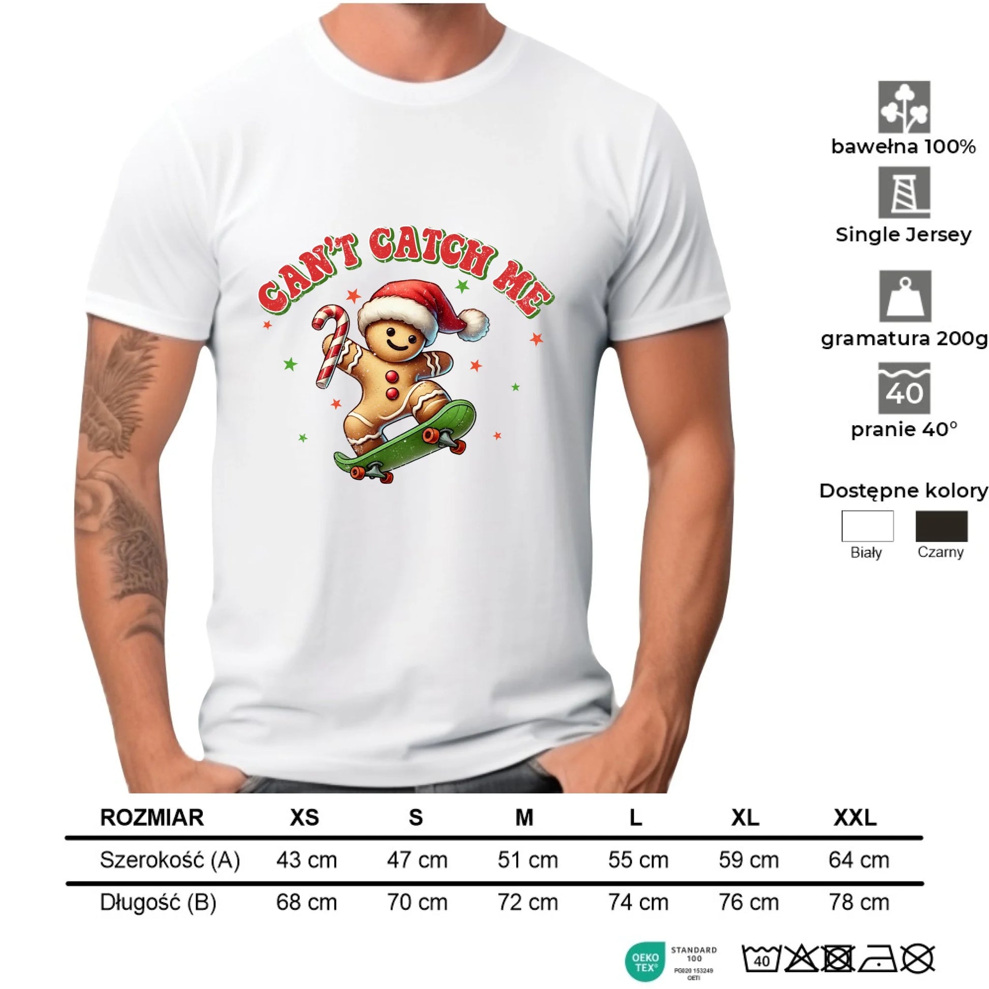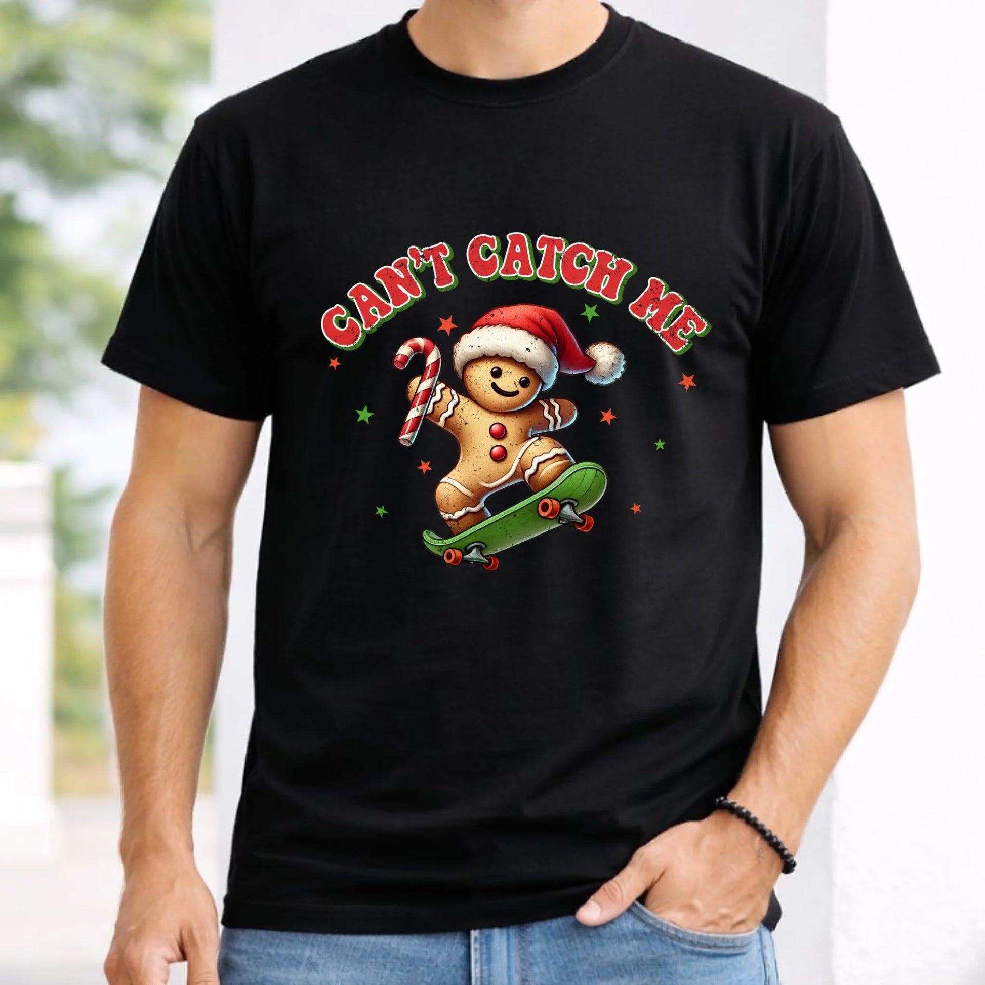 Koszulka męska świąteczna - Piernik na deskorolce Can't catch me BN45