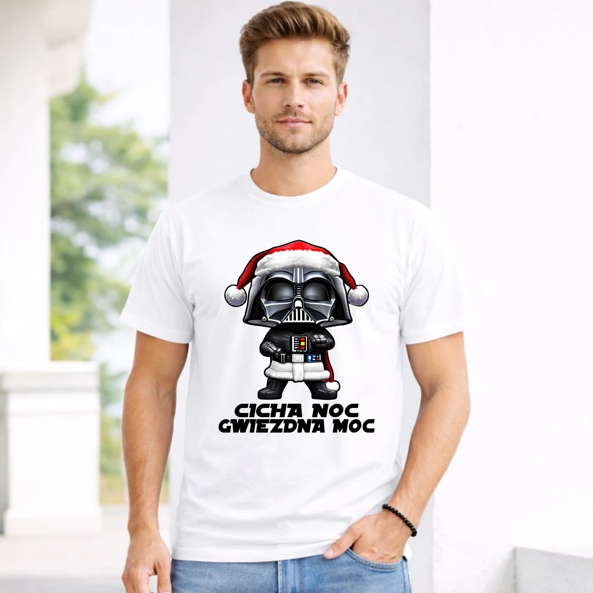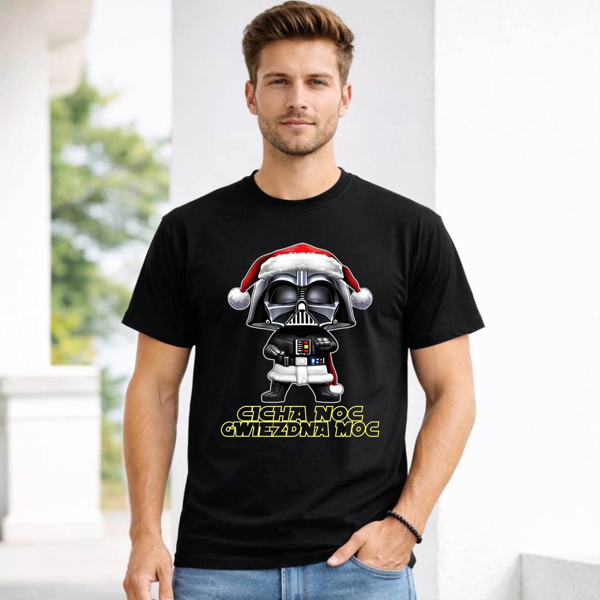 Koszulka męska świąteczna dla fanów Gwiezdnych Wojen - Cicha noc, gwiezdna moc BN132