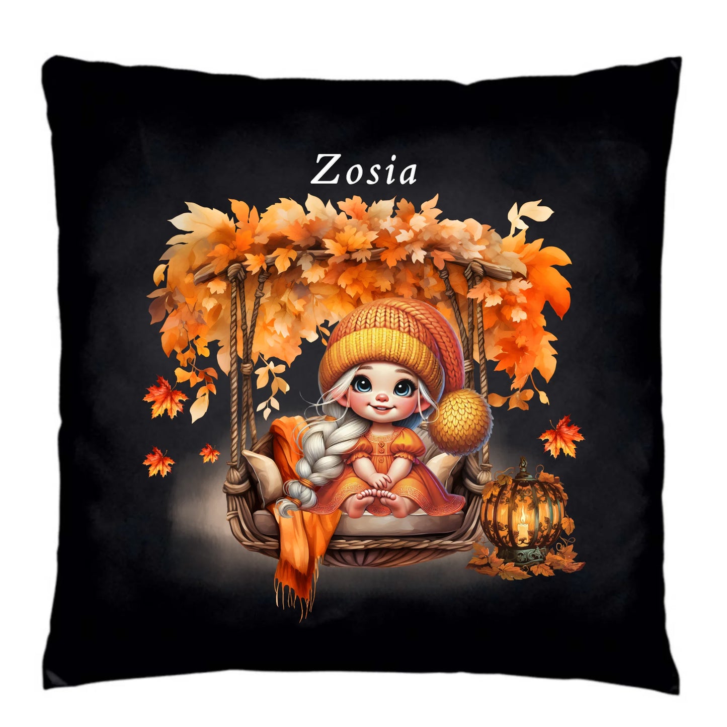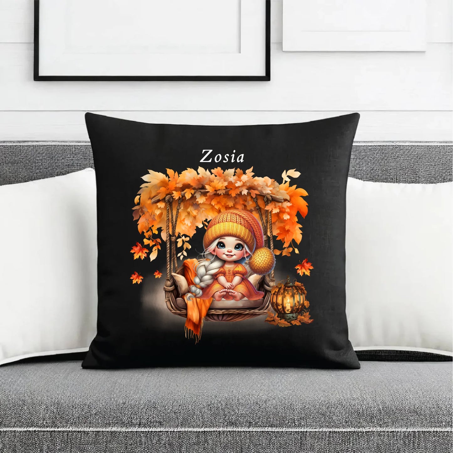 Poduszka dekoracyjna jesieniara - Dziewczynka z liśćmi - personalizowana JS17