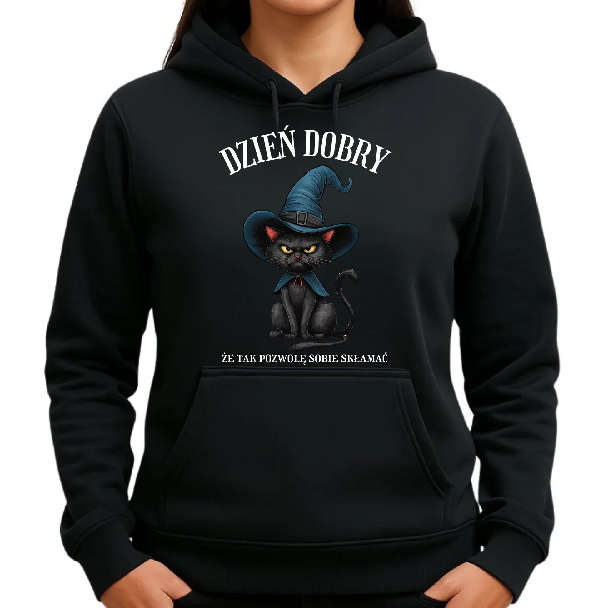 Bluza damska z kapturem halloweenowa - Dzień dobry, że tak pozwolę sobie skłamać HL27