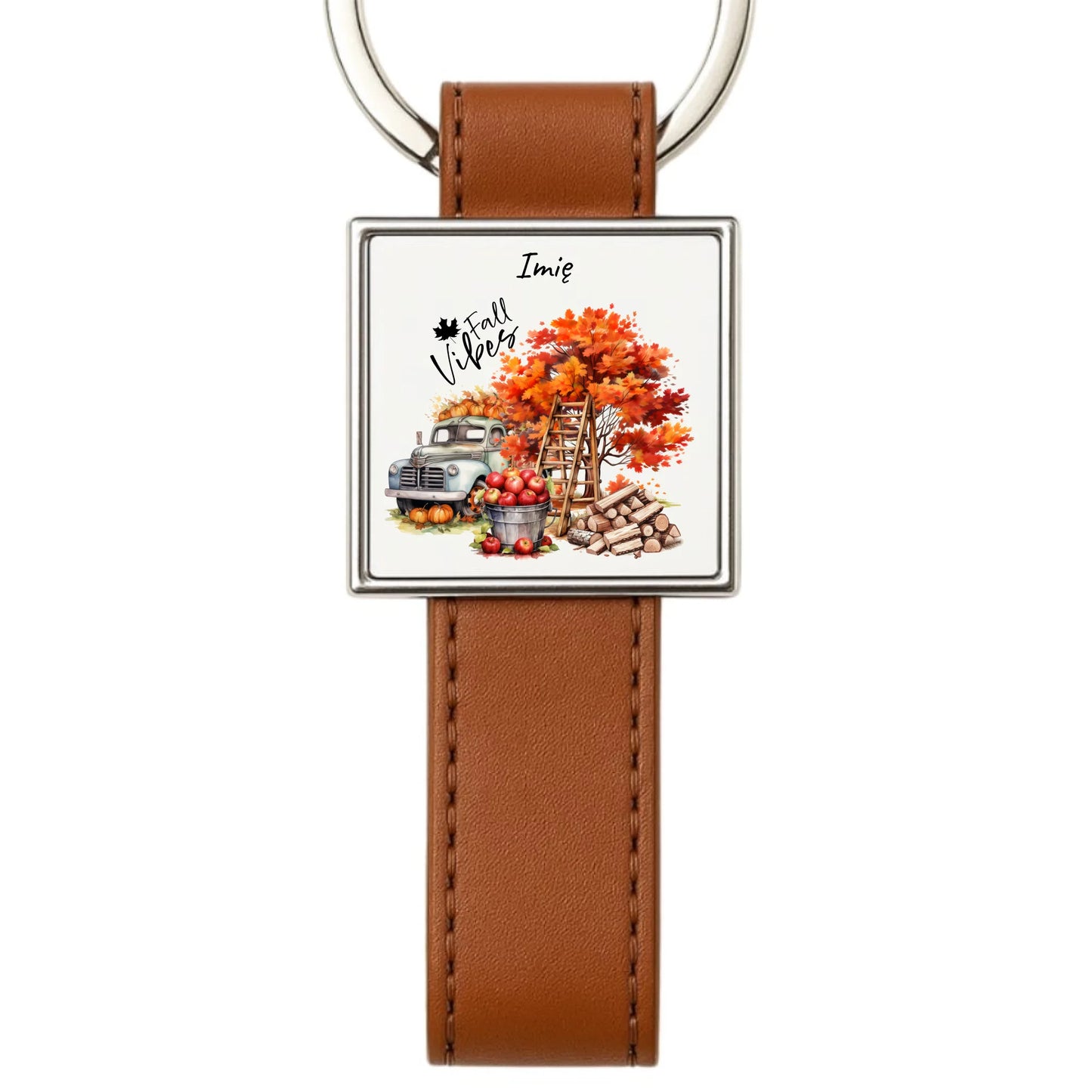 Brelok jesienny – Vintage auto dynie i jabłka – personalizowany JS07