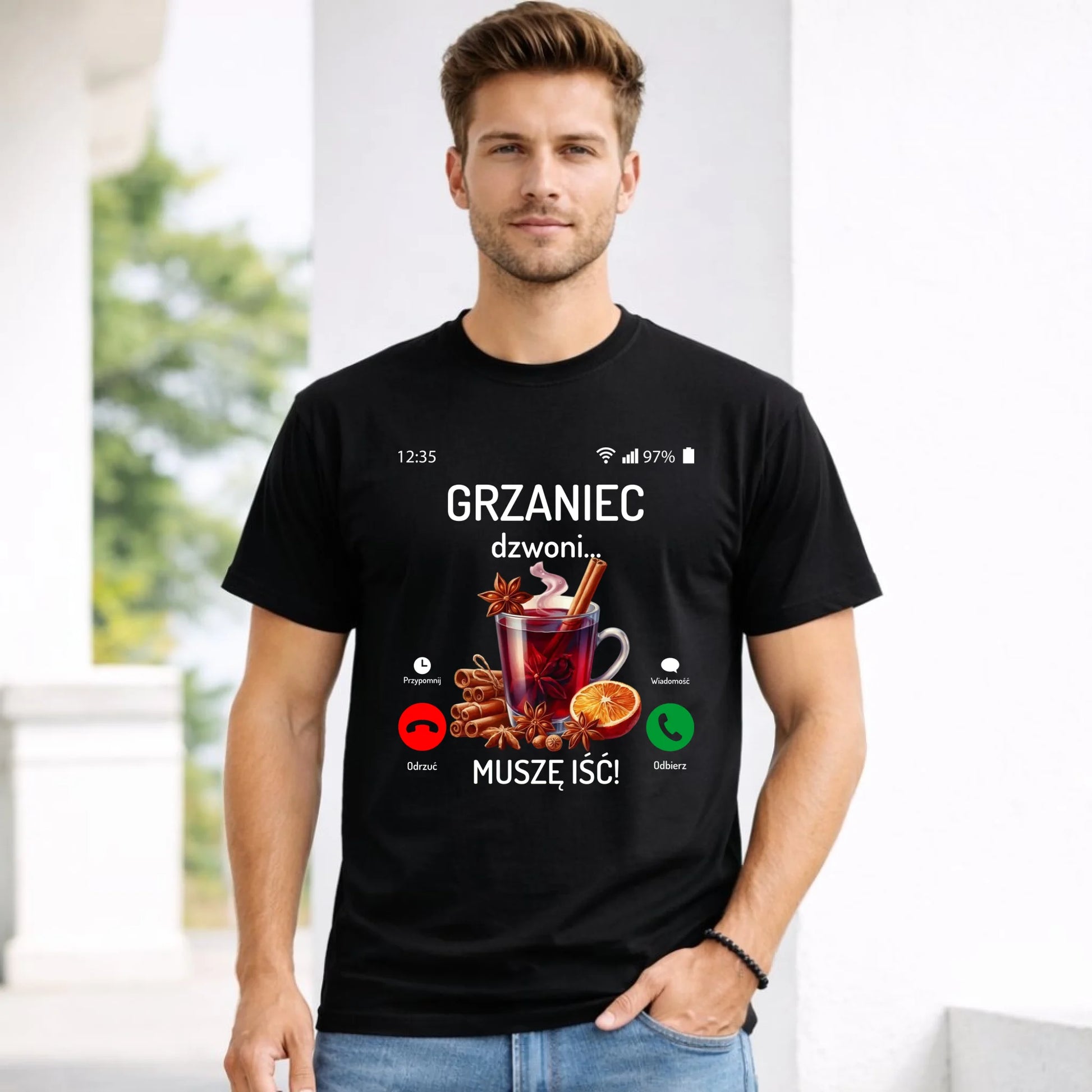 Koszulka męska świąteczna - Grzaniec dzwoni, muszę iść BN127