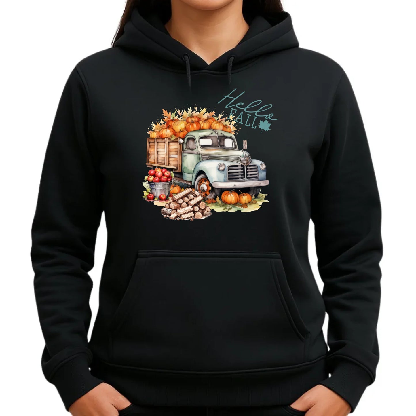 Bluza damska z kapturem – Hello Fall ciężarówka z dyniami JS08