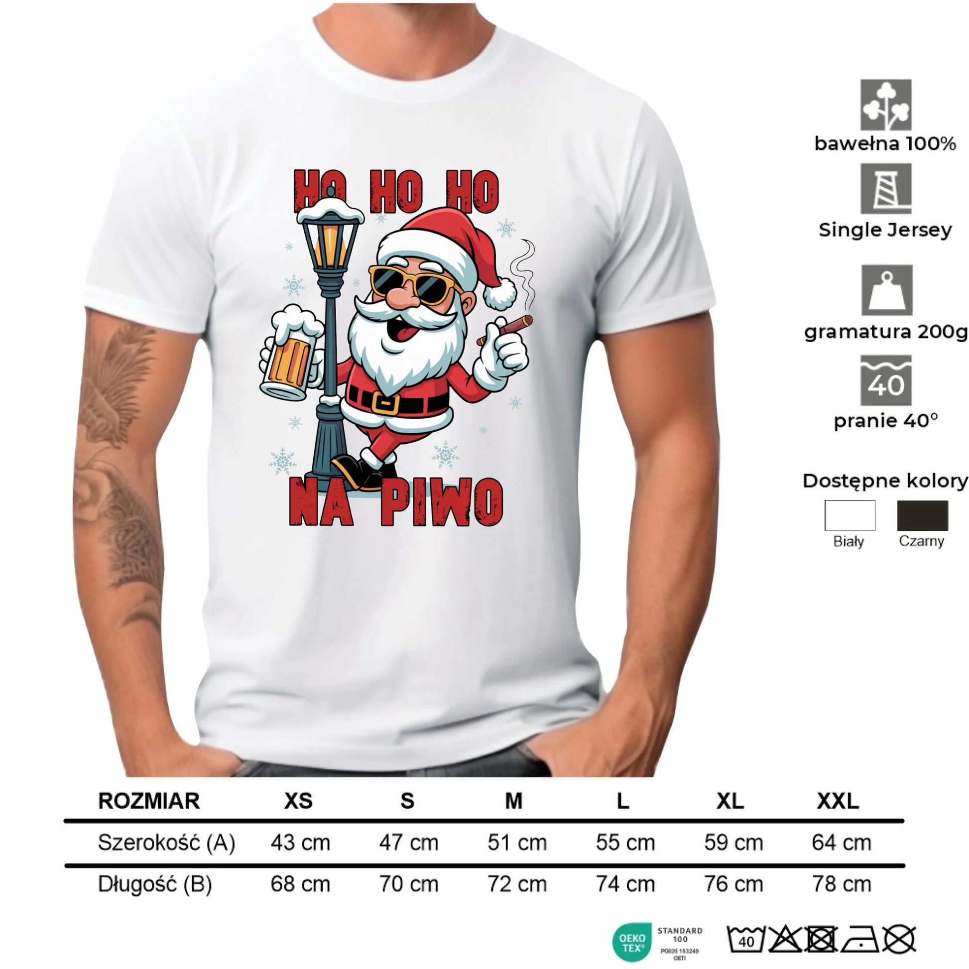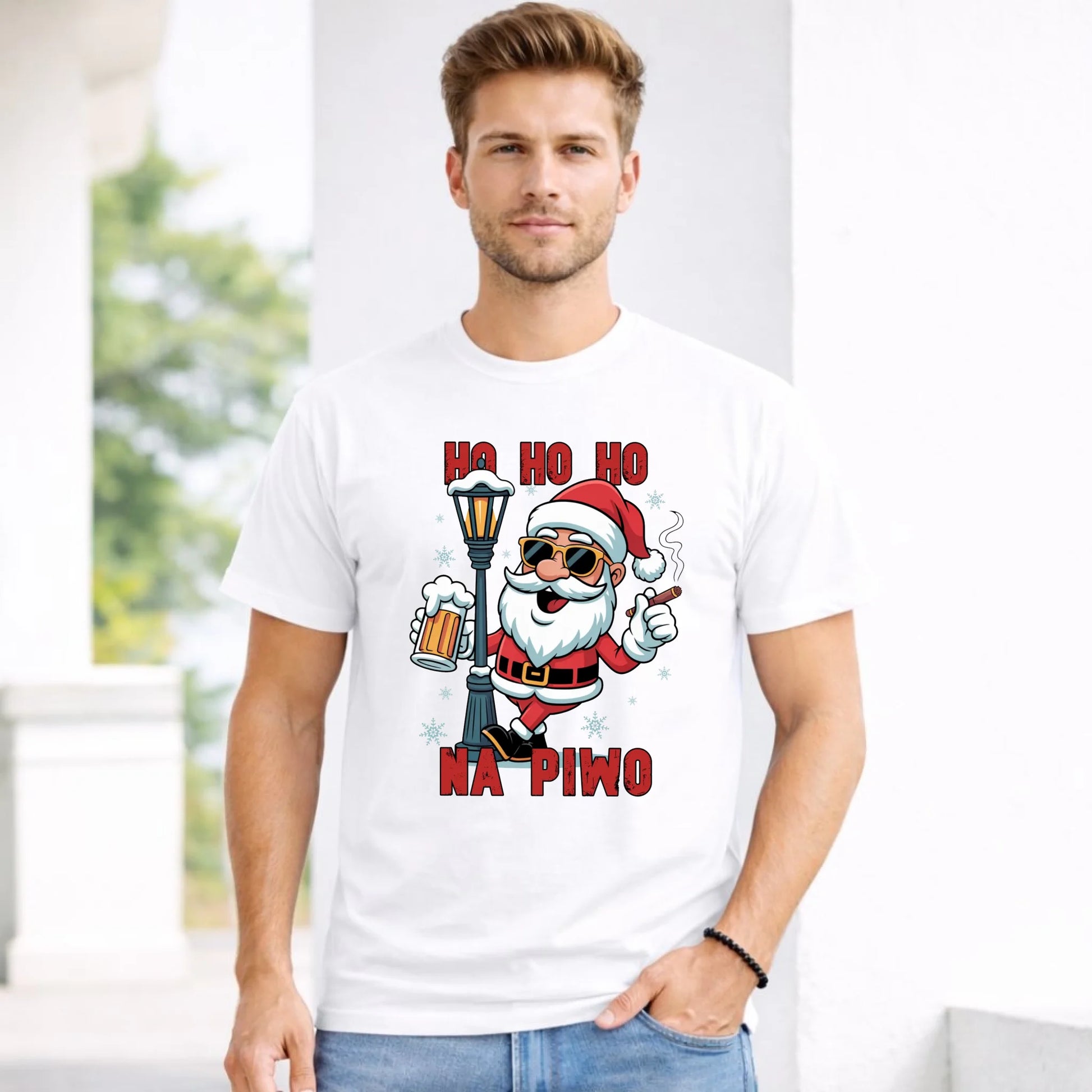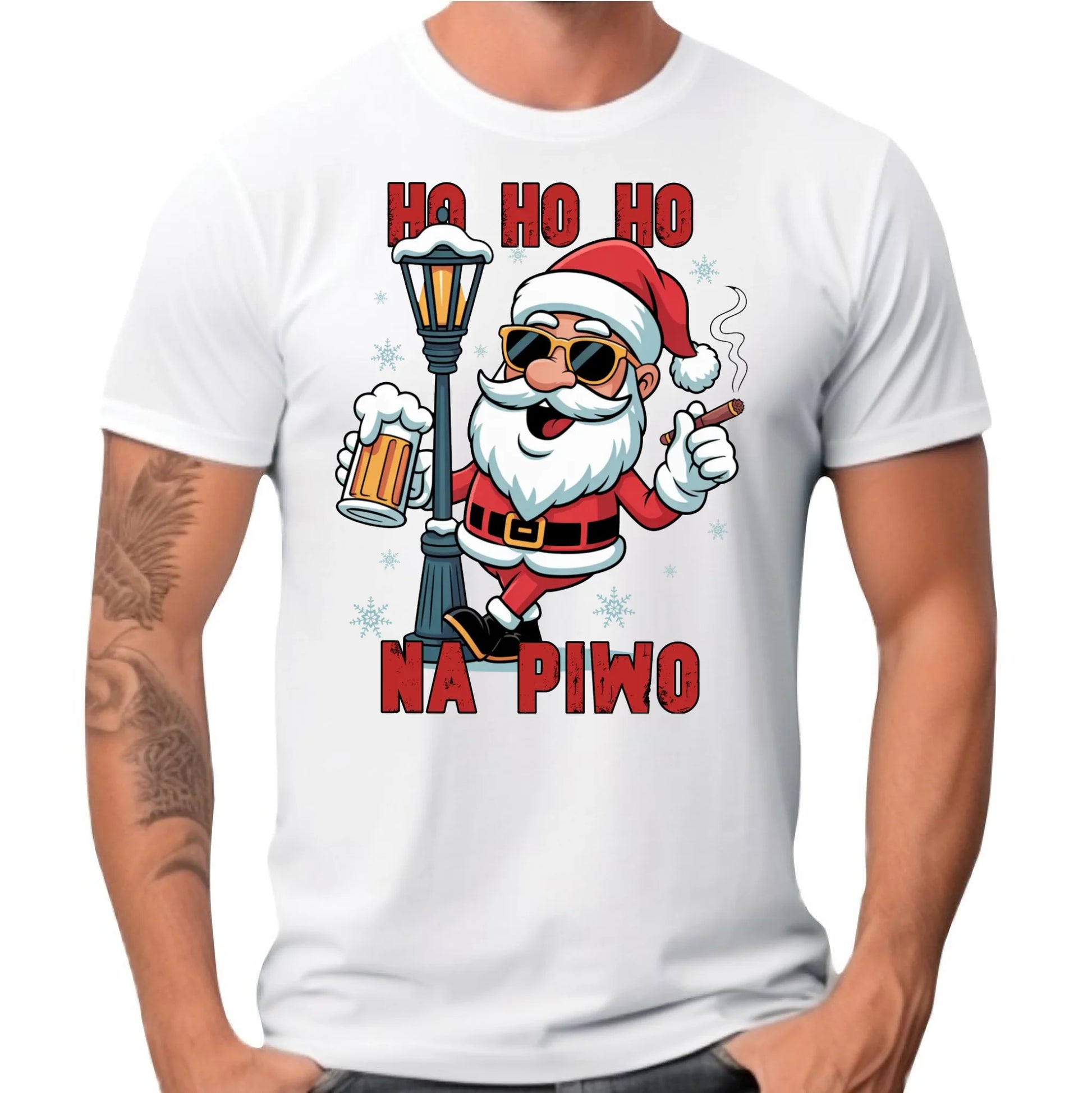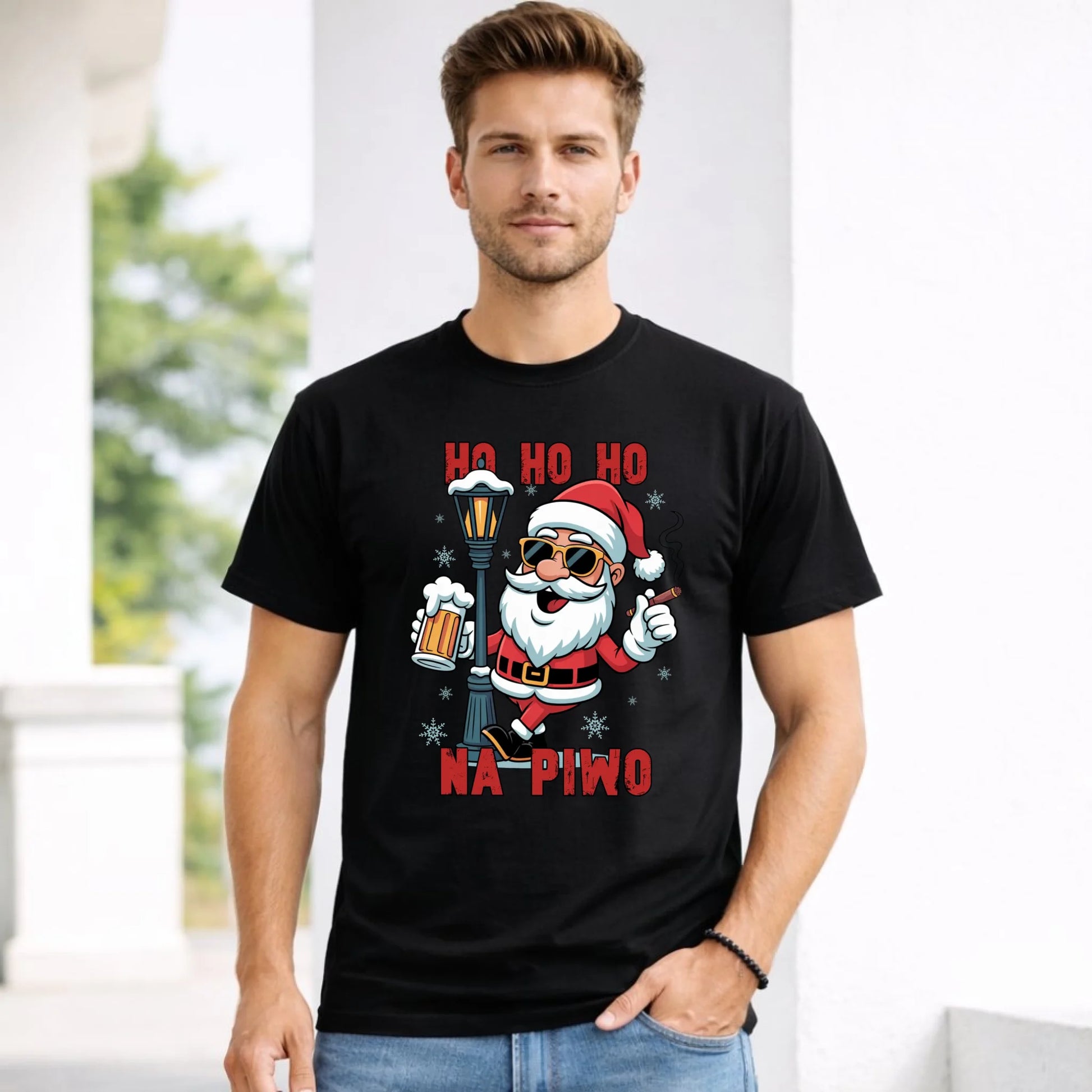 Koszulka męska świąteczna - Mikołaj Ho ho ho na piwo BN64