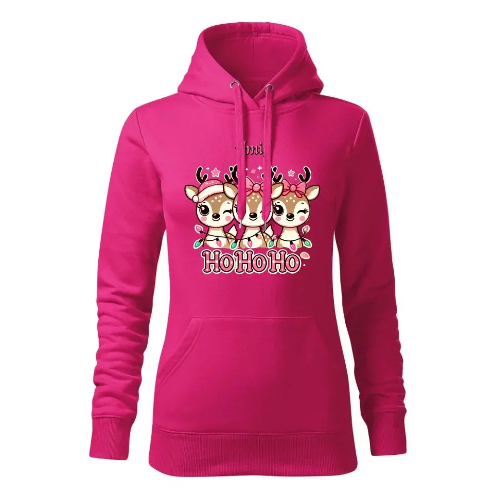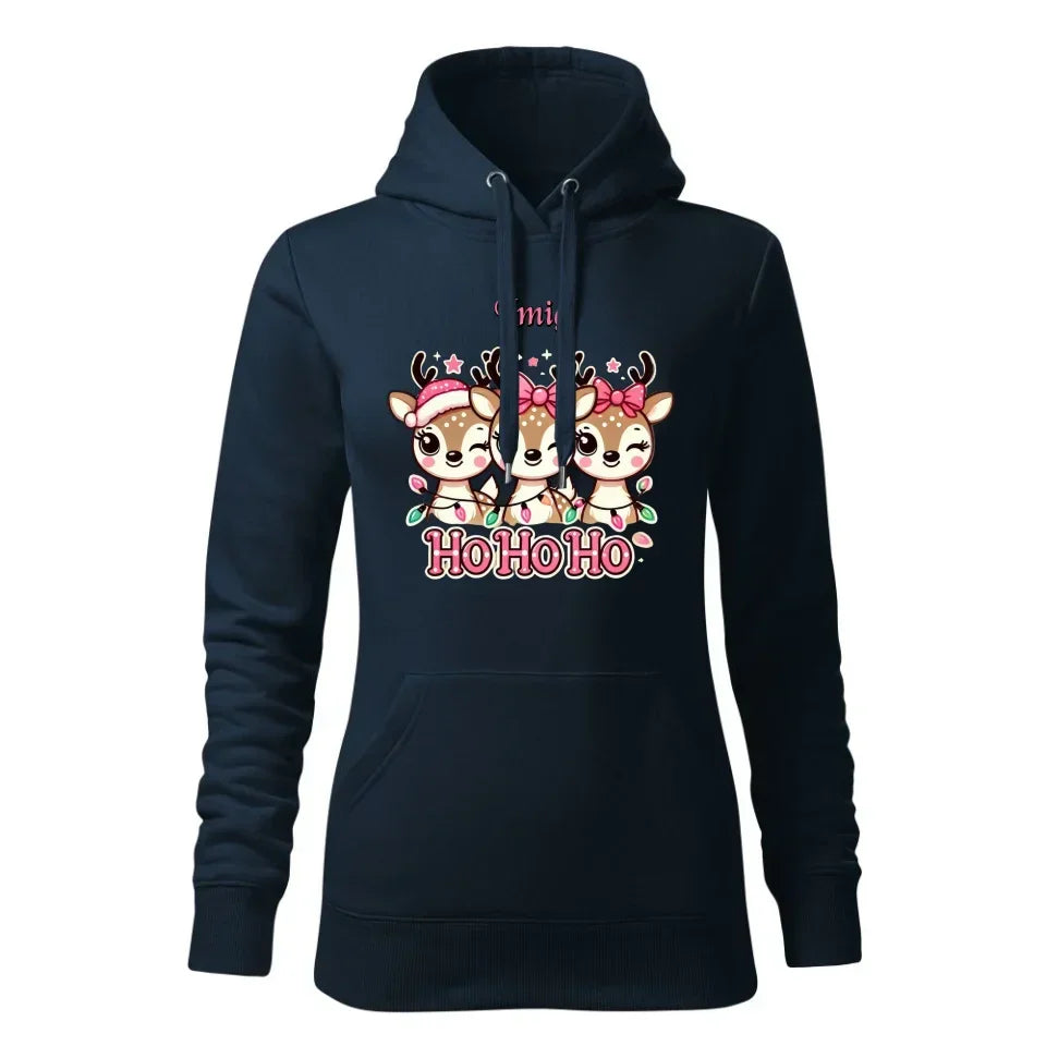 Ho ho ho reniferki | Świąteczna bluza damska z kapturem i personalizacją BN49