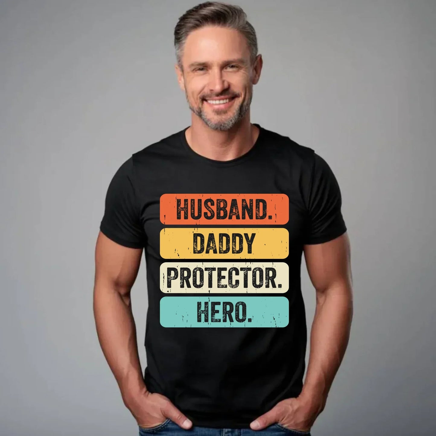 Husband daddy protector hero | Koszulka dla taty na prezent DT05