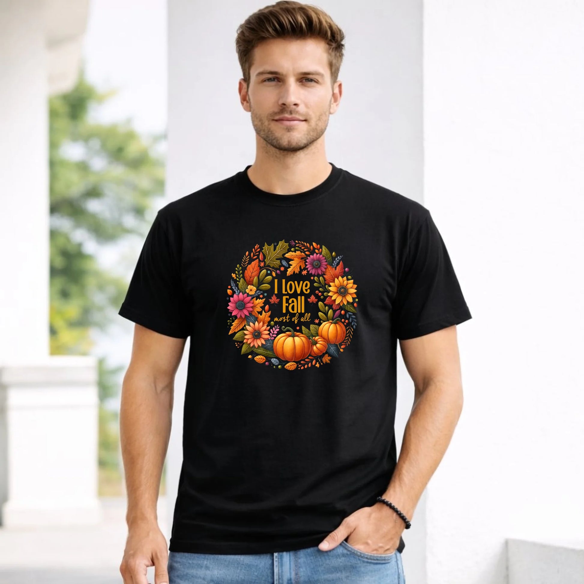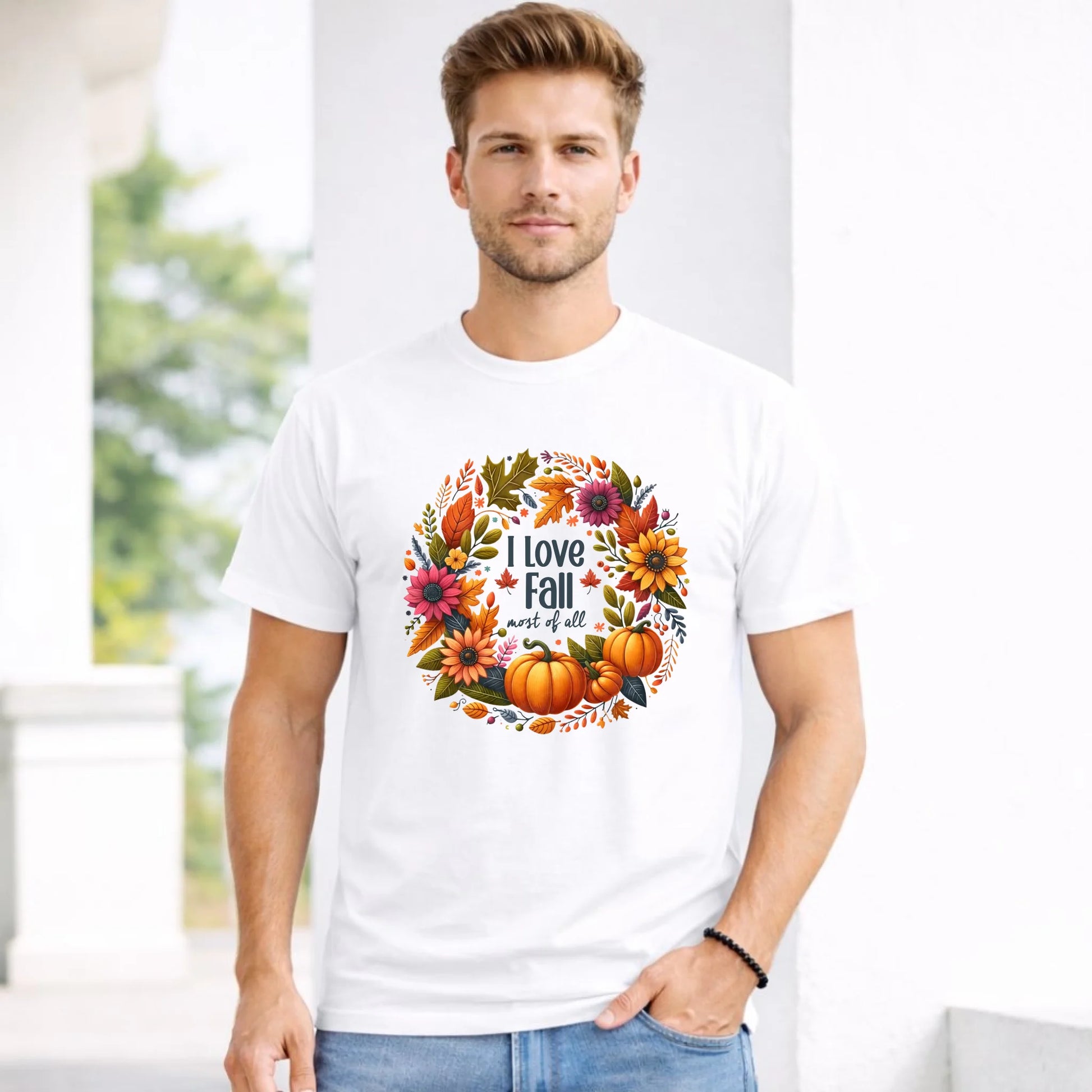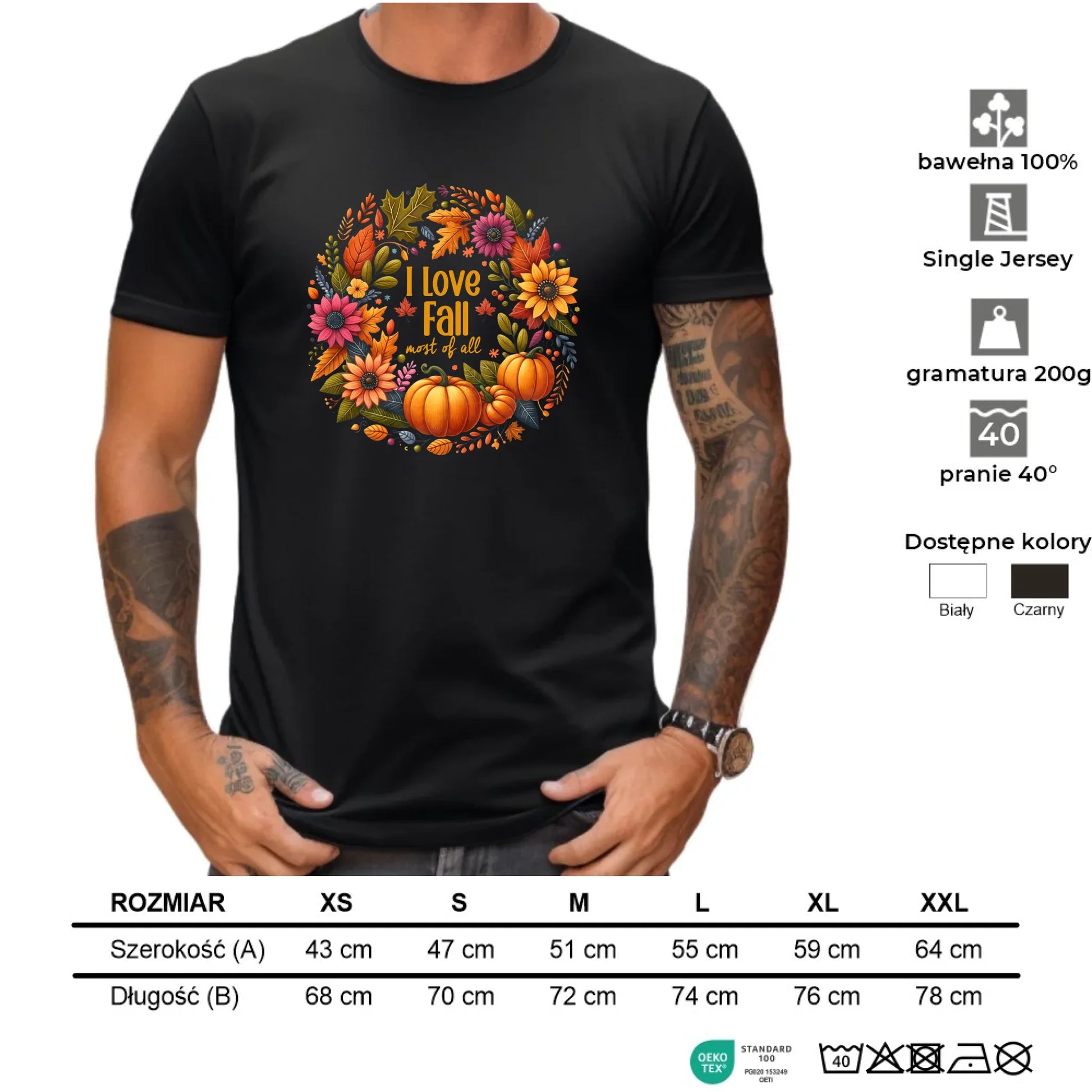 Koszulka męska jesienna - Kocham jesień - dynia z liśćmi JS03