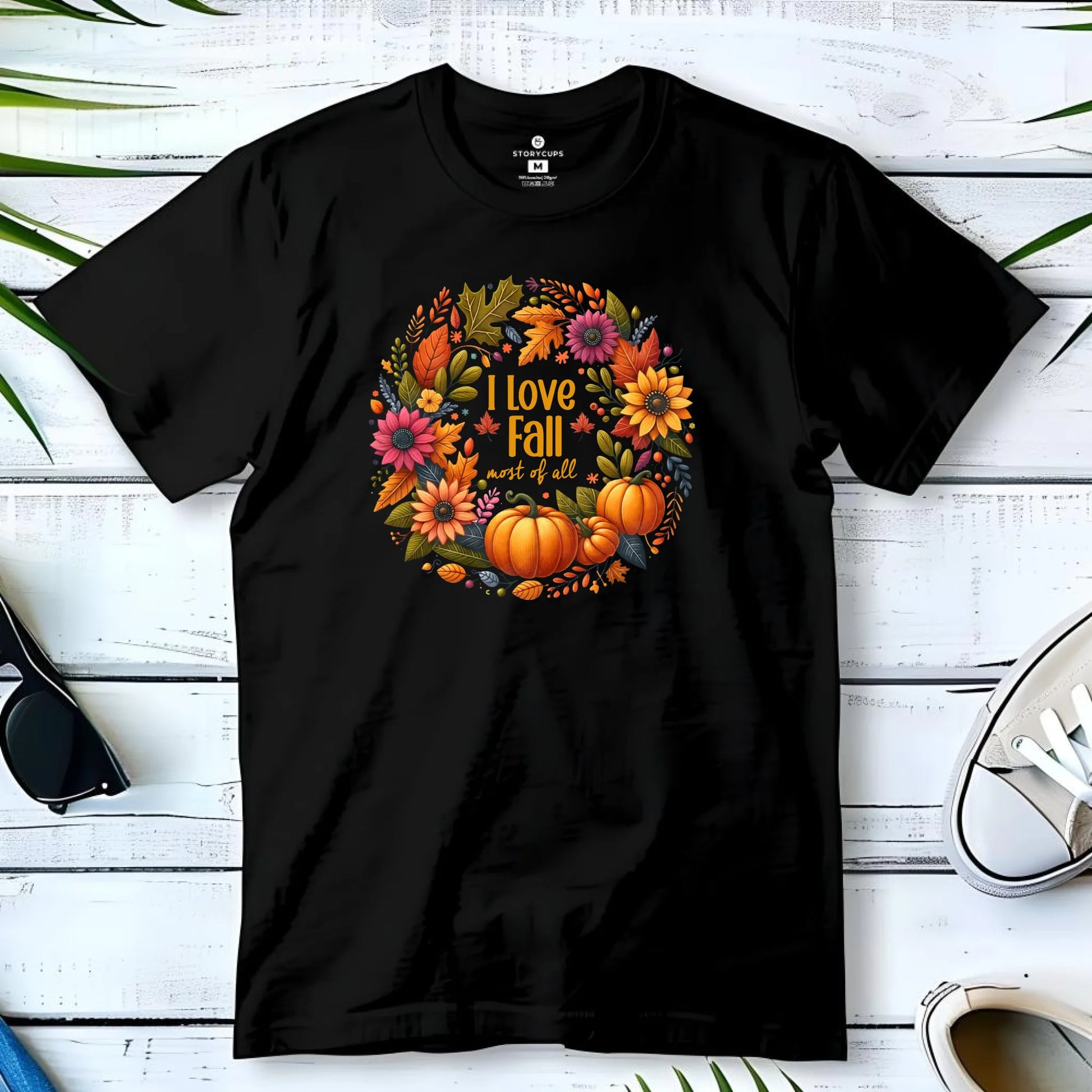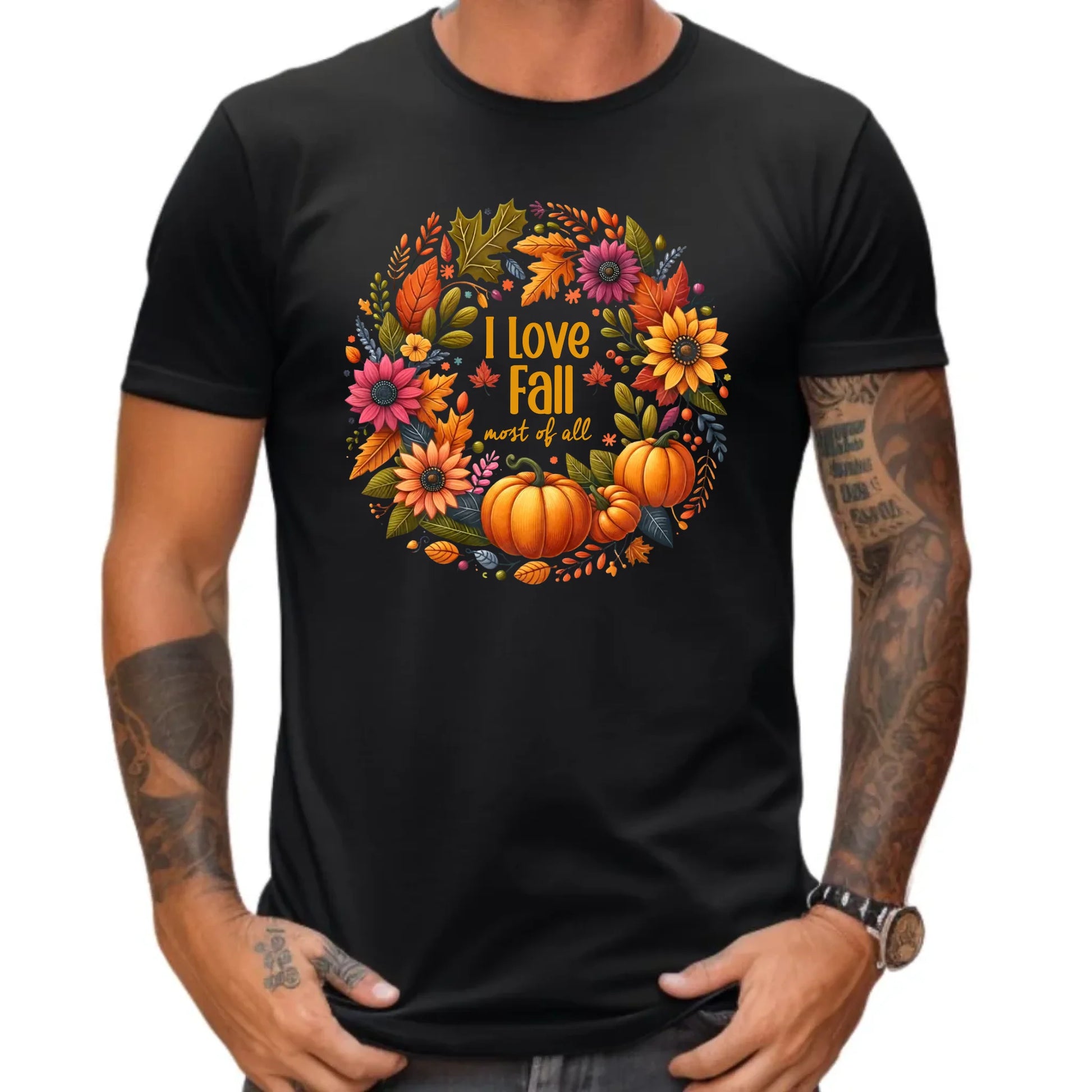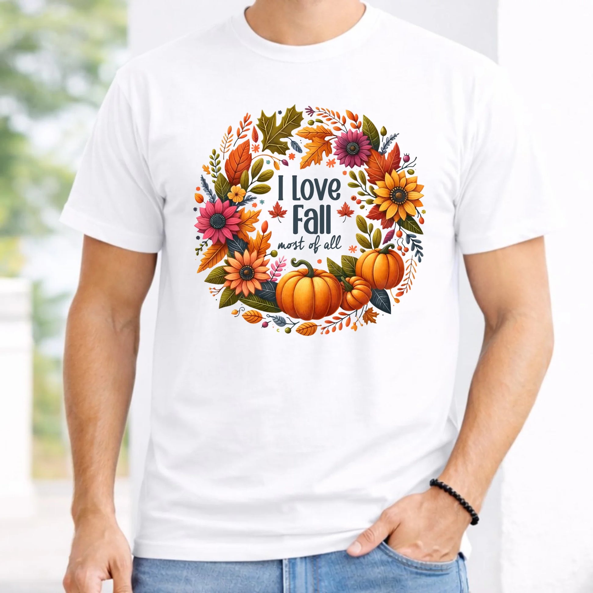 Koszulka męska jesienna - Kocham jesień - dynia z liśćmi JS03