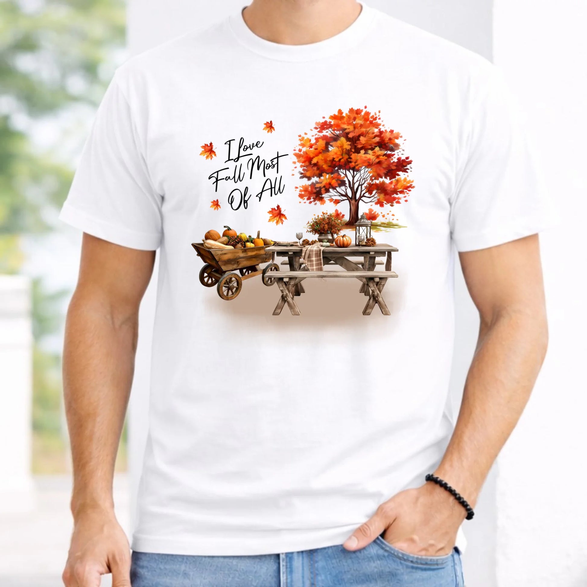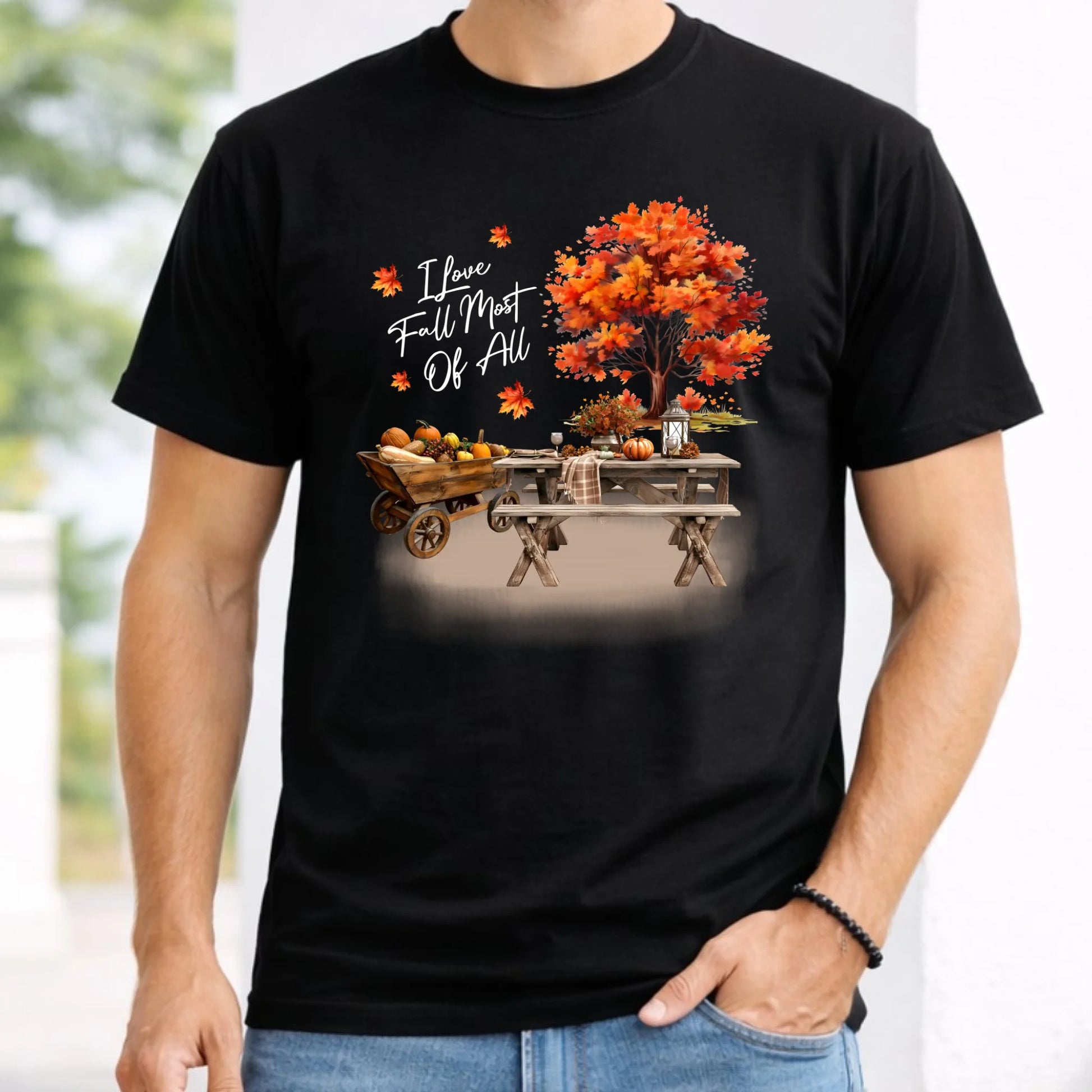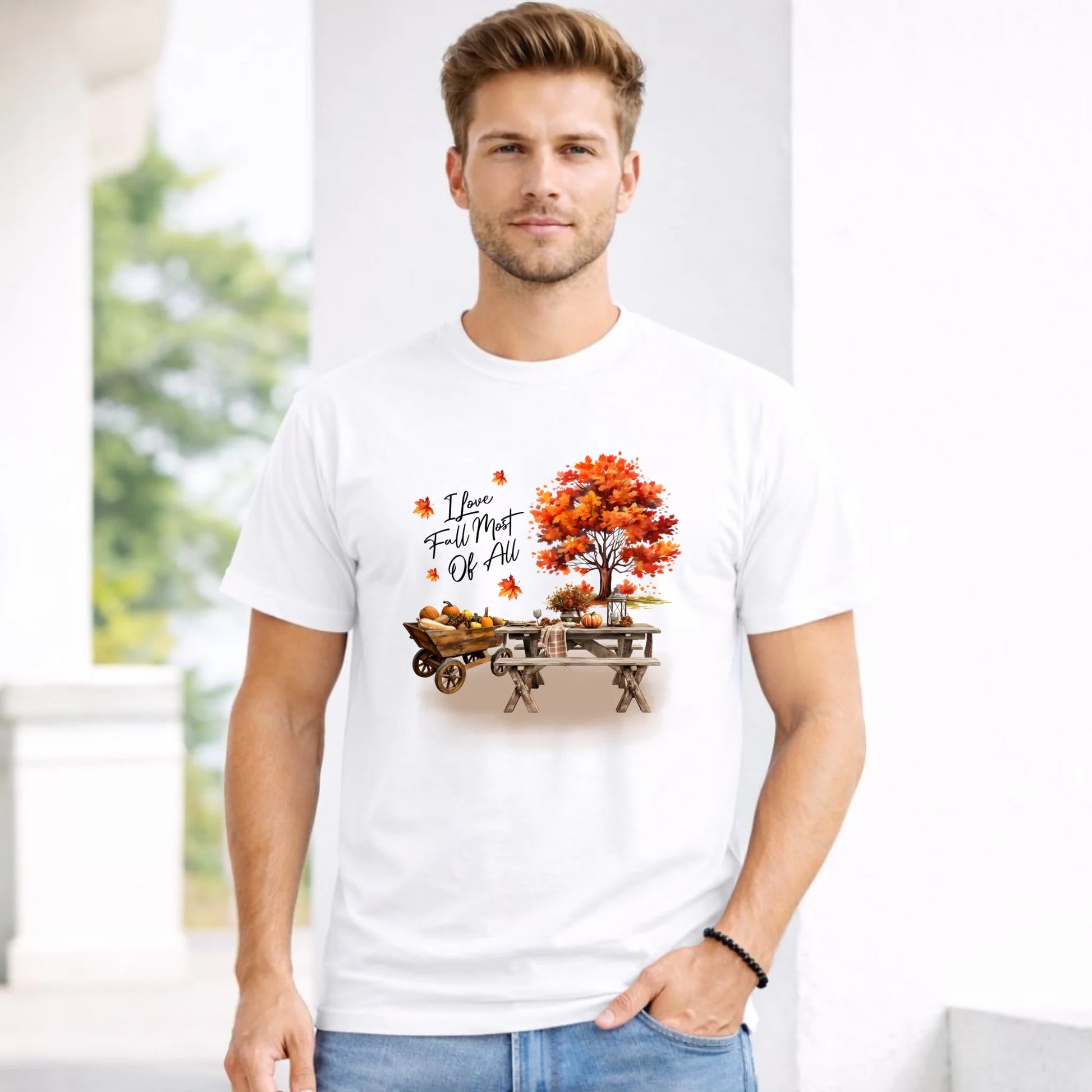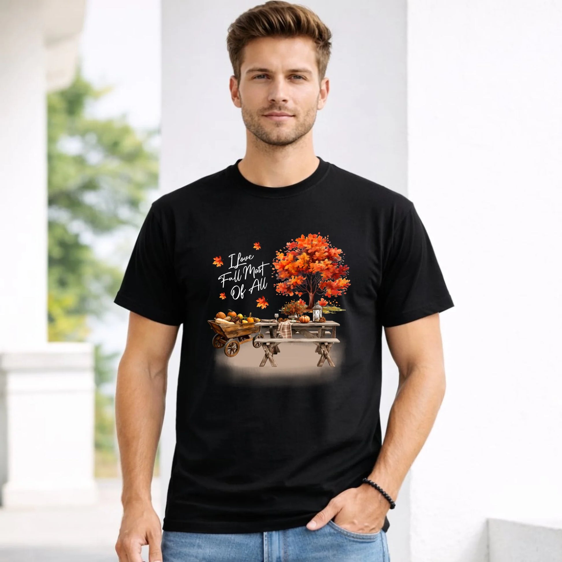 Koszulka męska jesienna - Jesienny piknik z dyniami JS04
