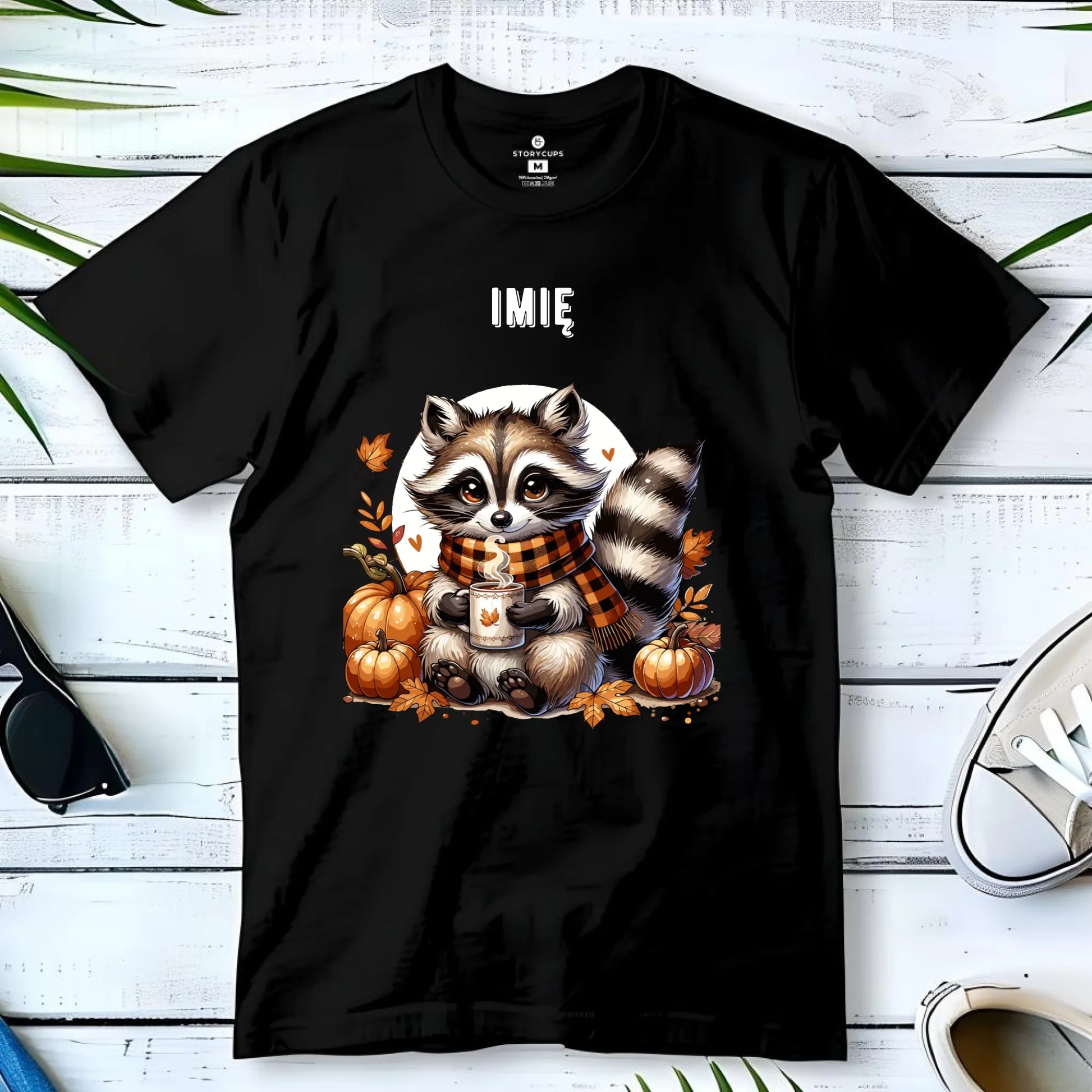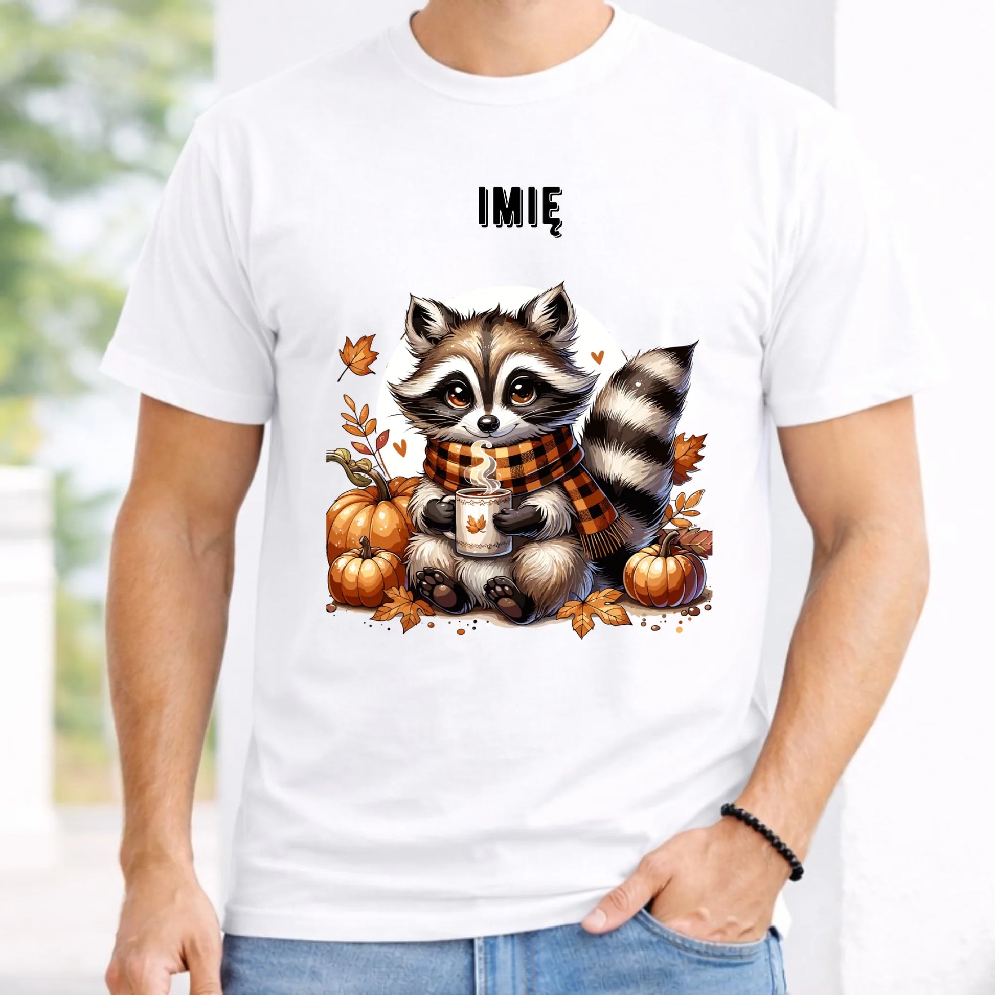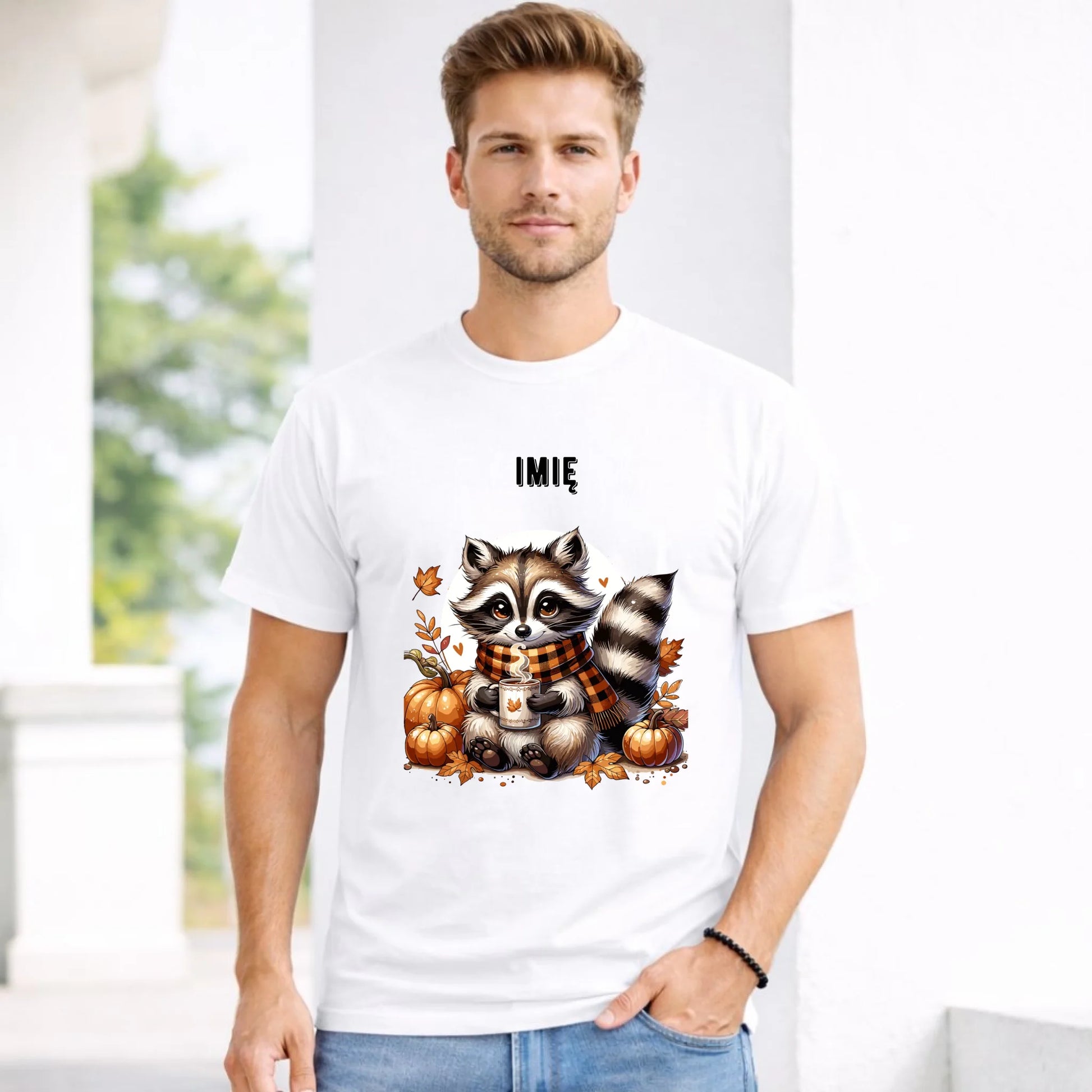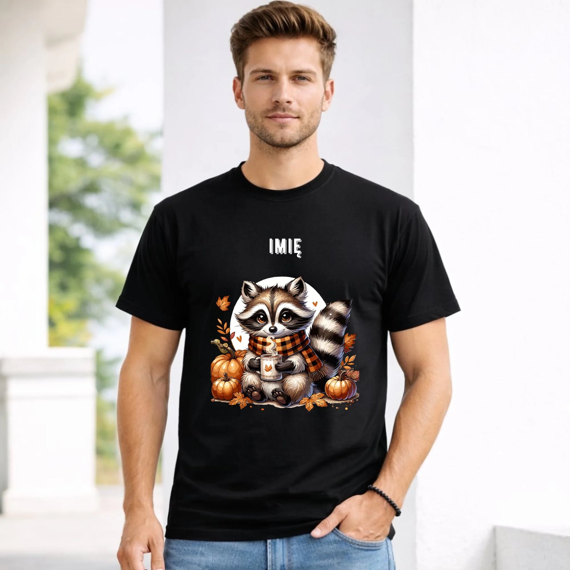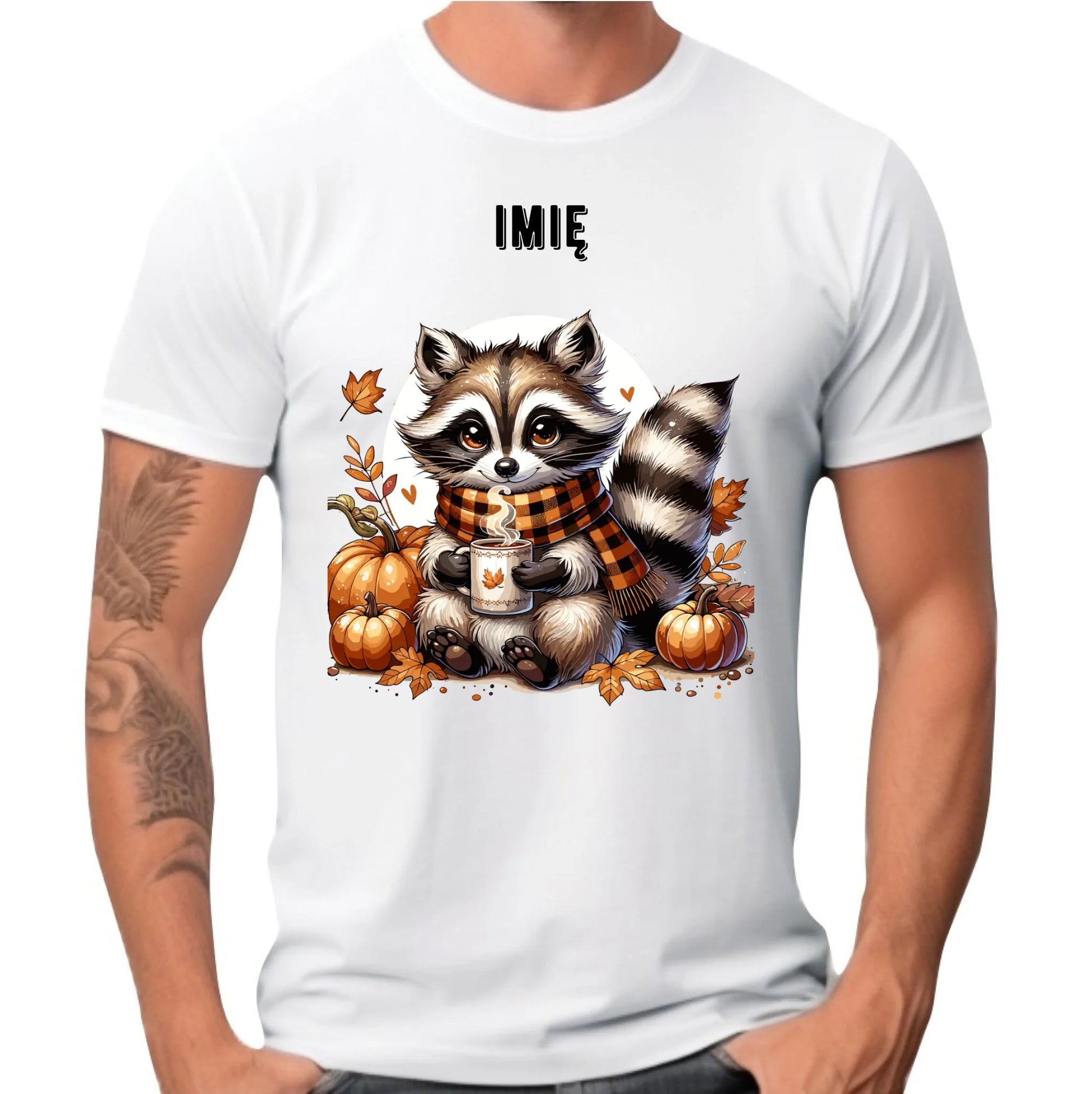 Koszulka męska jesienna – Szop z kawą i dyniami - personalizowana JS16