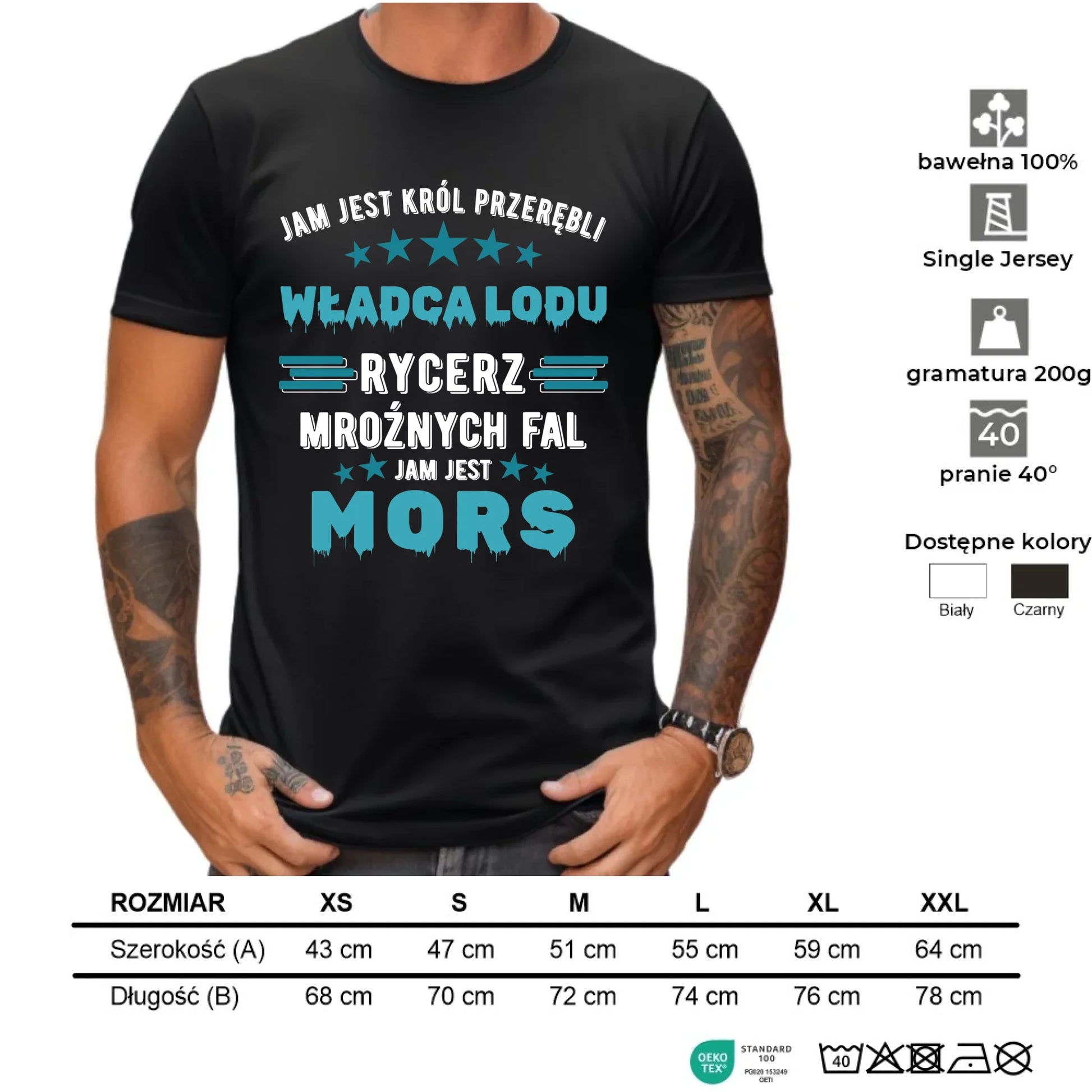 100% bawełna Single Jersey (170g/m²) - gruba bawełna, trwała, miękka i przyjazna dla skóry.