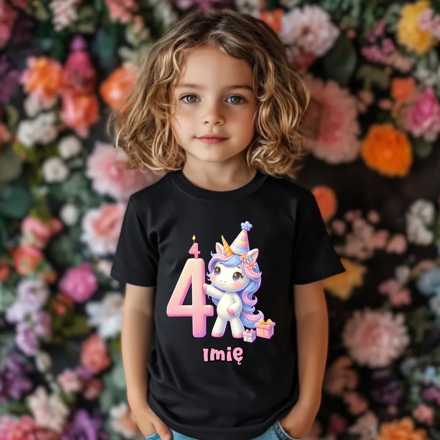 Koszulka dziecięca urodzinowa - prezent na 4 urodziny dla dziewczynki - Jednorożec - personalizowana U48