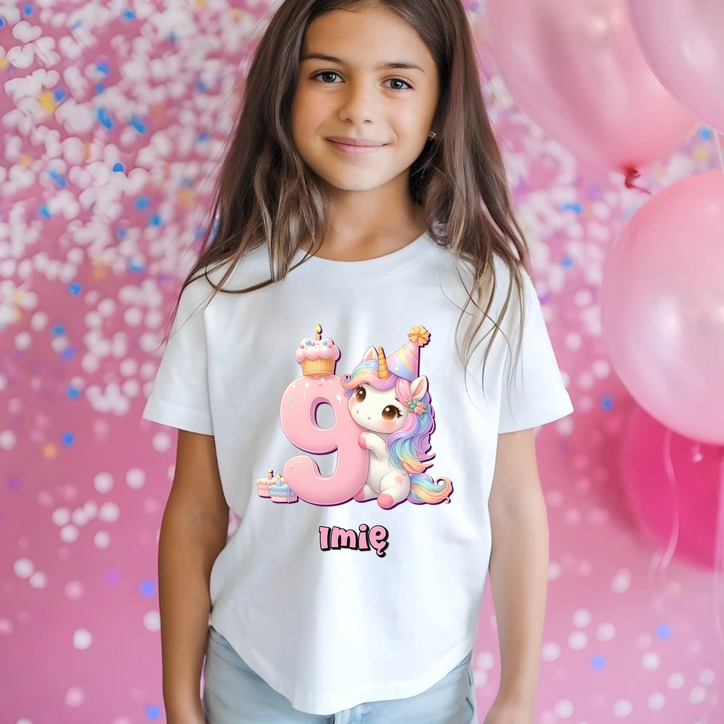 Koszulka dziecięca urodzinowa - prezent na 9 urodziny dla dziewczynki - Jednorożec - personalizowana U53