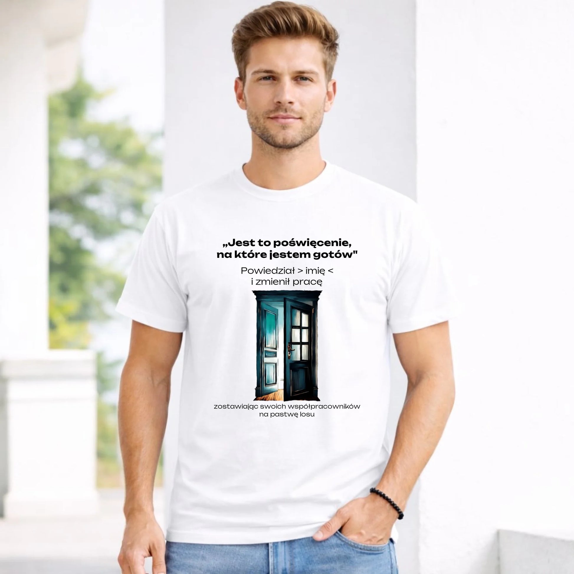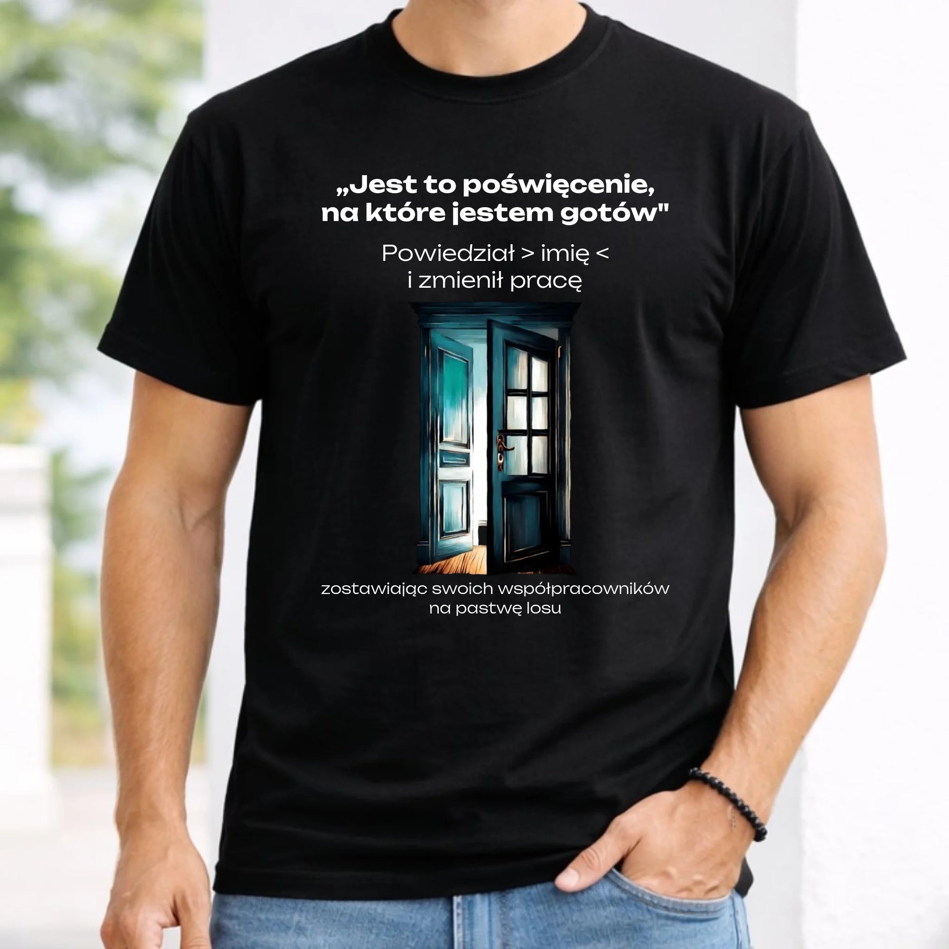 Koszulka męska na odejście z pracy - Poświęcenie, na które jestem gotów - personalizowana OP02
