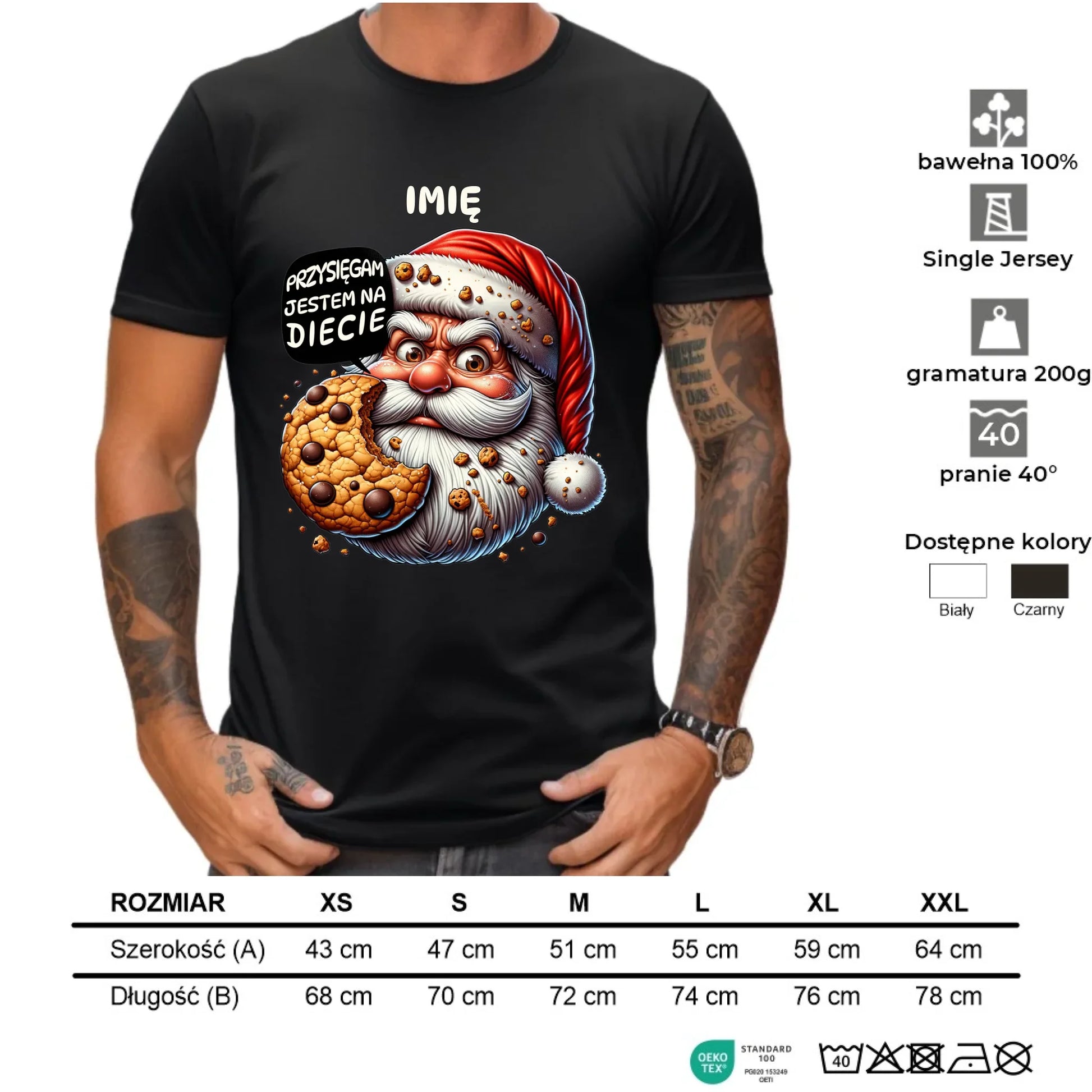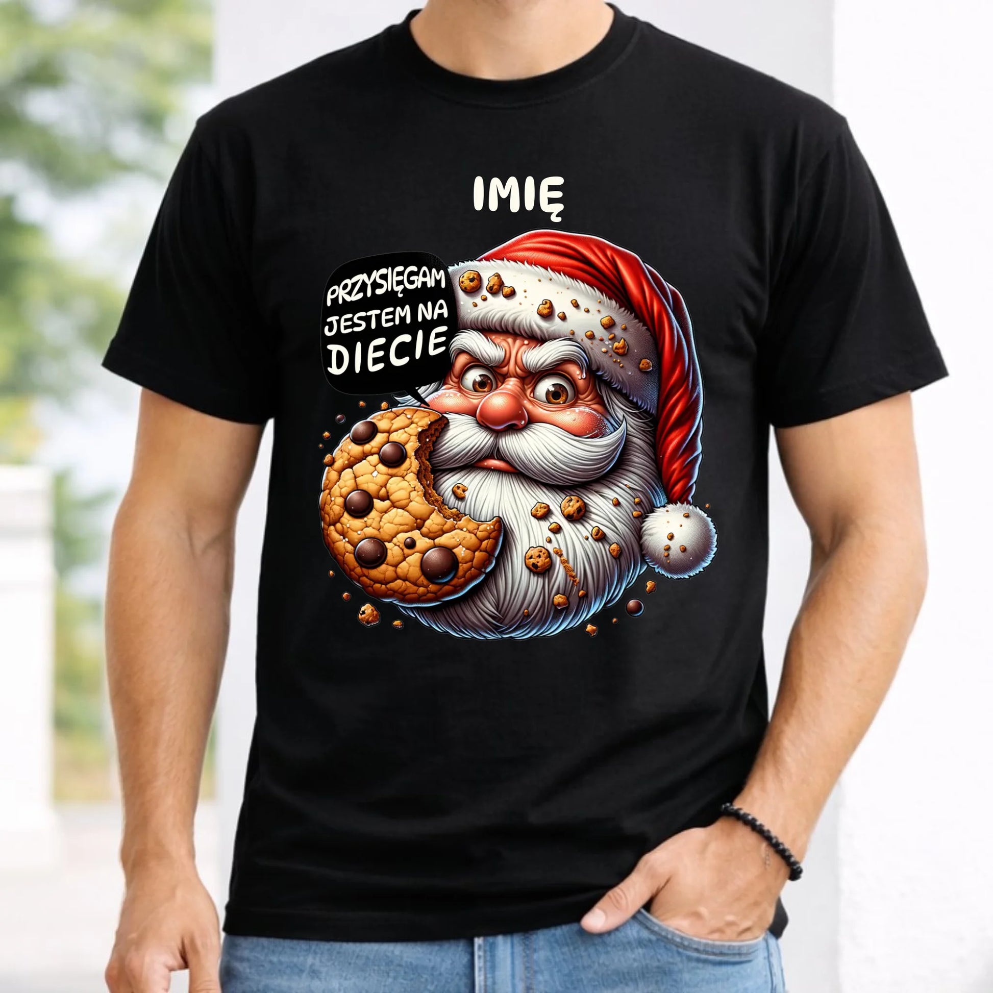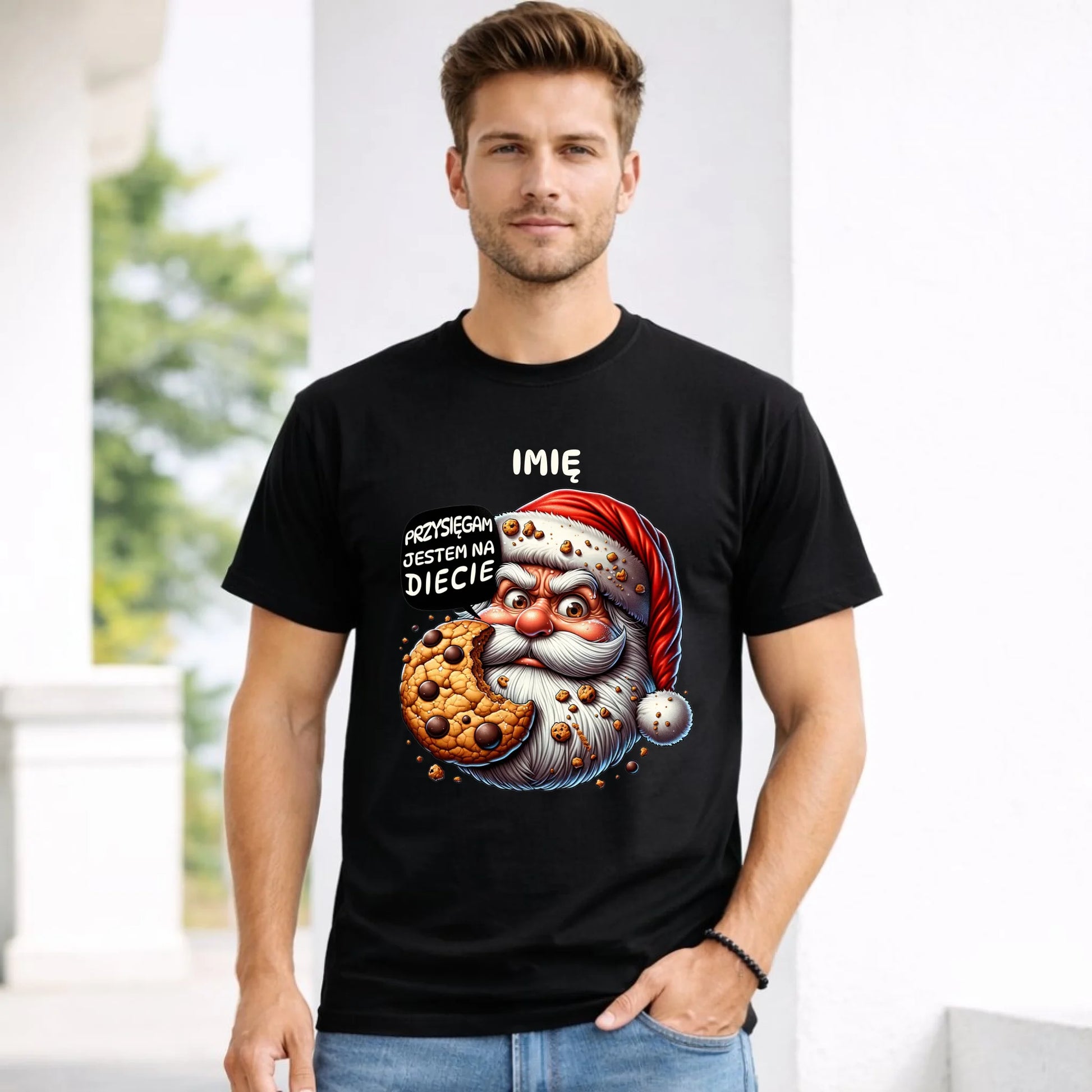 Koszulka męska świąteczna - Mikołaj Przysięgam jestem na diecie - personalizowana BN97