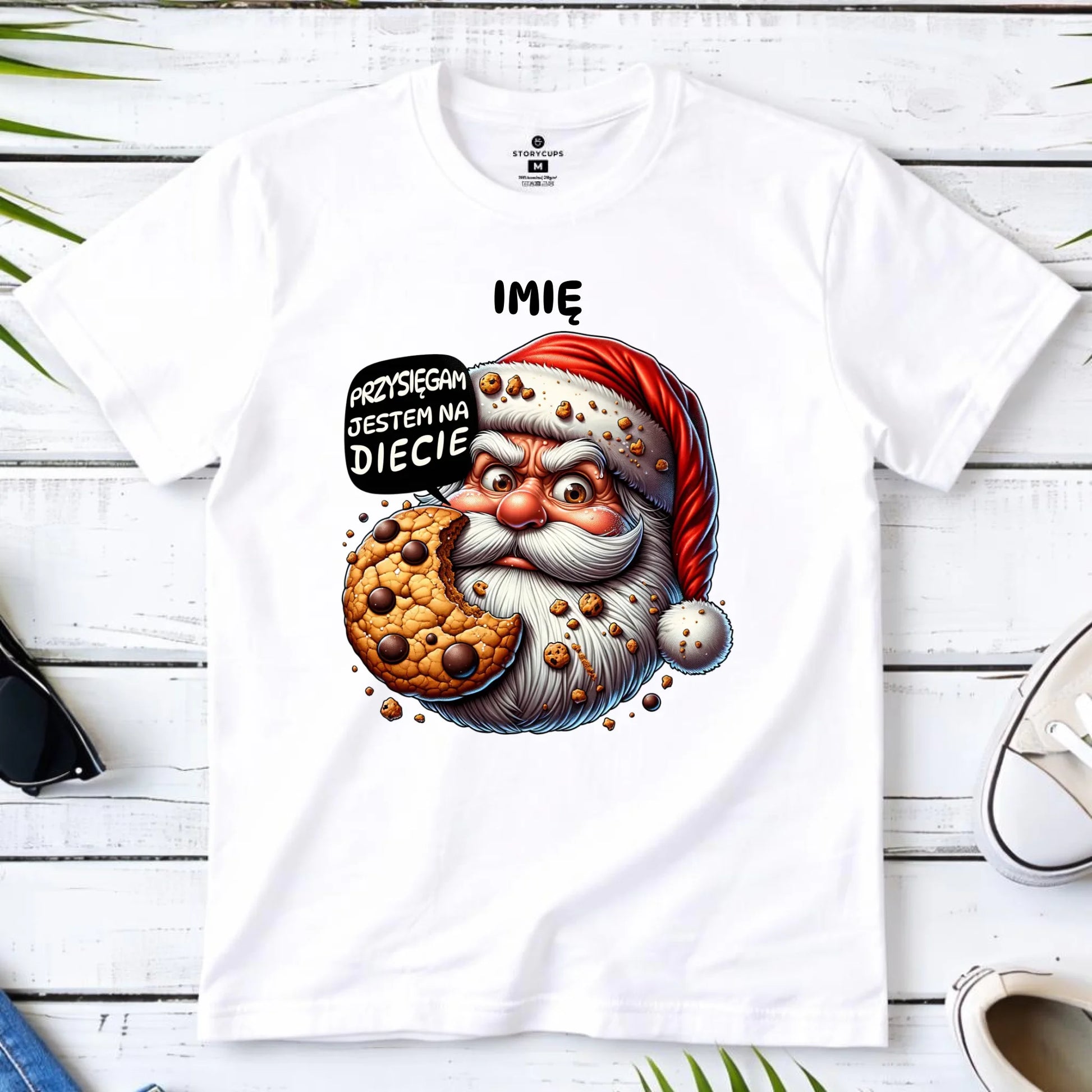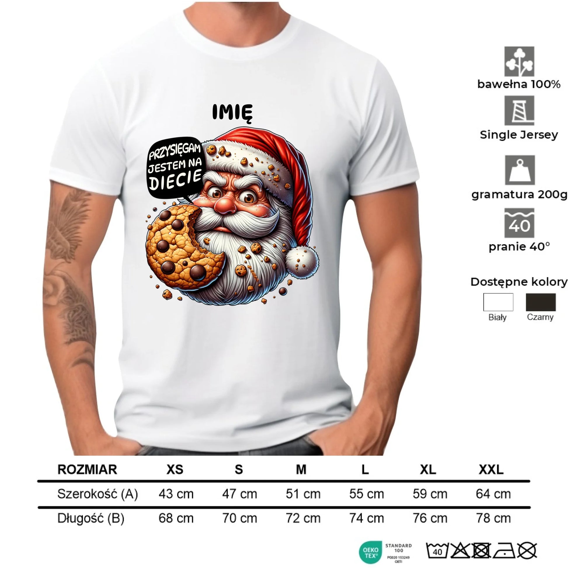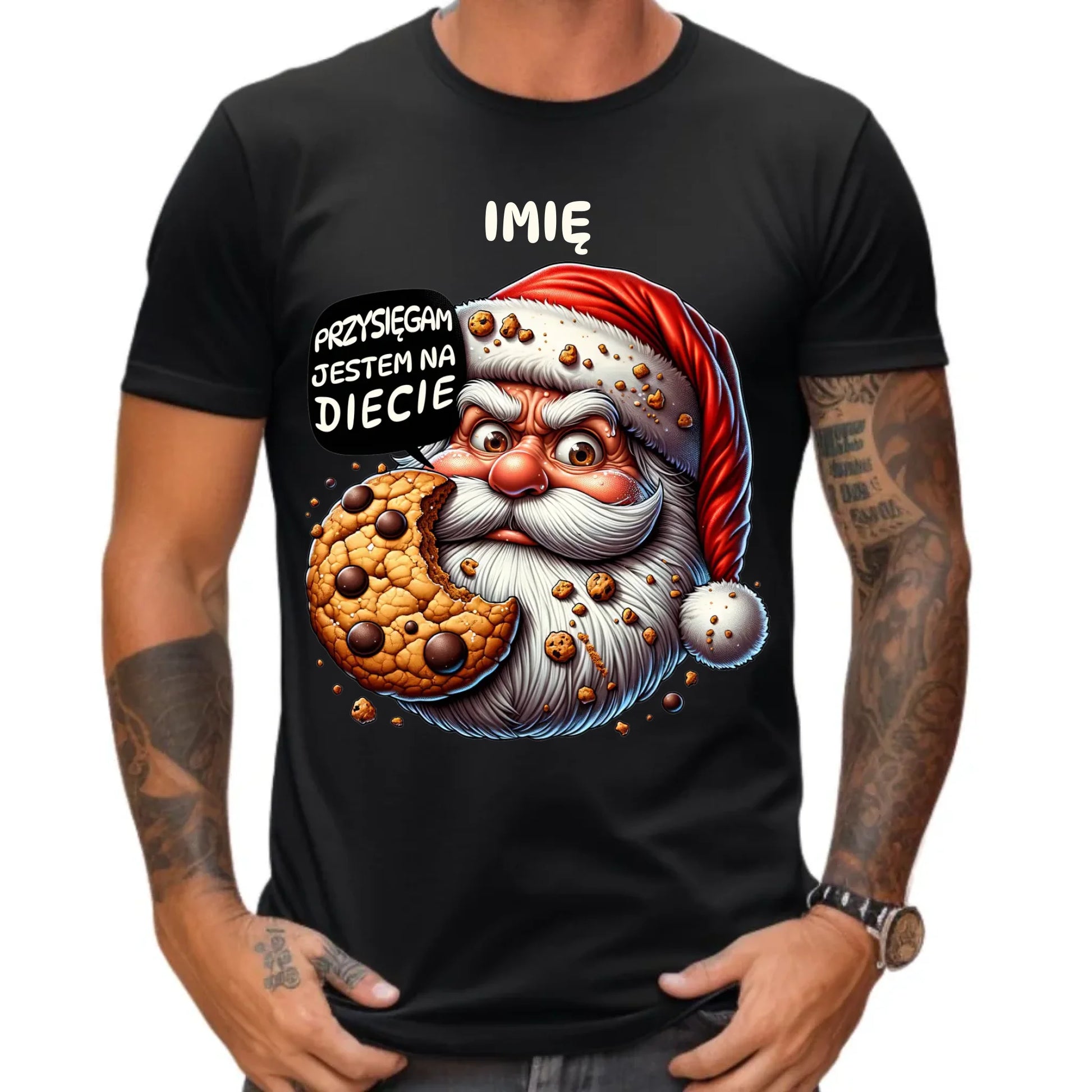 Koszulka męska świąteczna - Mikołaj Przysięgam jestem na diecie - personalizowana BN97