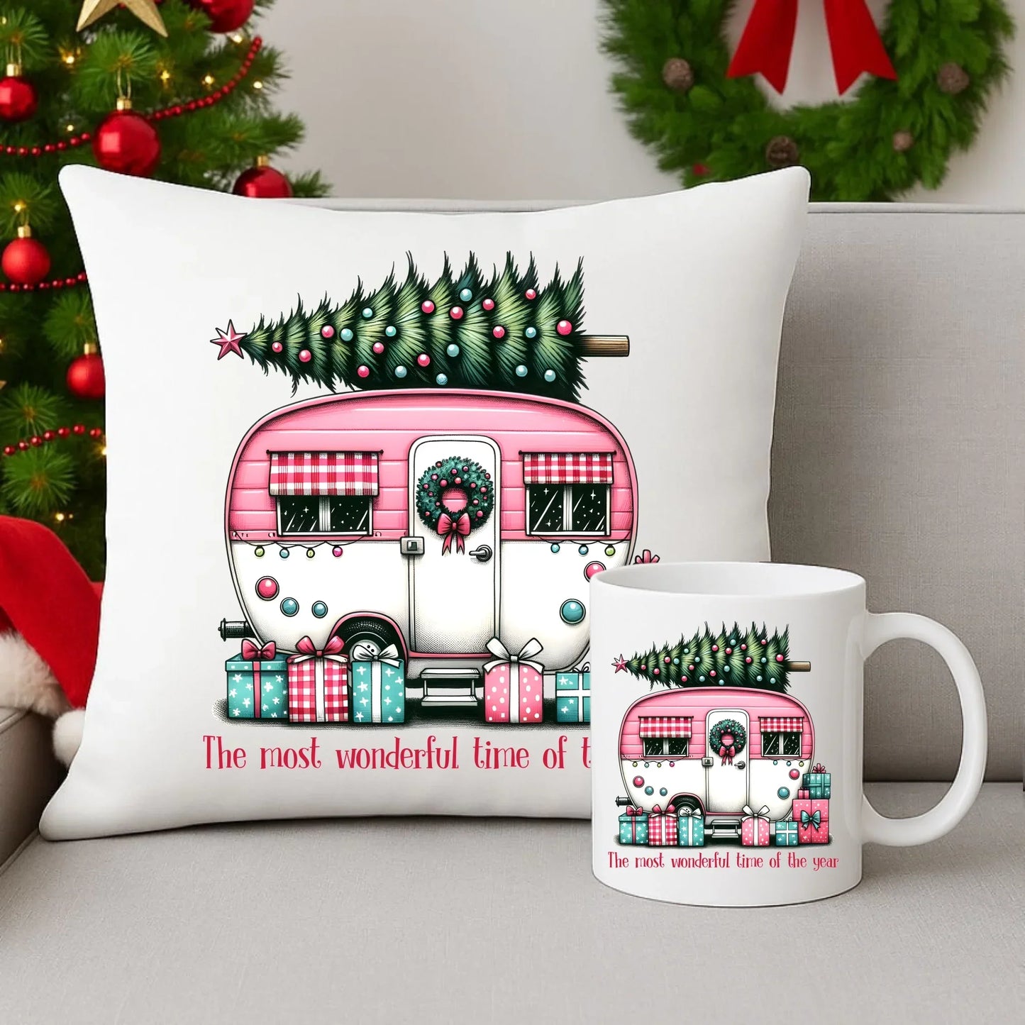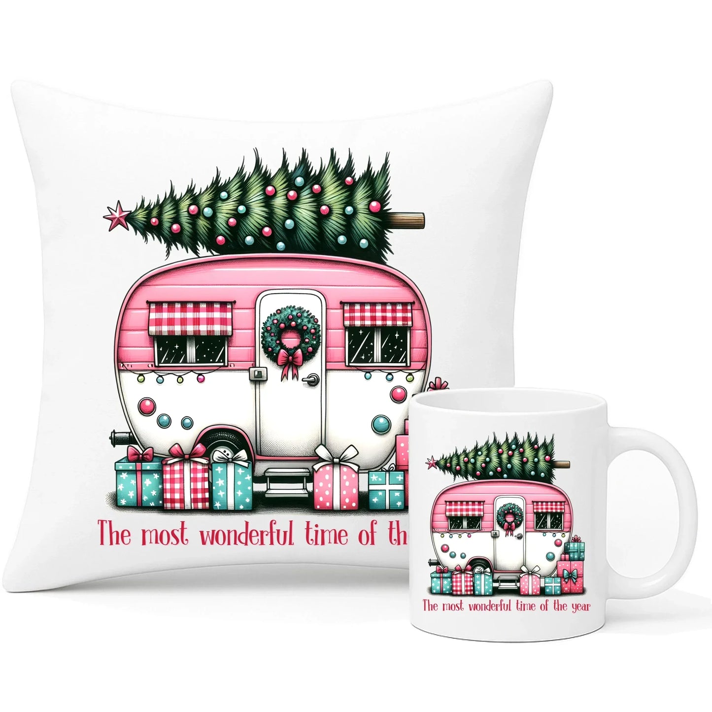 Kempingowe Święta | Świąteczny zestaw poduszka i kubek BN40