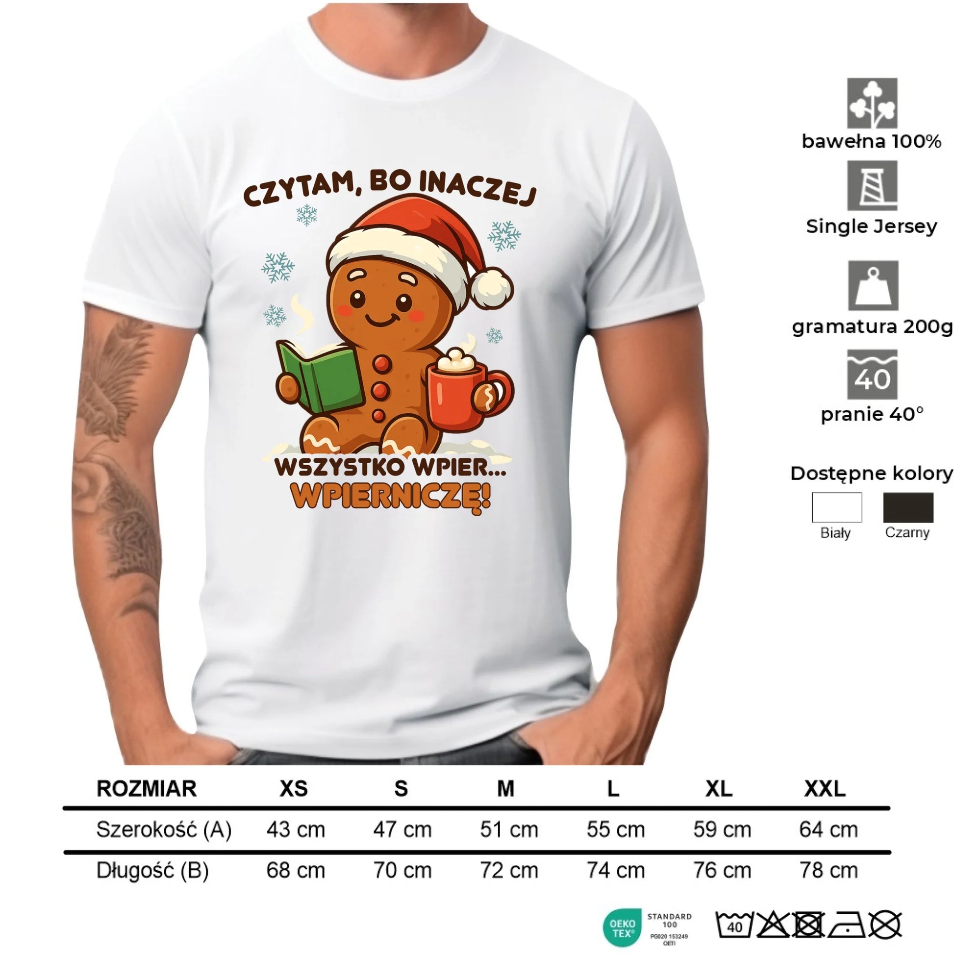Koszulka męska świąteczna - Czytam, bo inaczej wszystko wpier... wpierniczę BN79