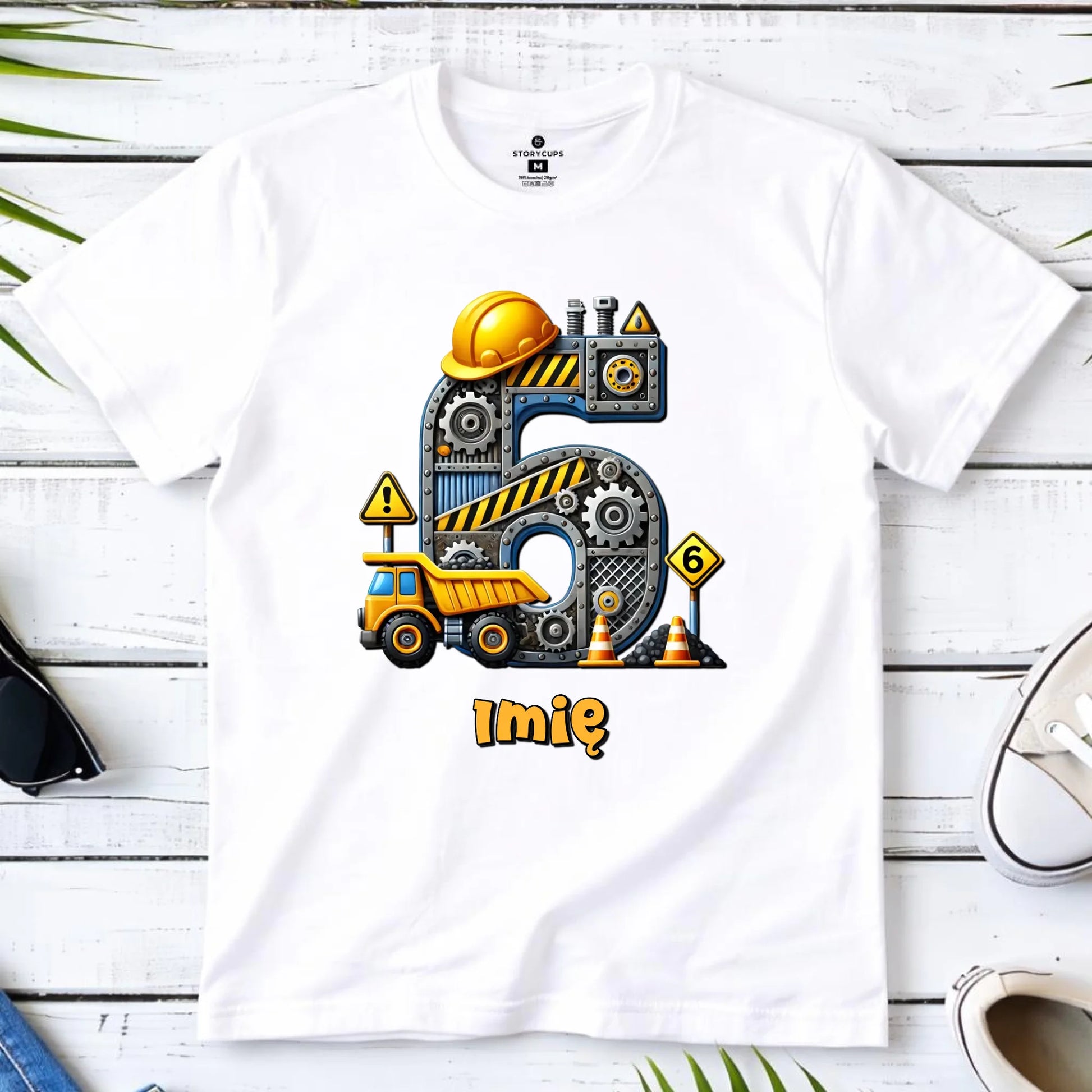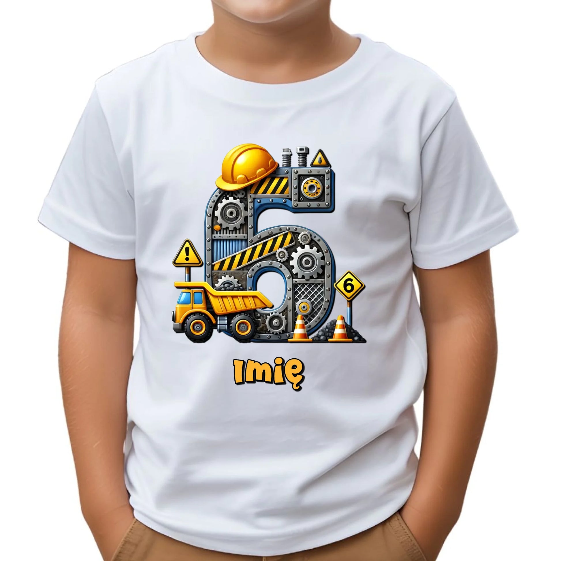Koszulka dziecięca urodzinowa - prezent na 6 urodziny dla chłopca - Wywrotka - personalizowana U40