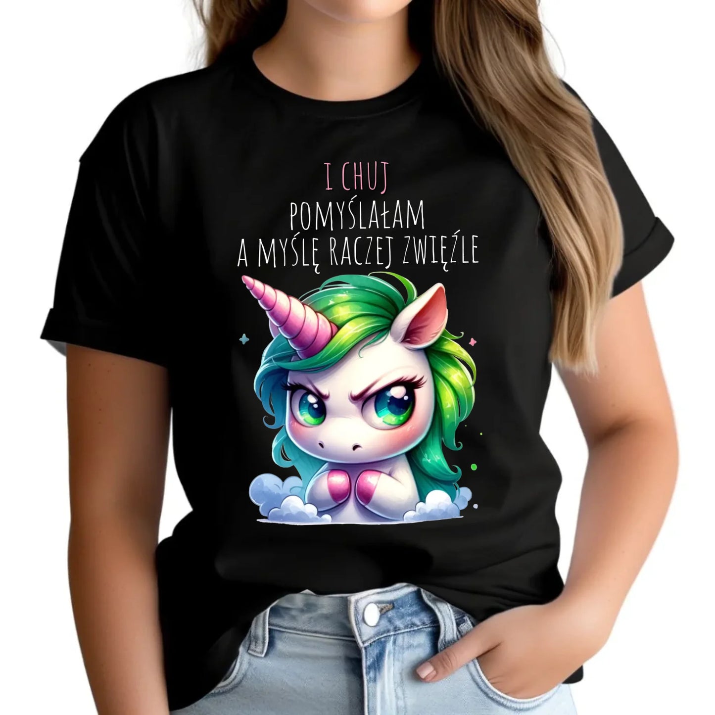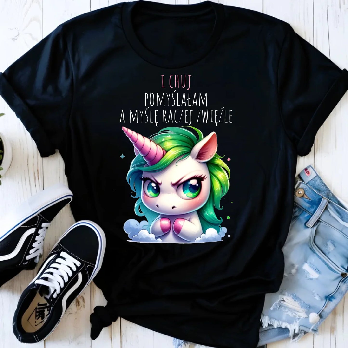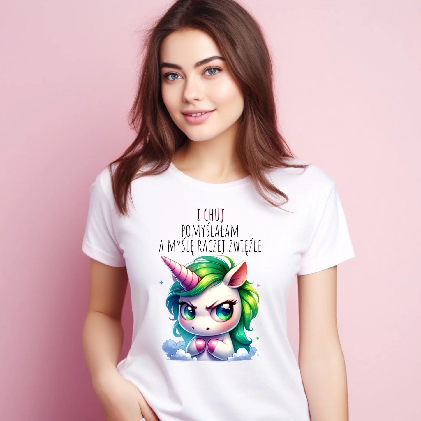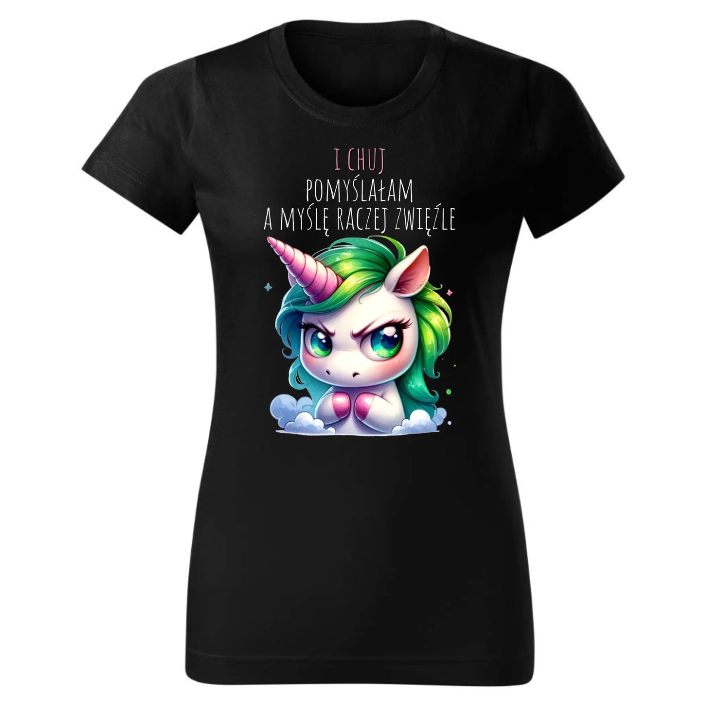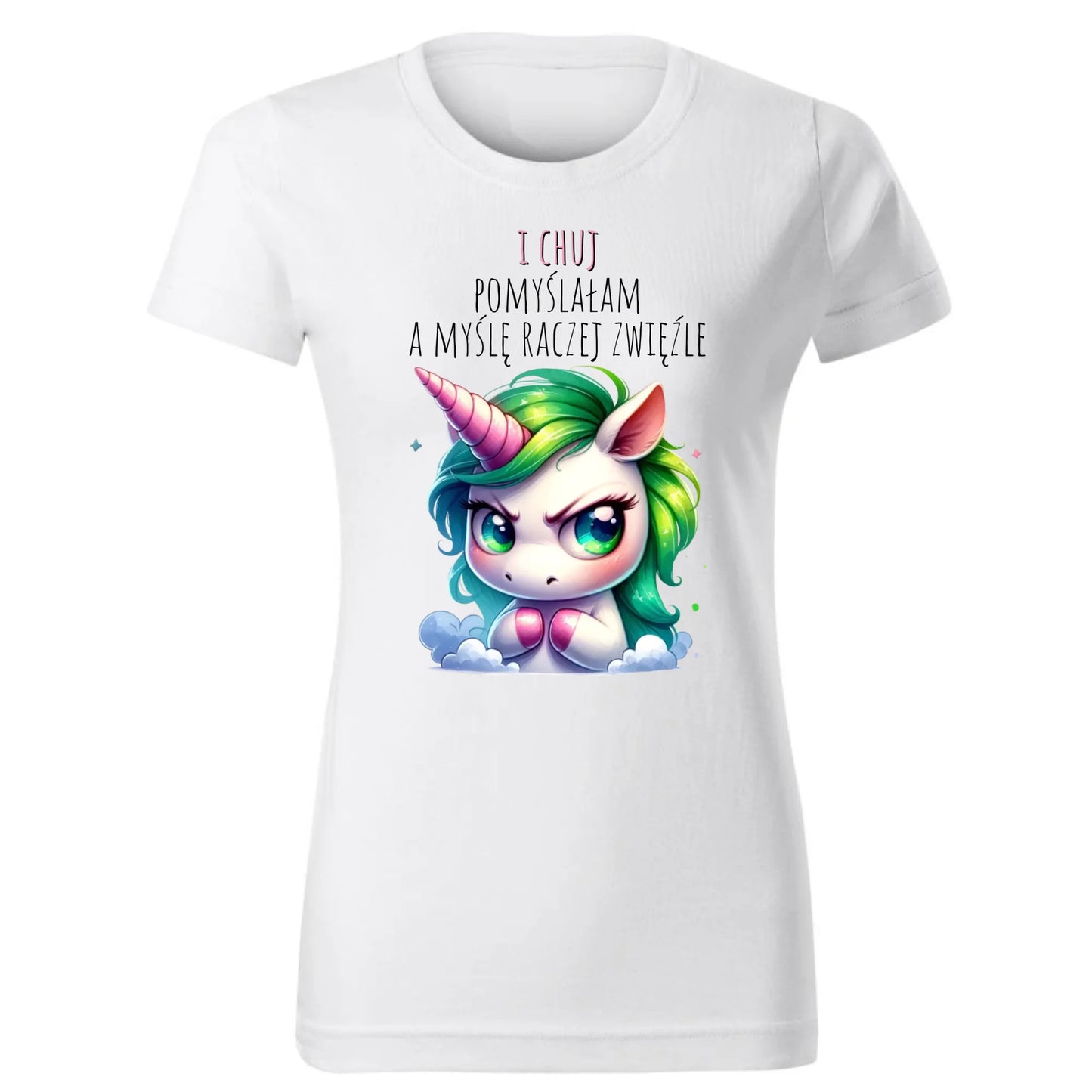 Koszulka damska z jednorożcem – I ch*j pomyślałam – bez cenzury DZ12