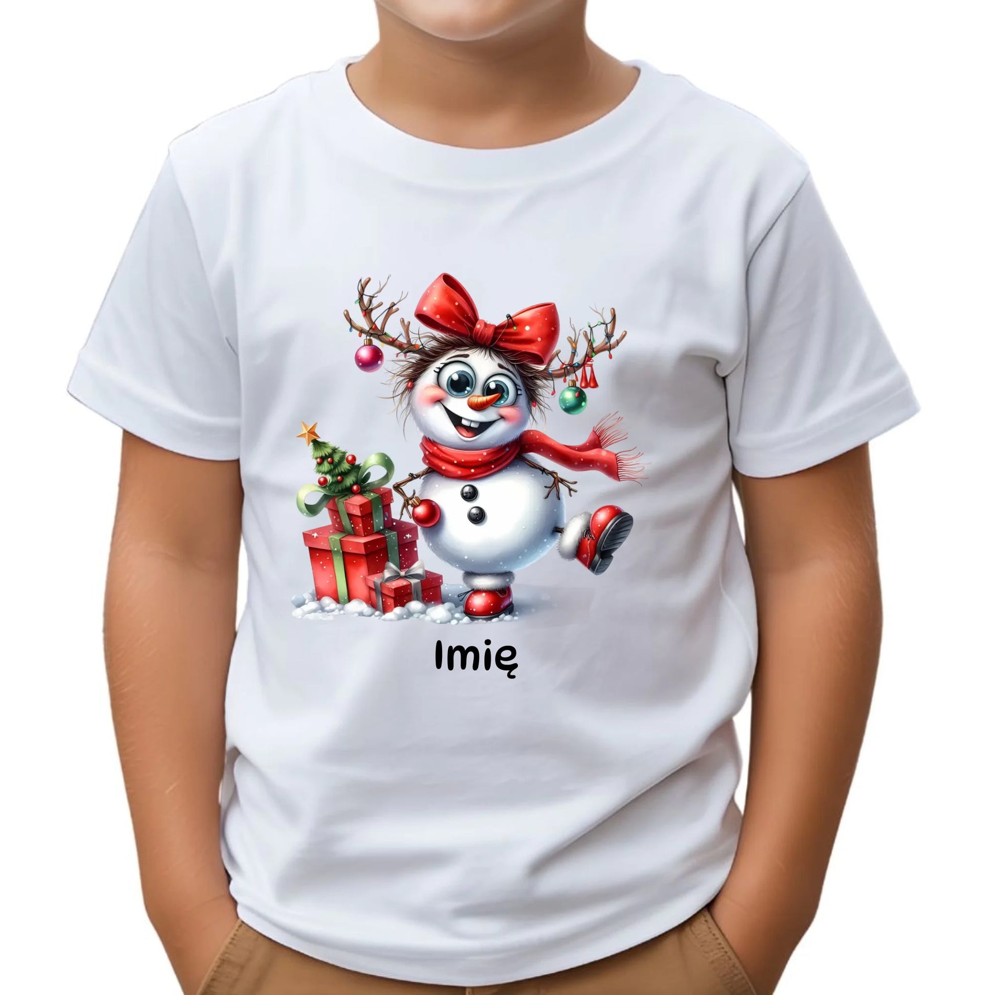Koszulka dziecięca świąteczna dla dziewczynki - Bałwanek - personalizowana BN123