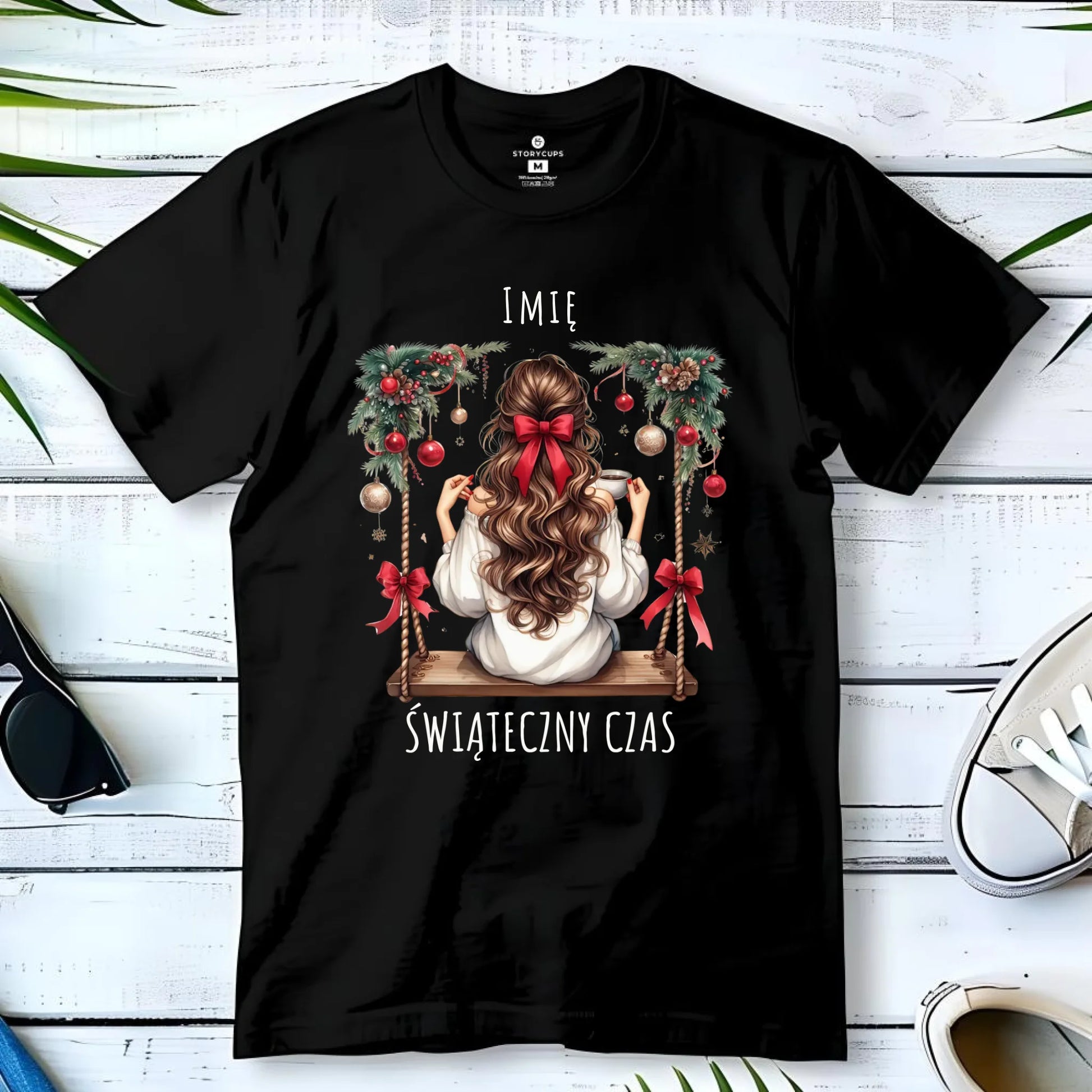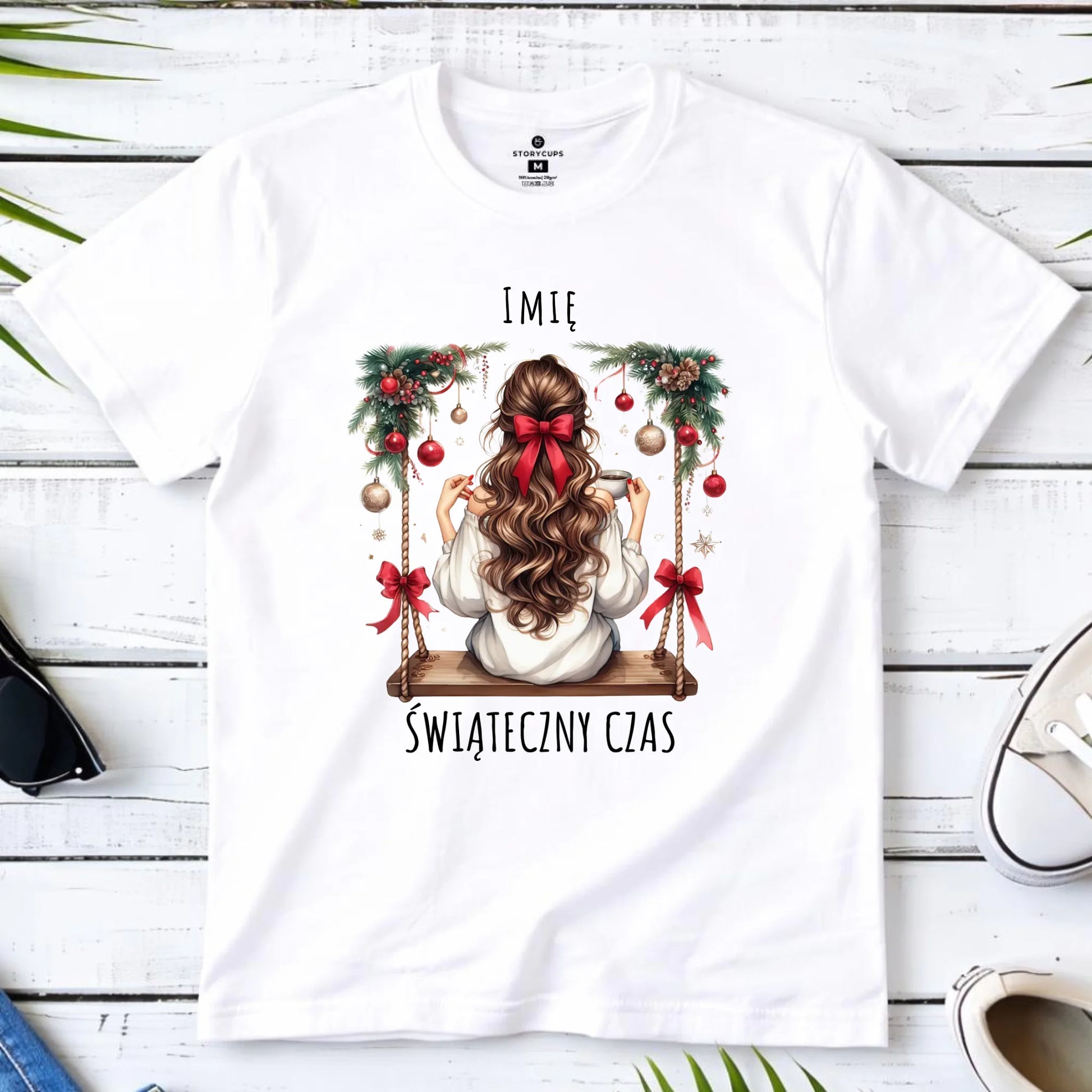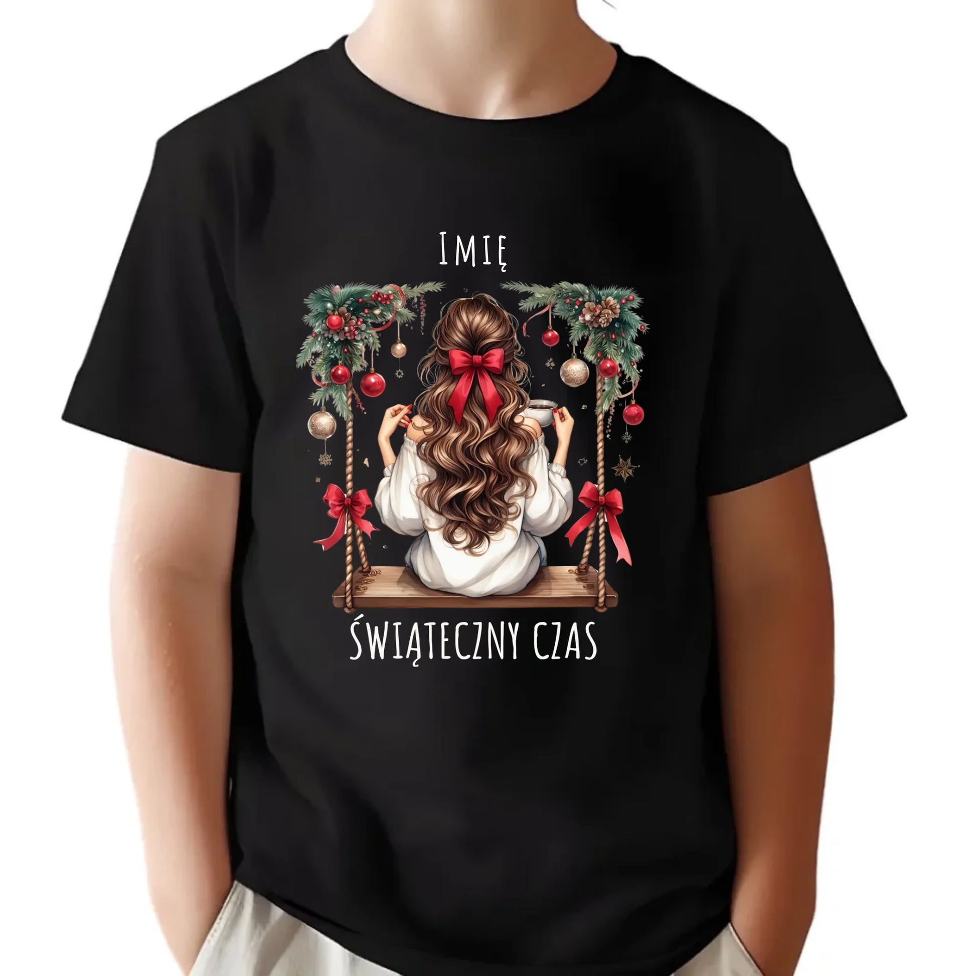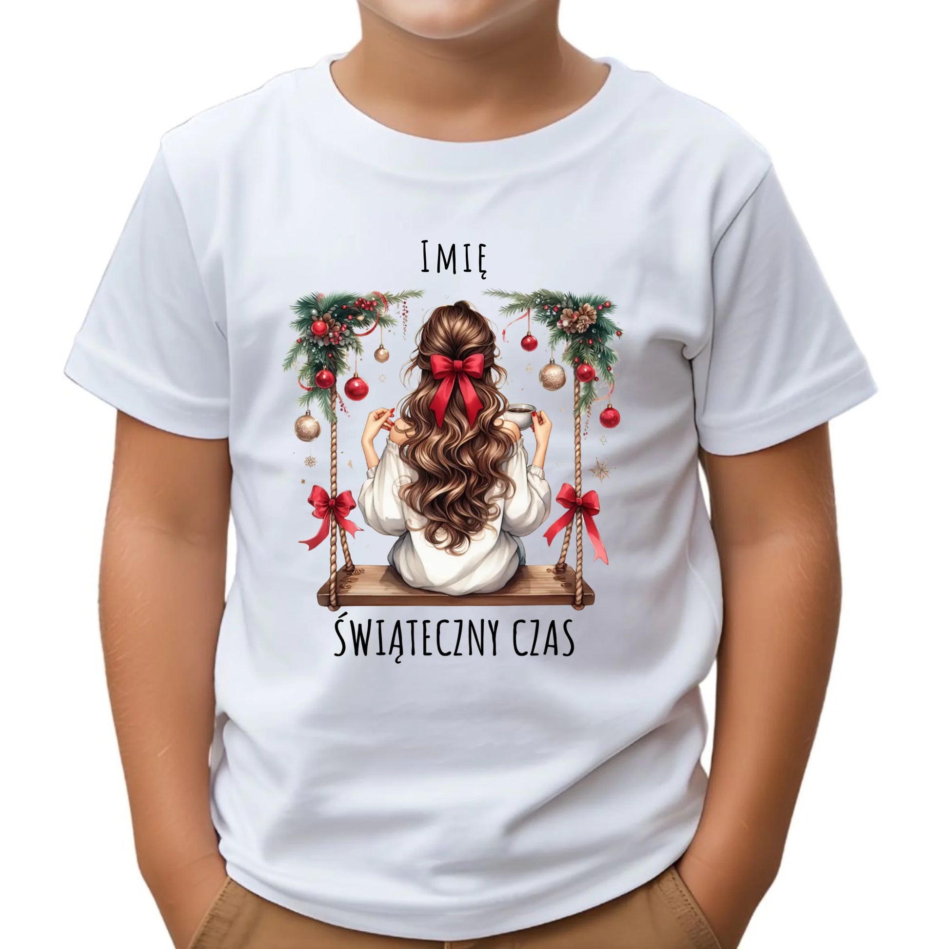 Koszulka dziecięca świąteczna - Dziewczyna na huśtawce - Świąteczny czas - personalizowana BN105