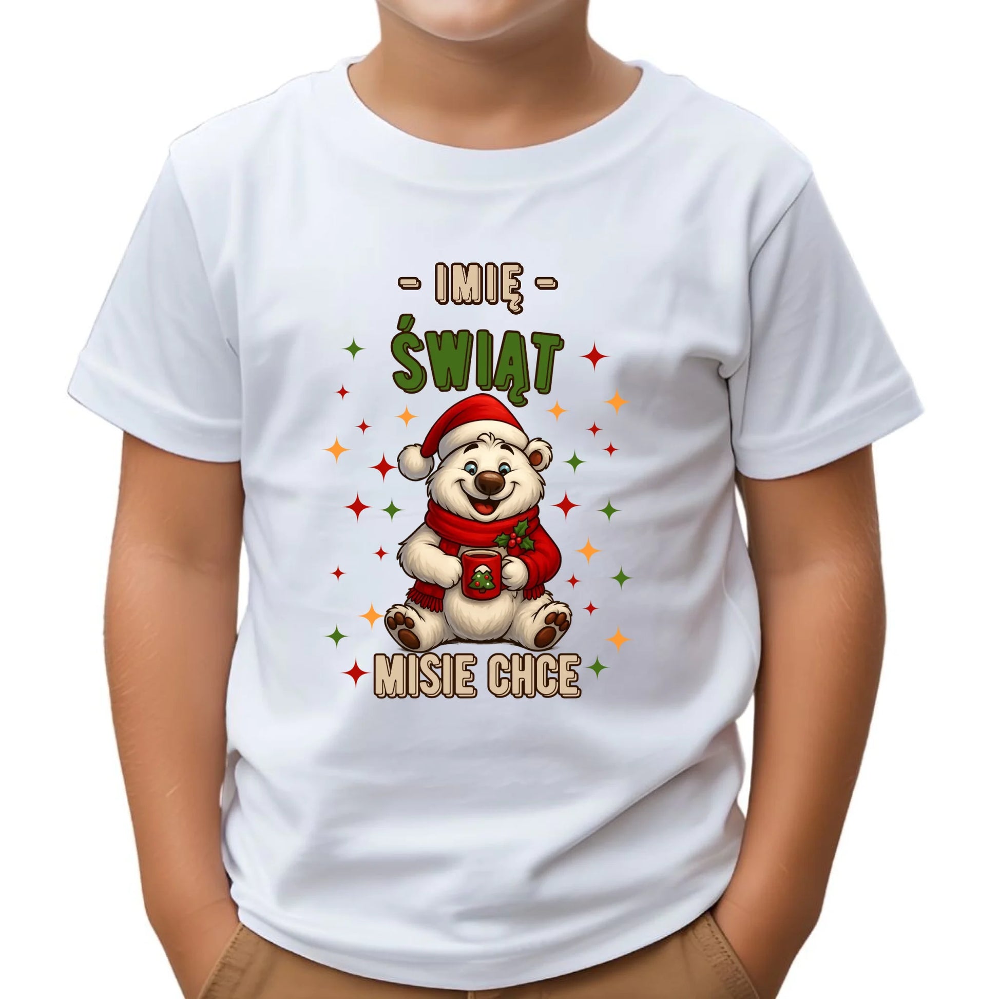 Koszulka dziecięca świąteczna - Misiek Świąt misie chce - personalizowana BN86