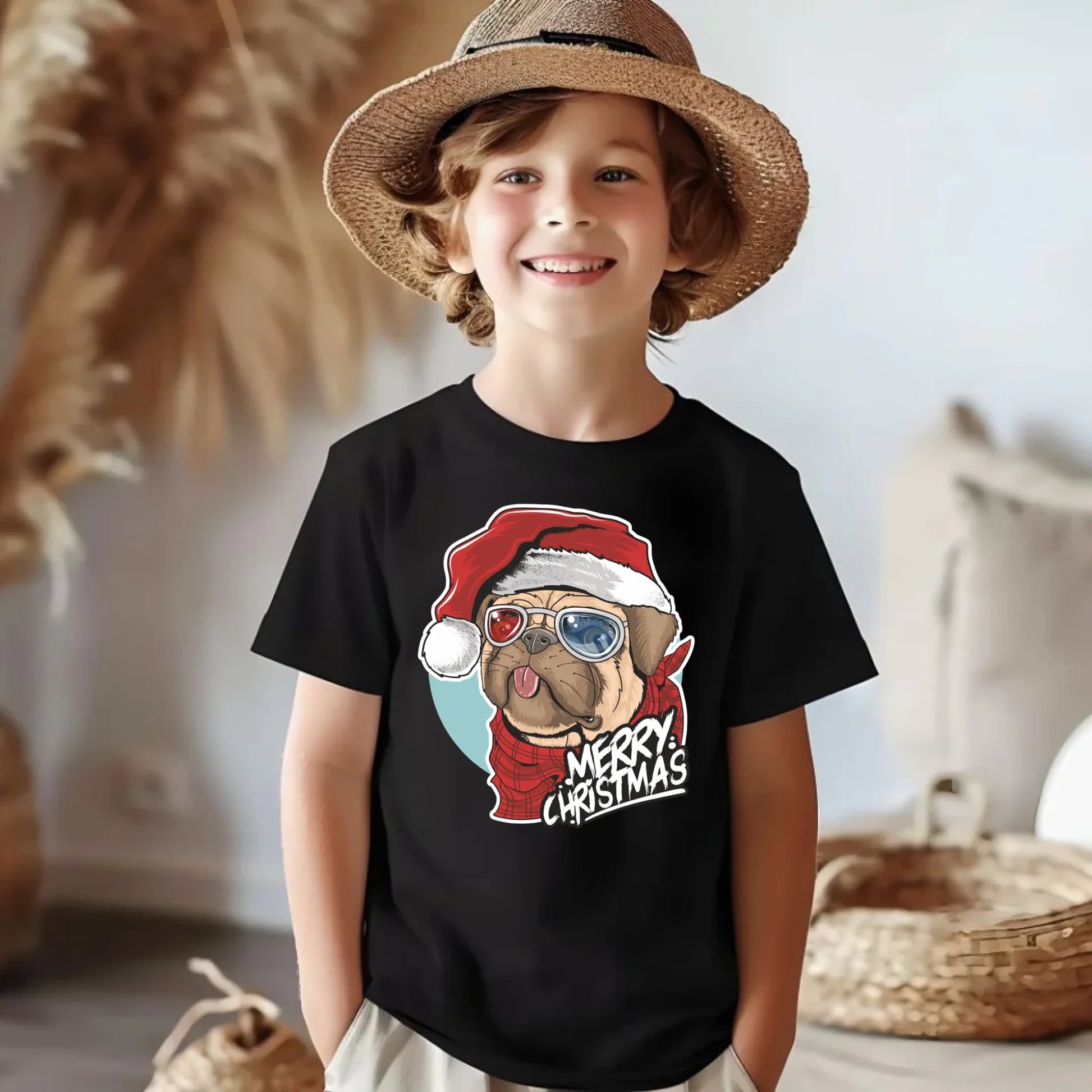 Koszulka dziecięca świąteczna - Mops Merry Christmas BN62