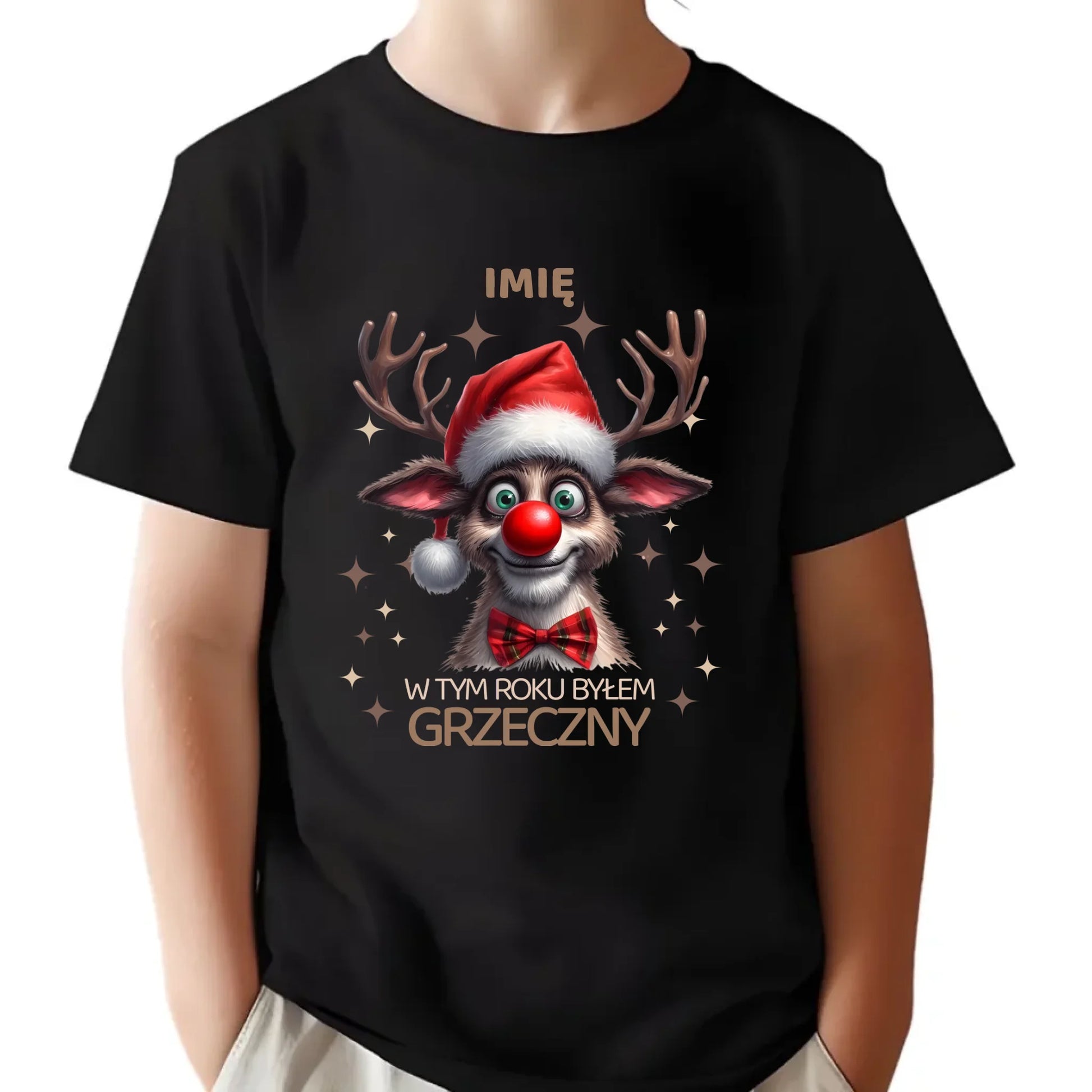 Koszulka dziecięca świąteczna - Renifer W tym roku byłem grzeczny - personalizowana BN96