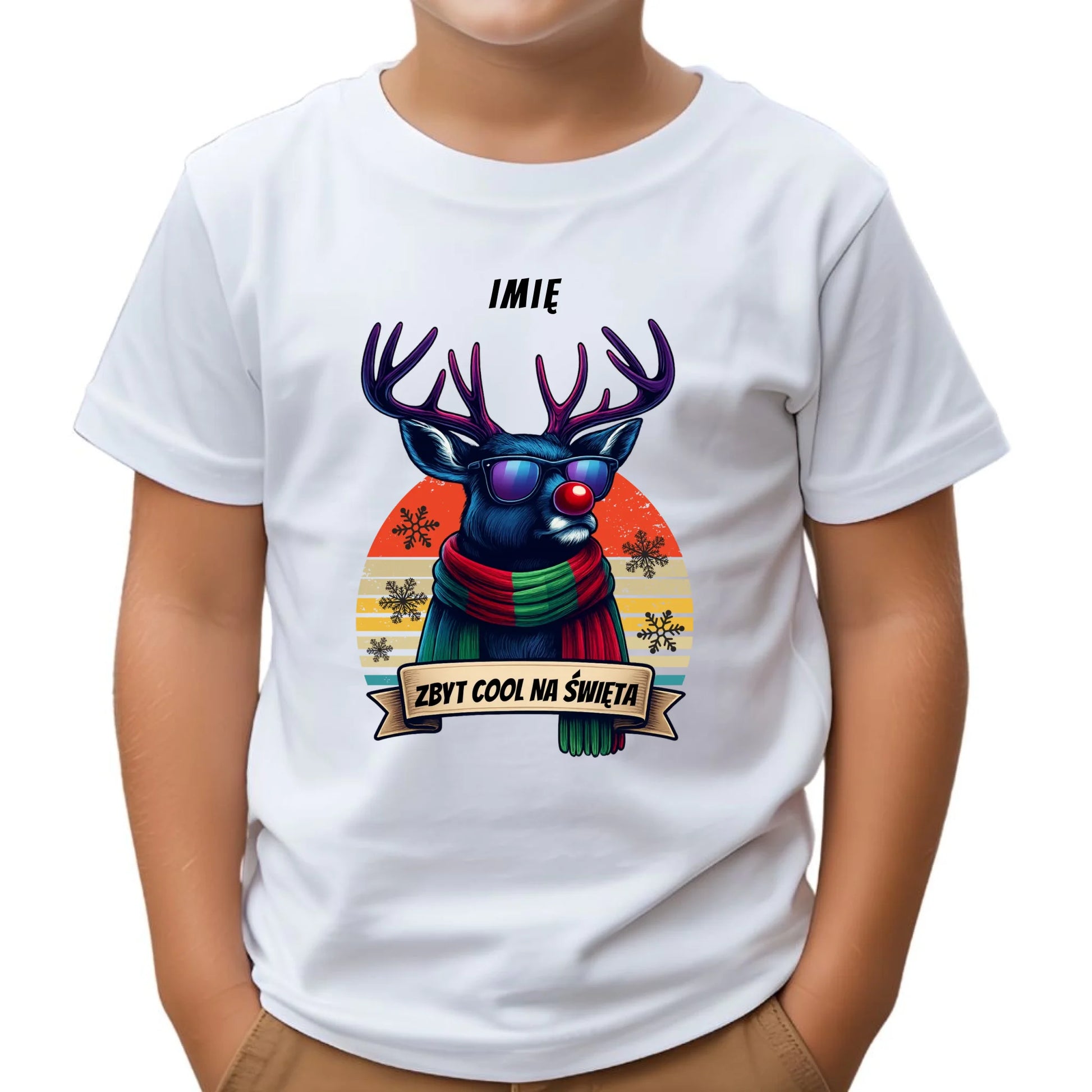 Koszulka dziecięca świąteczna z reniferem - Zbyt cool na święta - personalizowana BN128
