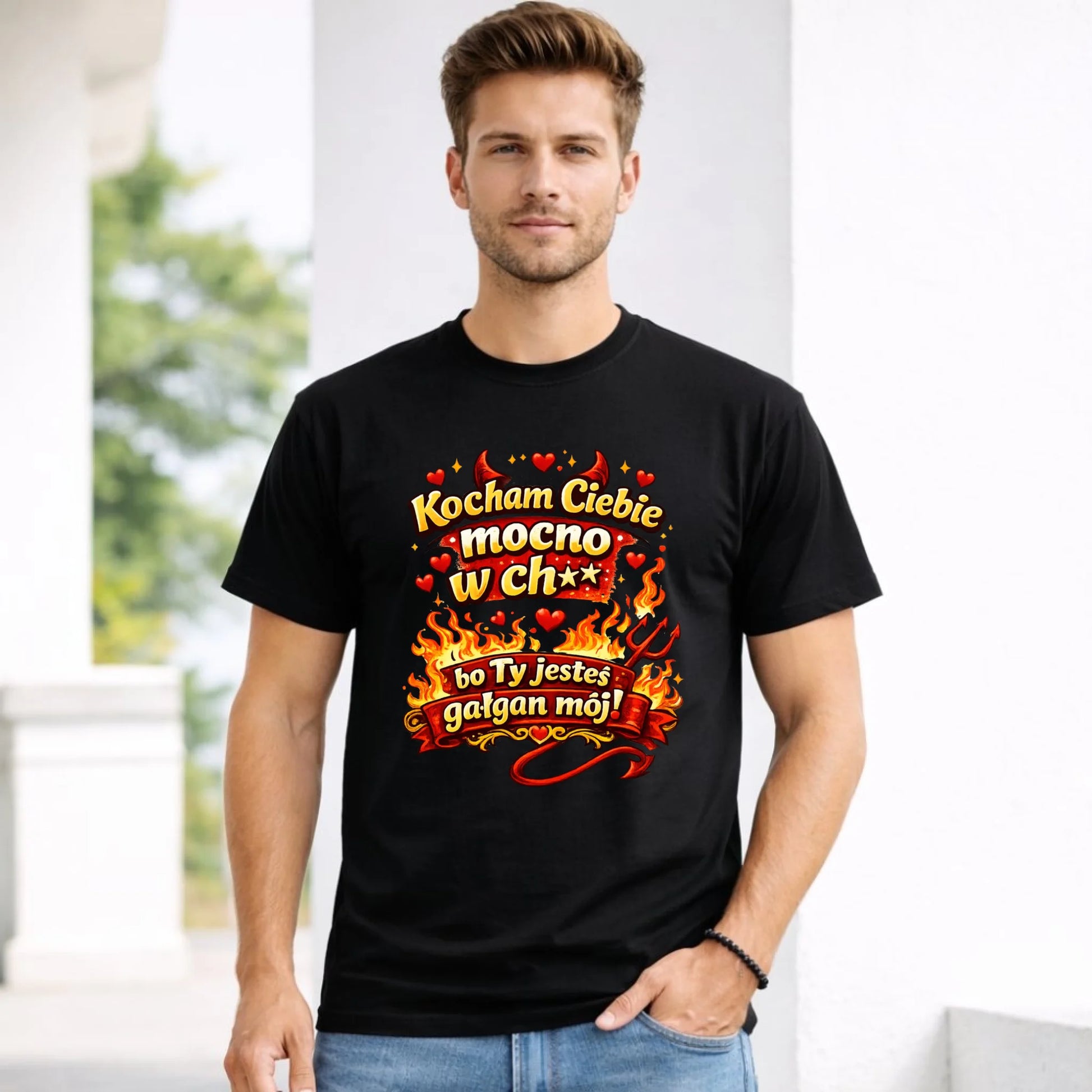 Koszulka męska - Kocham Ciebie mocno w ch** bo Ty jesteś gałgan mój W82