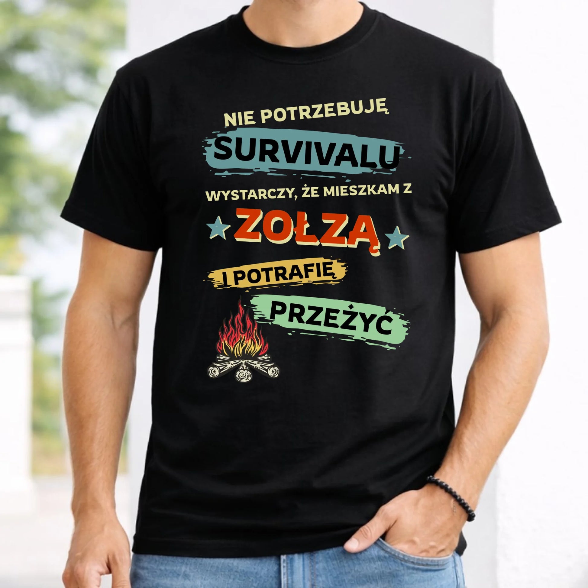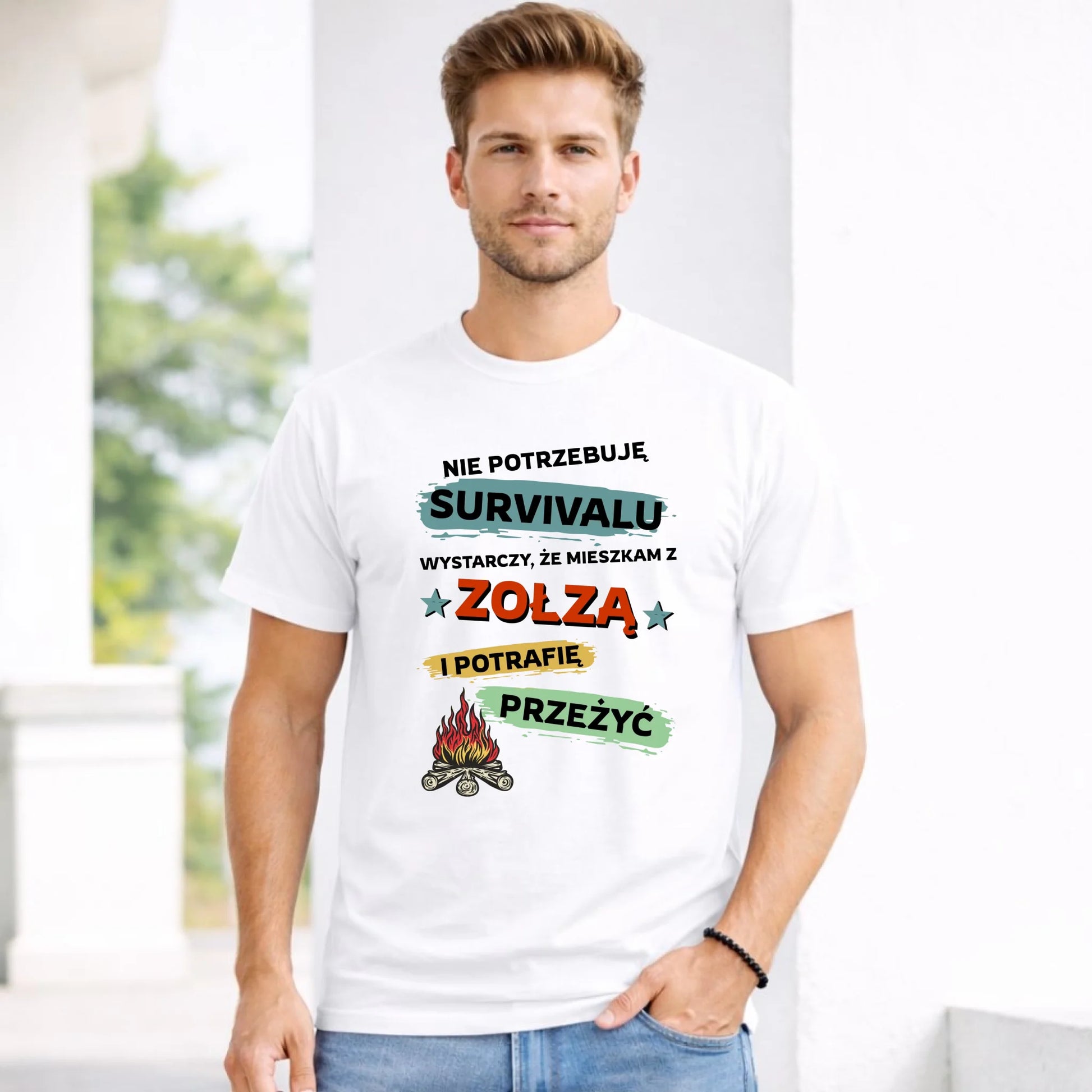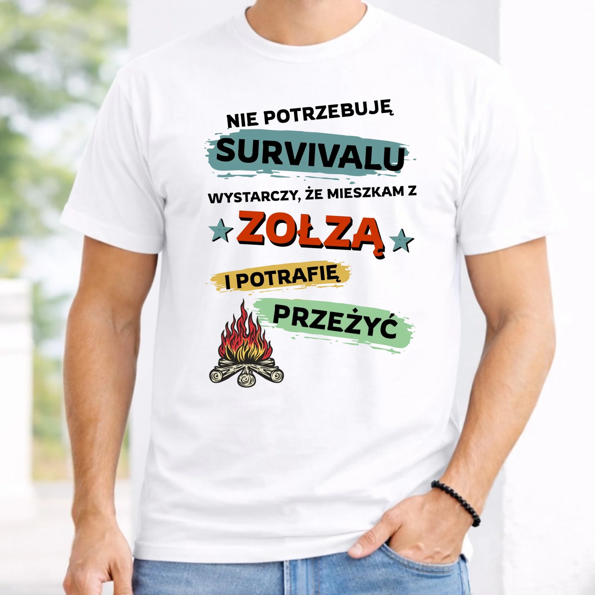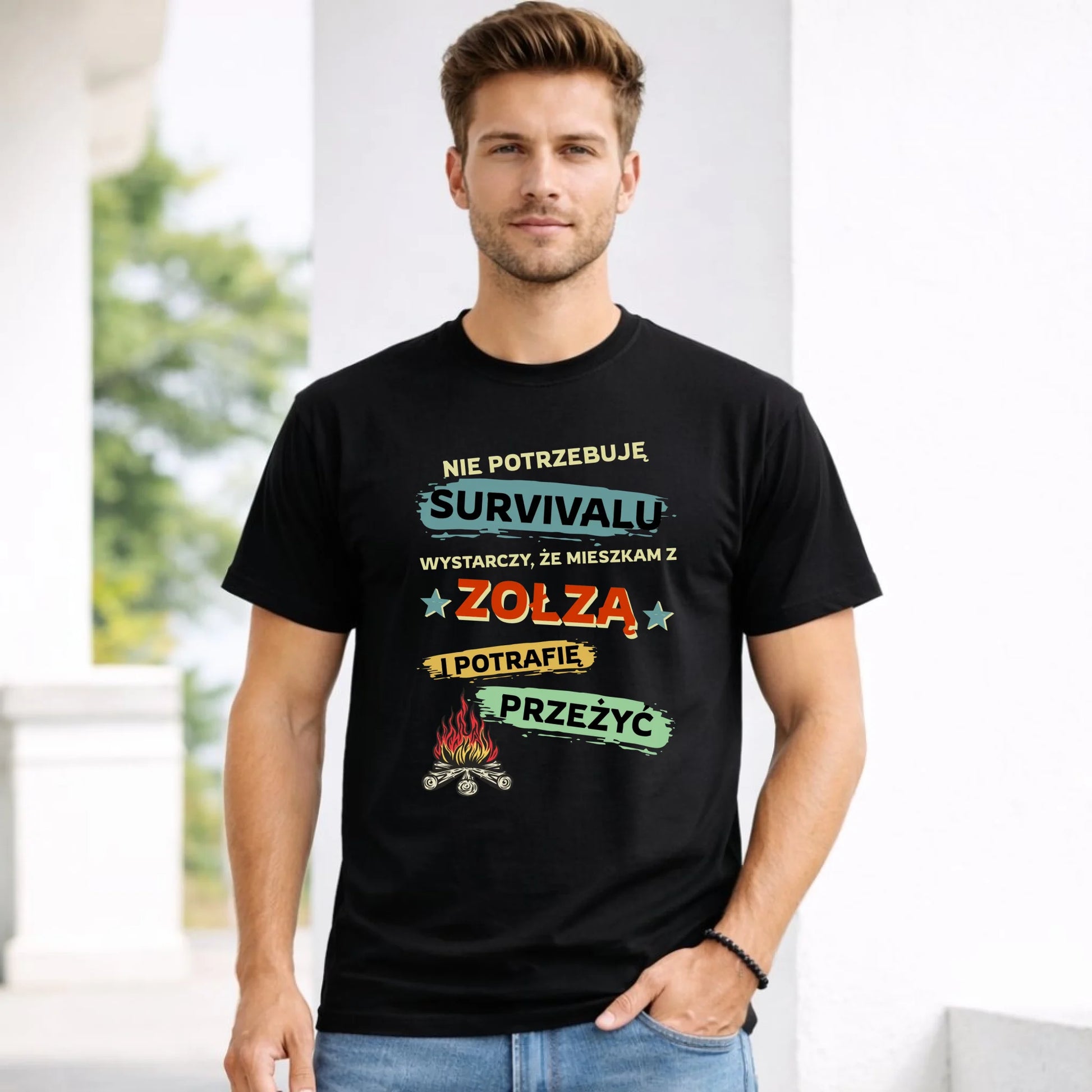 Koszulka męska – Prezent dla chłopaka męża - Nie potrzebuję survivalu, mieszkam z zołzą DCH25