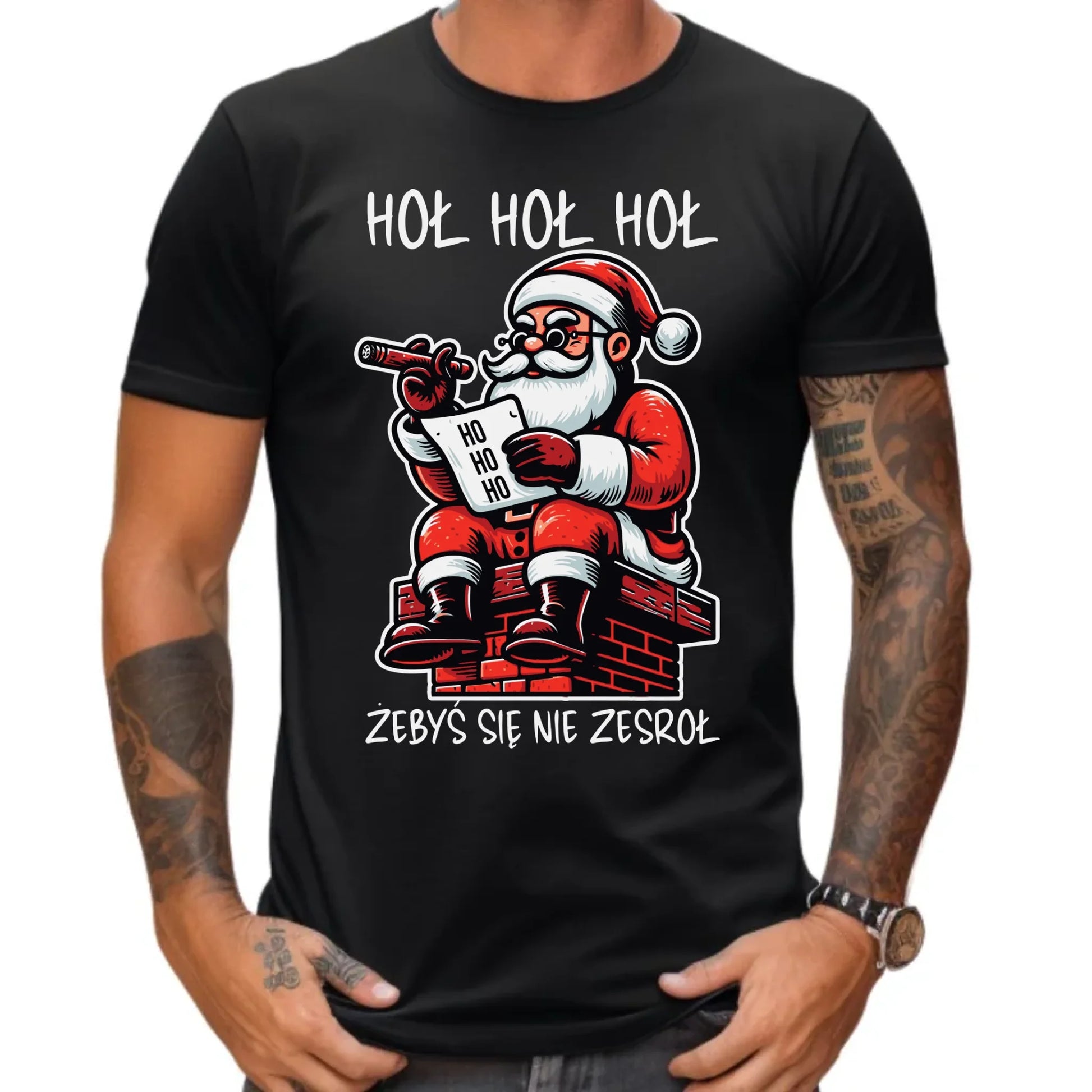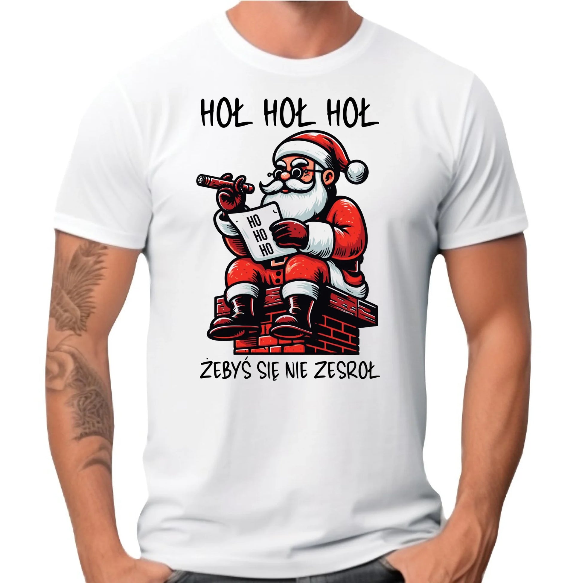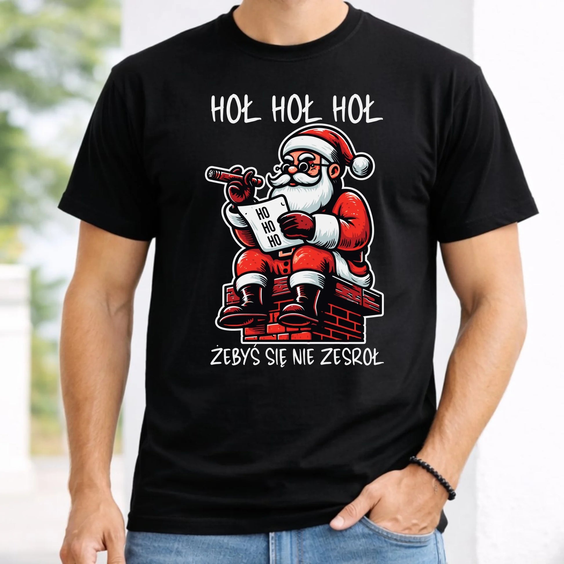 Koszulka męska świąteczna - Śmieszny prezent na Mikołaja - Hoł hoł hoł żebyś się nie zesroł BN156