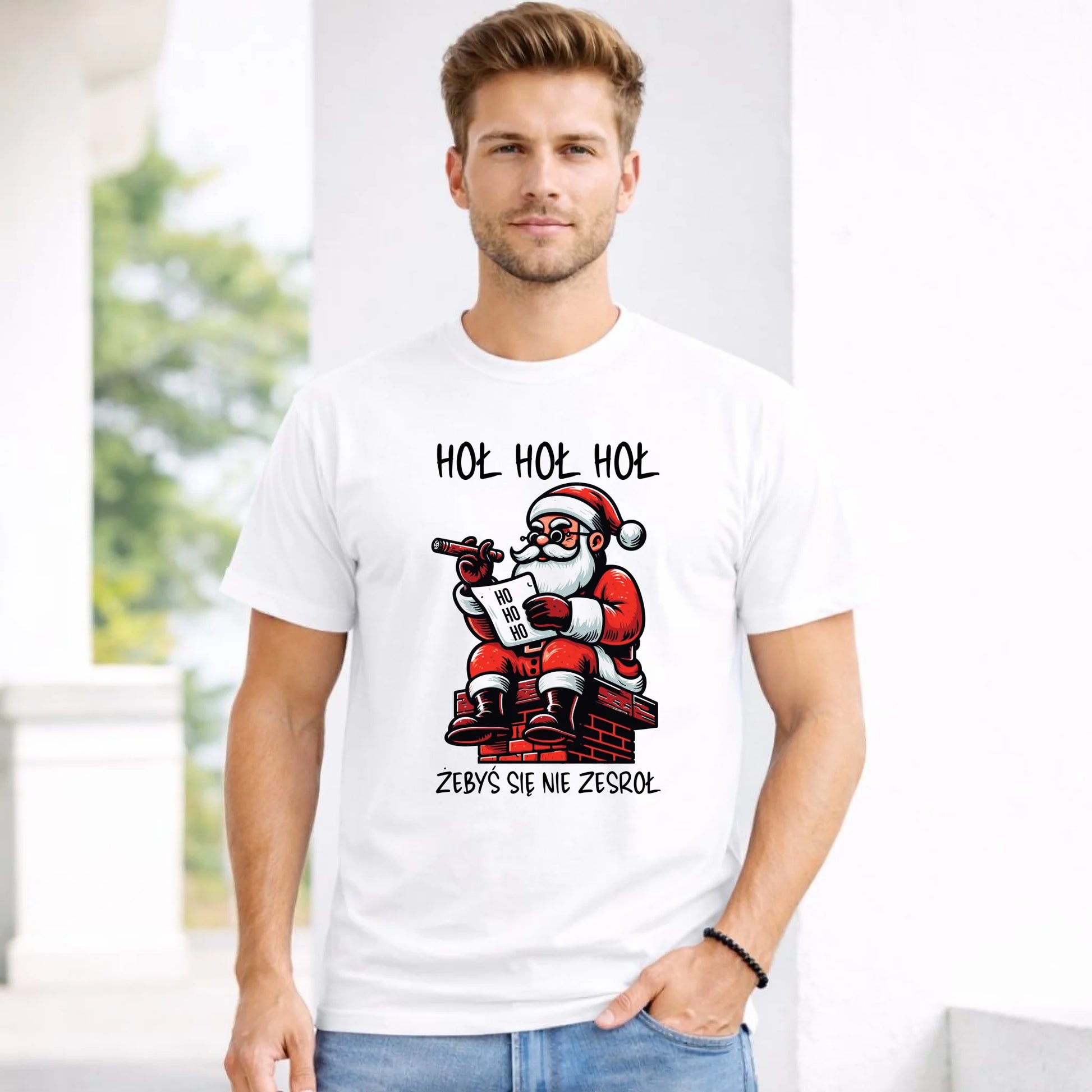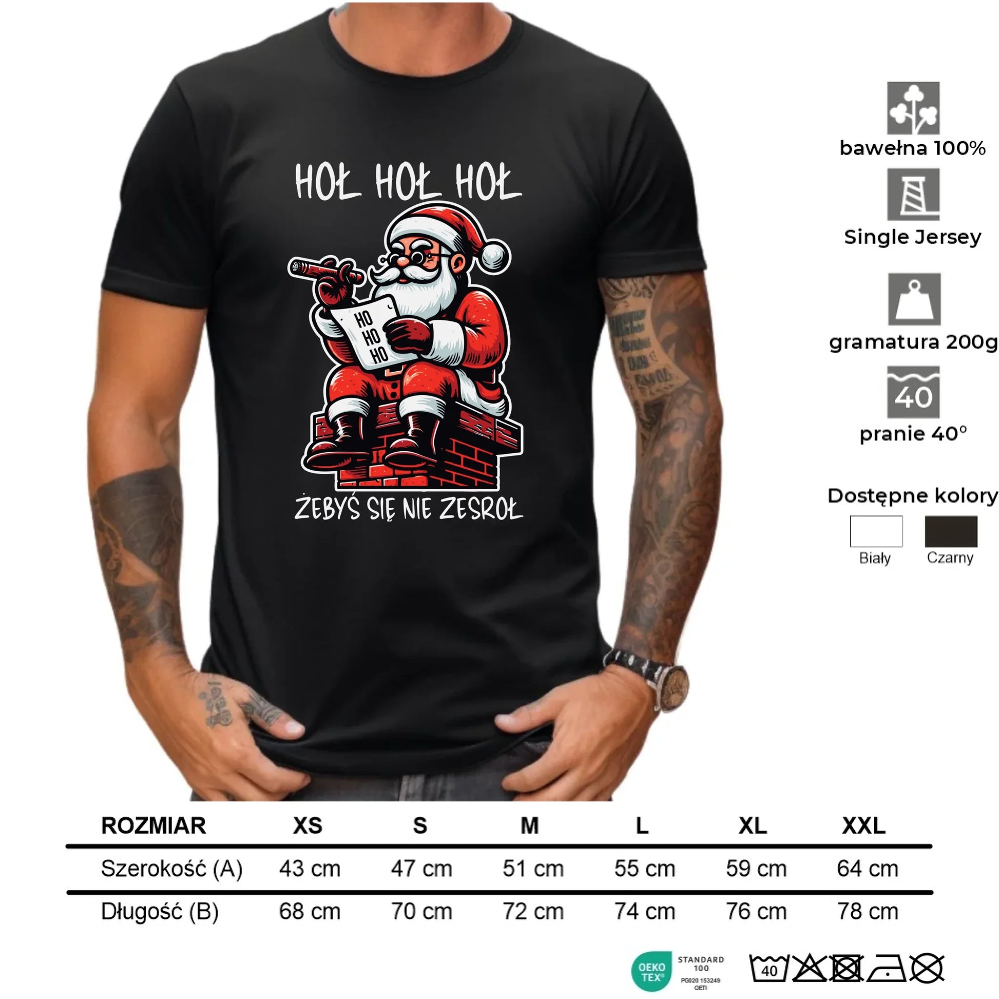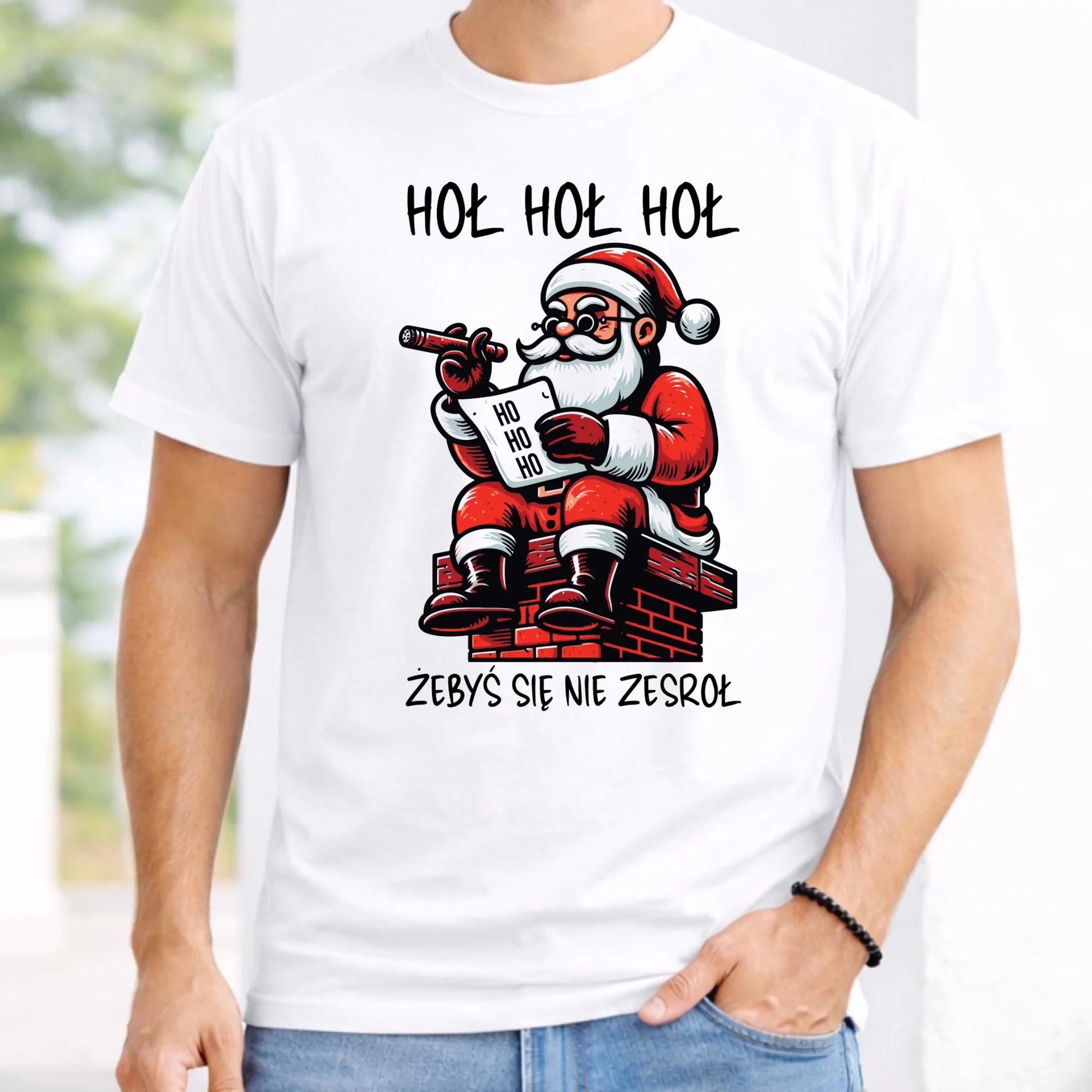 Koszulka męska świąteczna - Śmieszny prezent na Mikołaja - Hoł hoł hoł żebyś się nie zesroł BN156