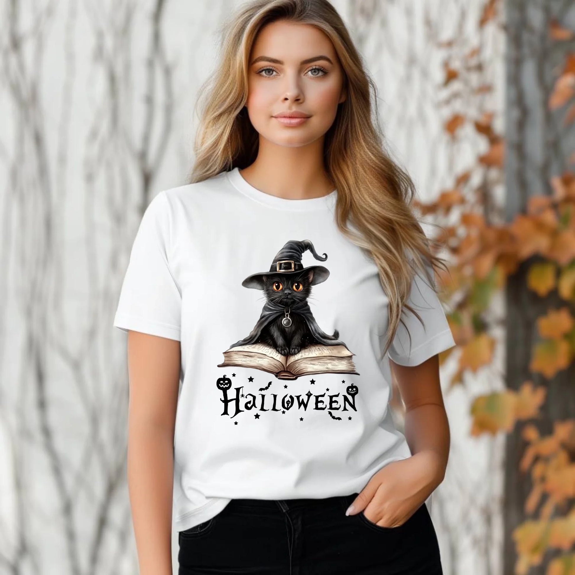 Koszulka damska na Halloween - Kot Czarodziej HL06