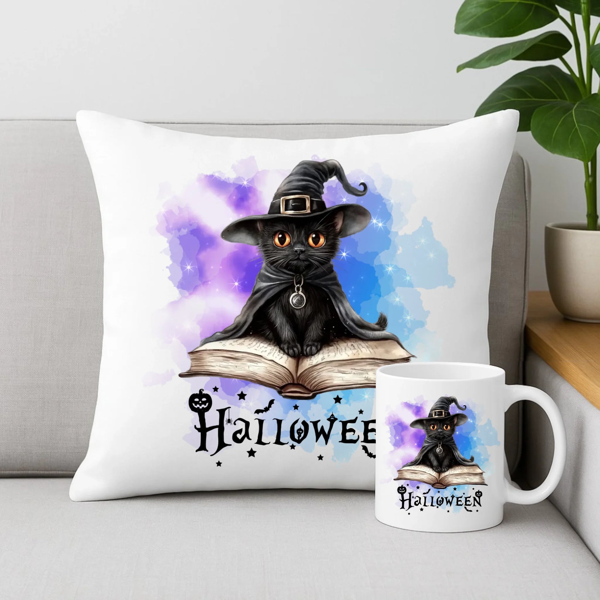 Zestaw poduszka i kubek na Halloween - Kot Czarodziej HL06
