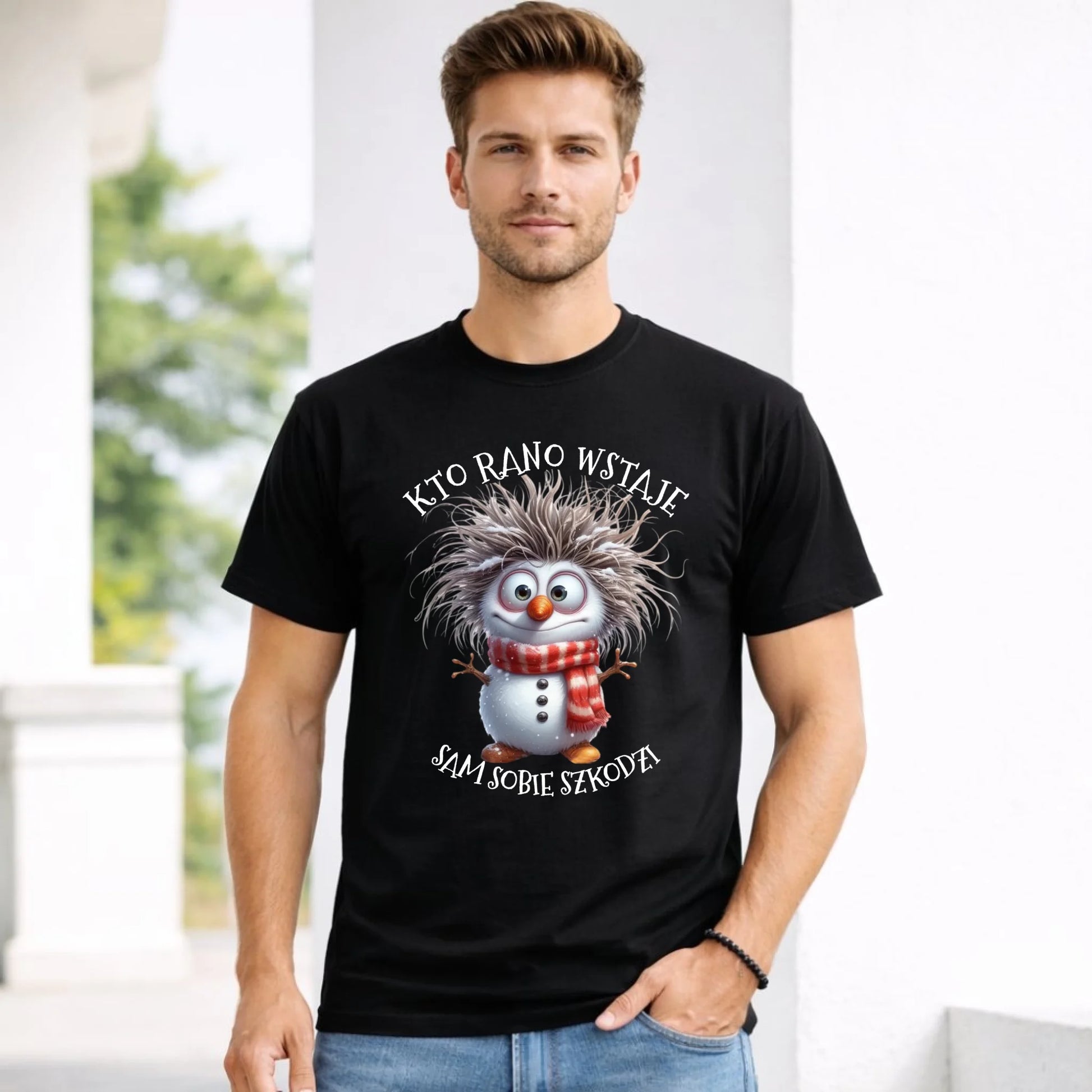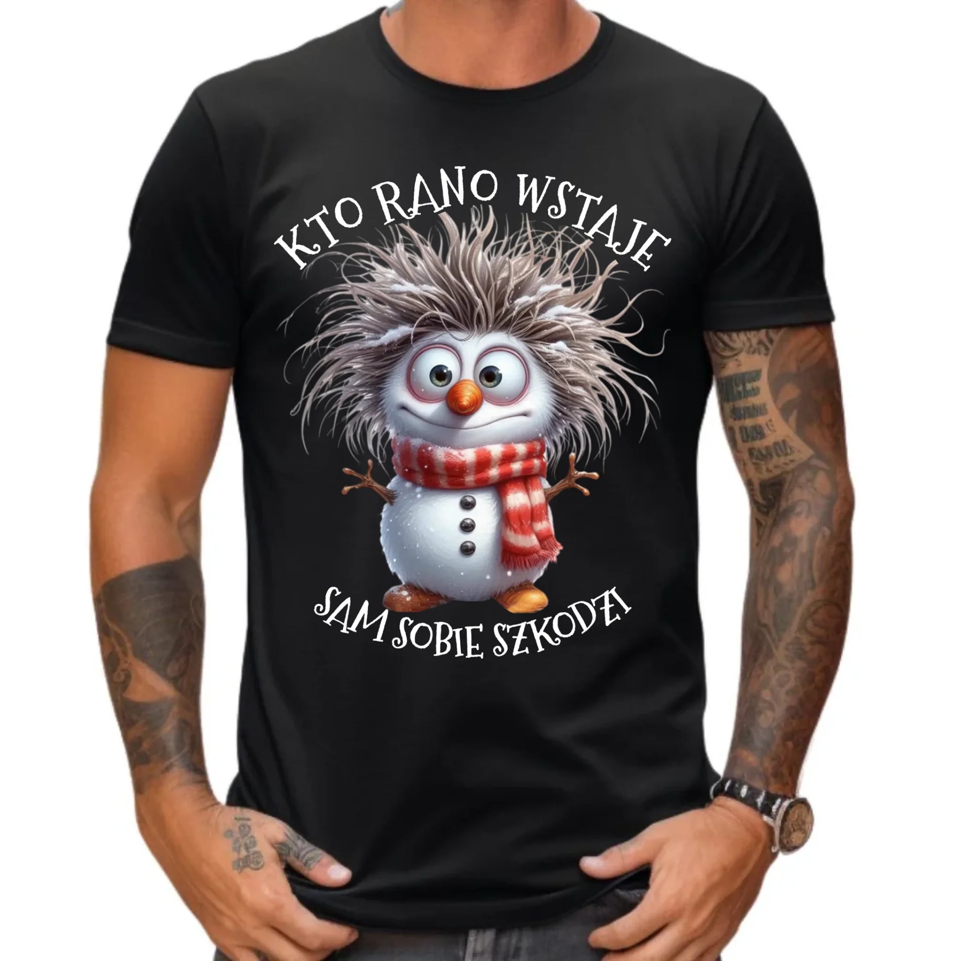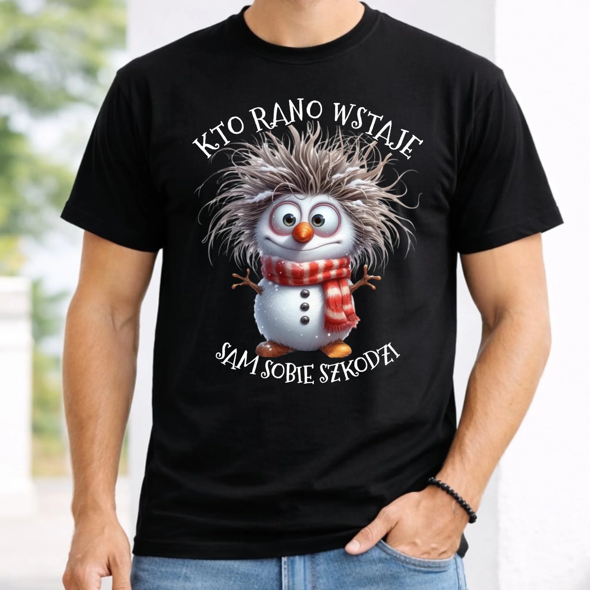Koszulka męska świąteczna - Bałwanek - Kto rano wstaje sam sobie szkodzi BN133