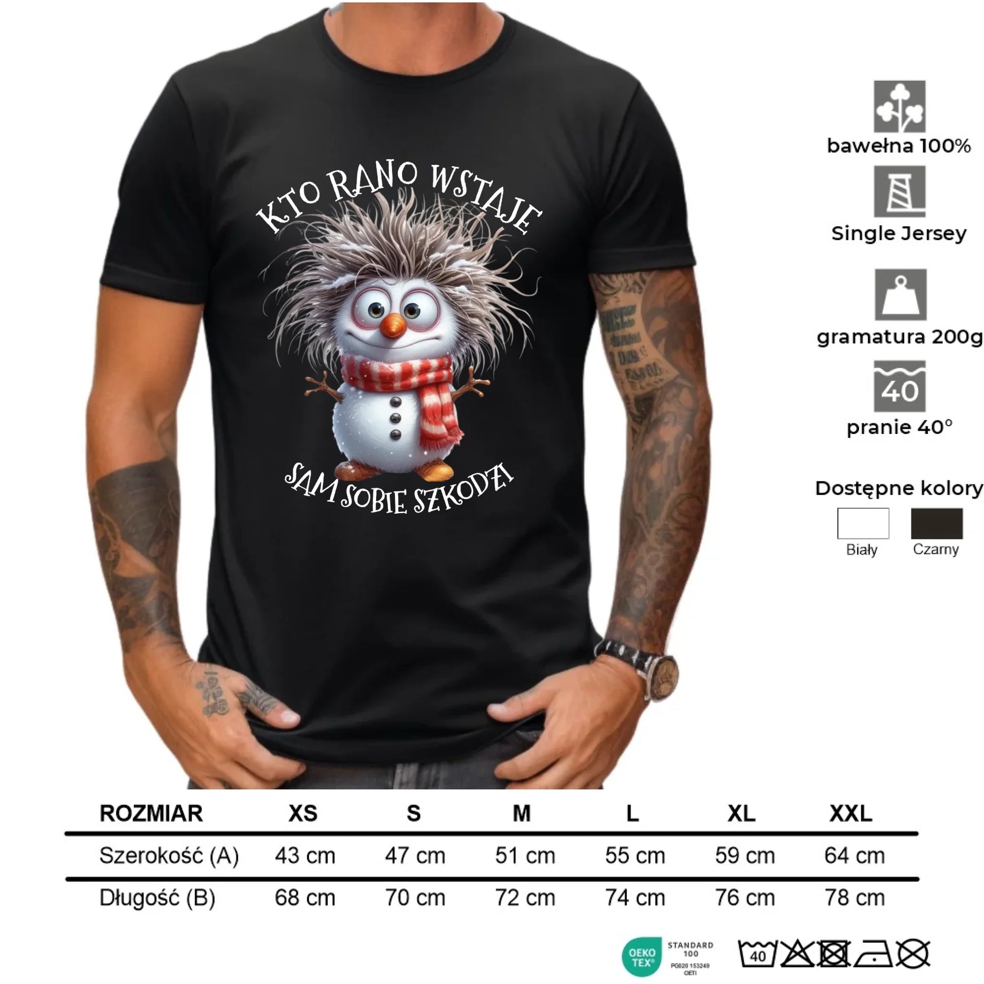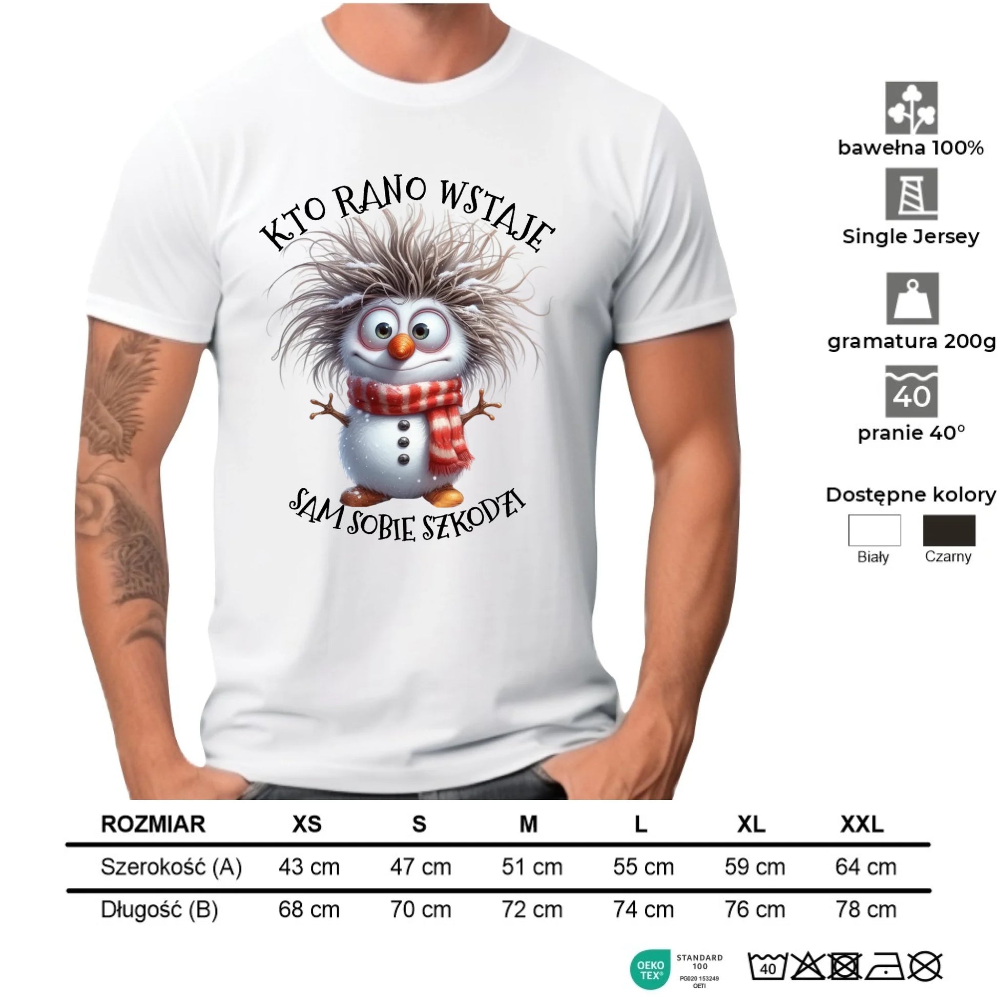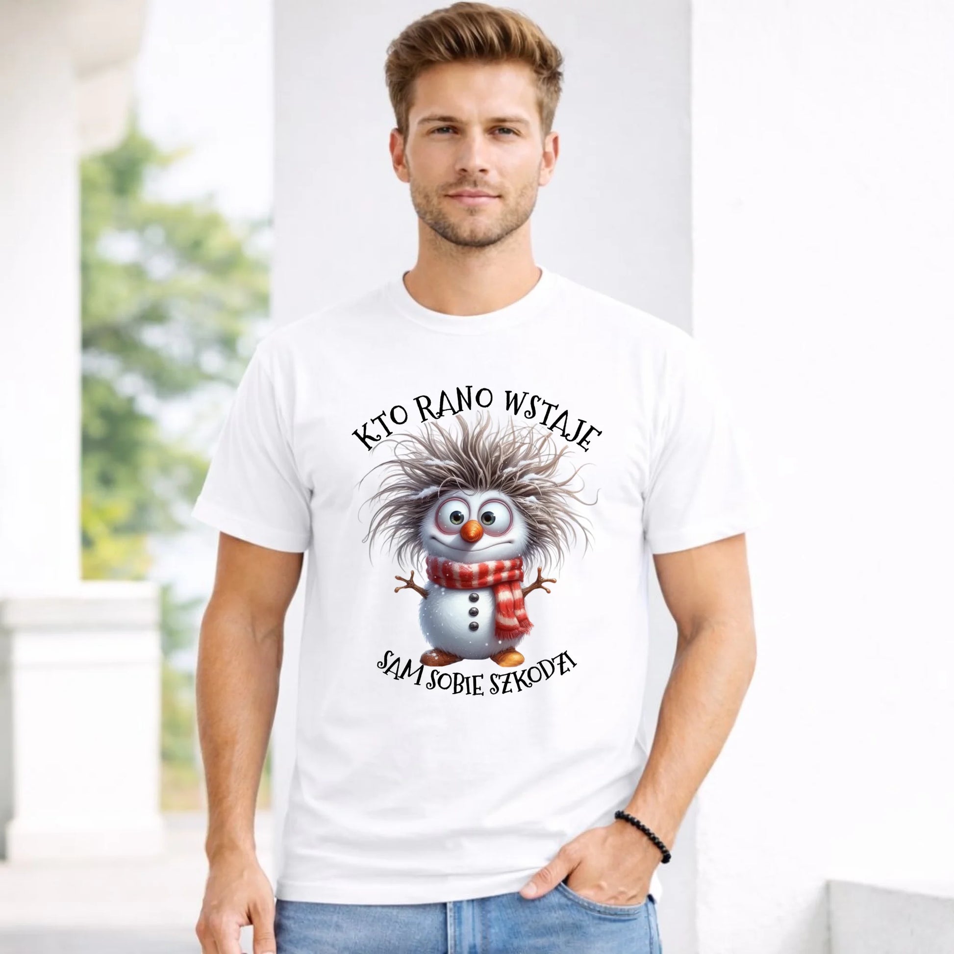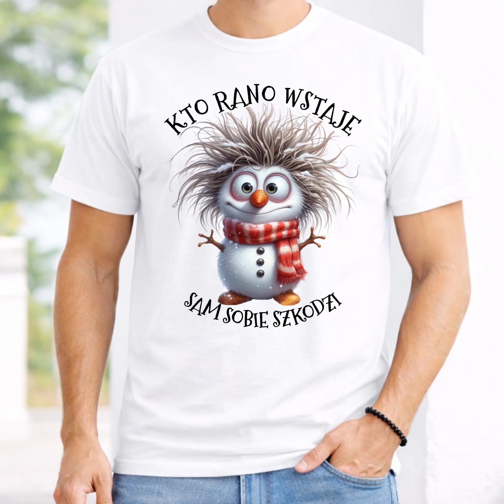 Koszulka męska świąteczna - Bałwanek - Kto rano wstaje sam sobie szkodzi BN133