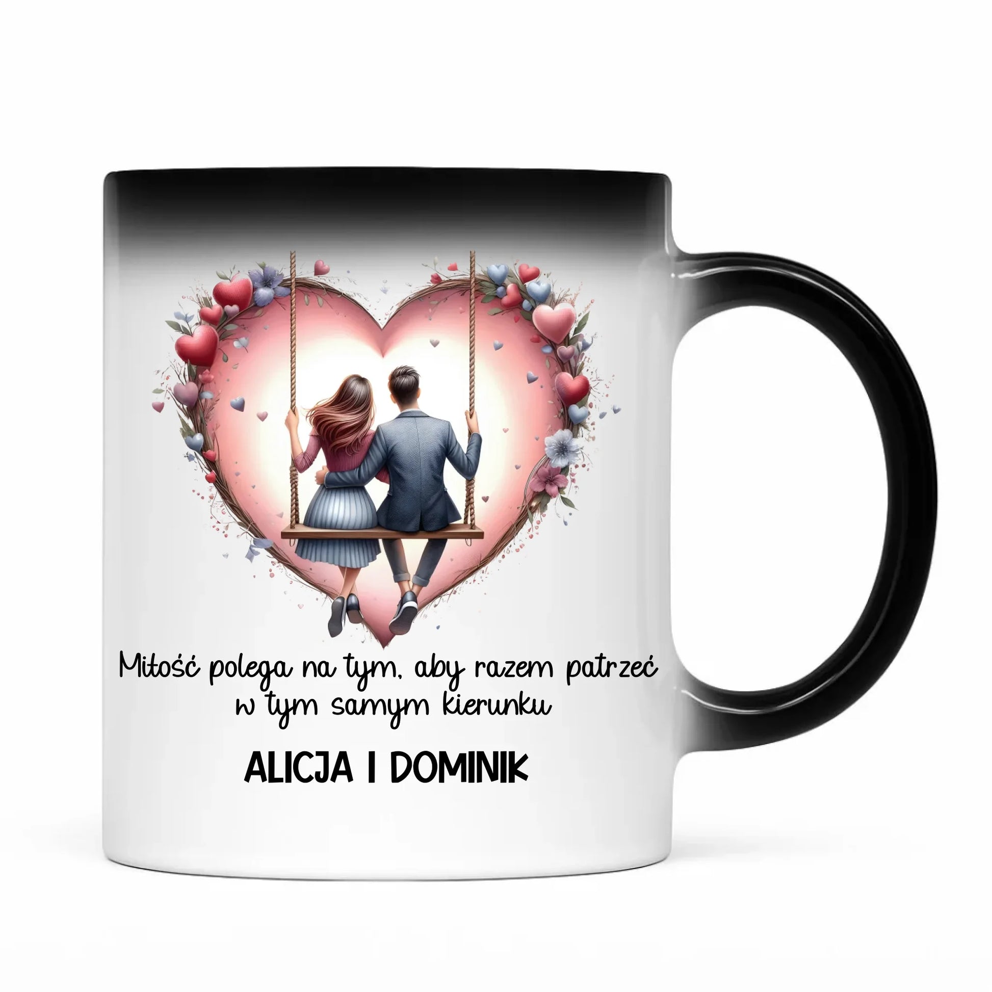 Kubek magiczny dla par - prezent dla chłopaka i dziewczyny - Para na huśtawce - personalizowany W12