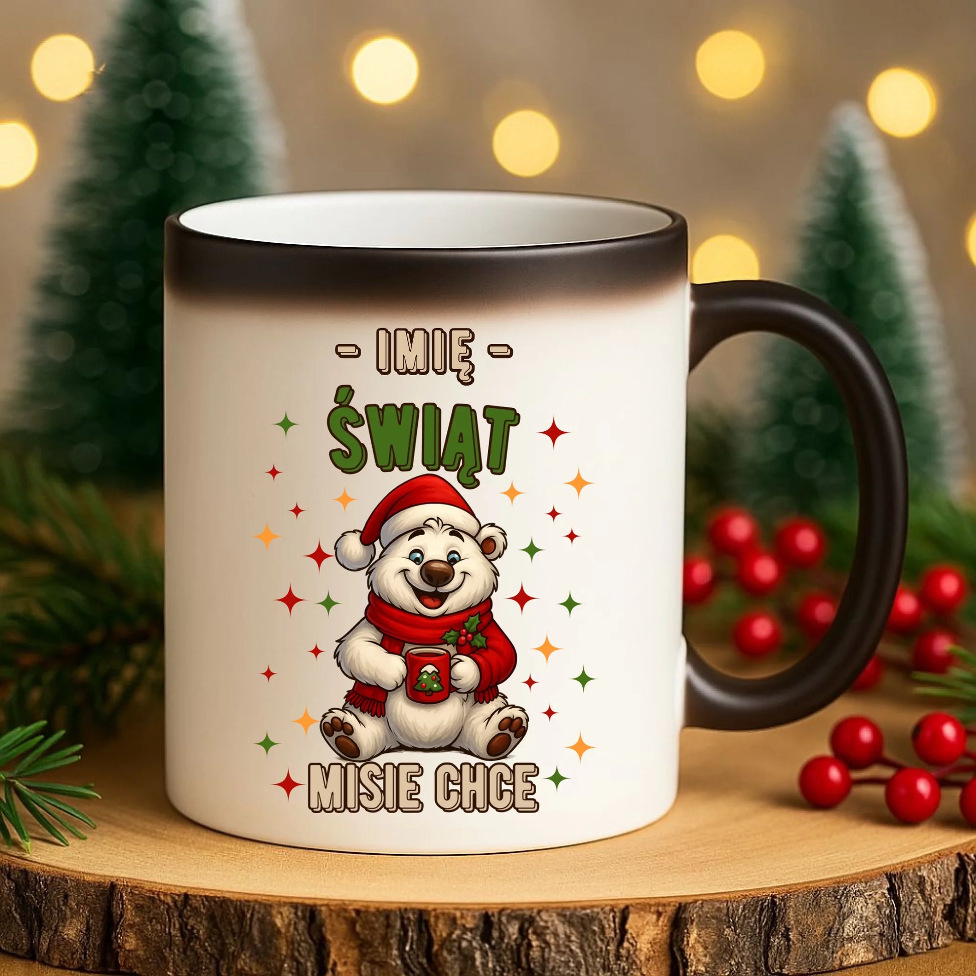 Kubek magiczny świąteczny - Misiek Świąt misie chce - personalizowany BN86