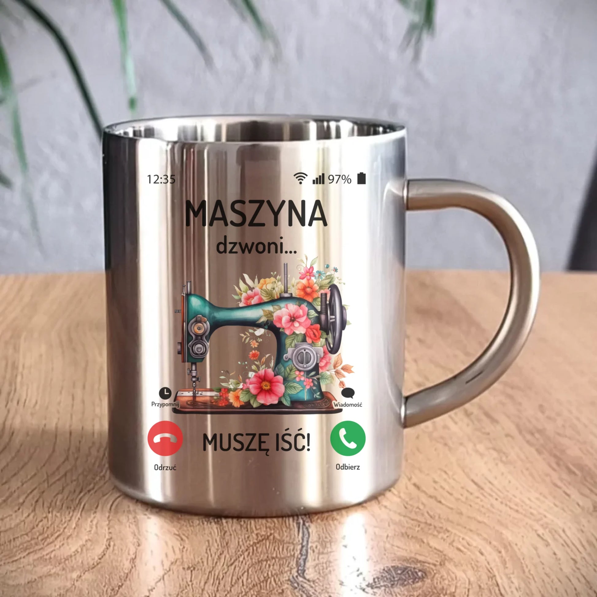 Kubek metalowy szyciowy dla krawcowej - Maszyna dzwoni muszę iść HS05
