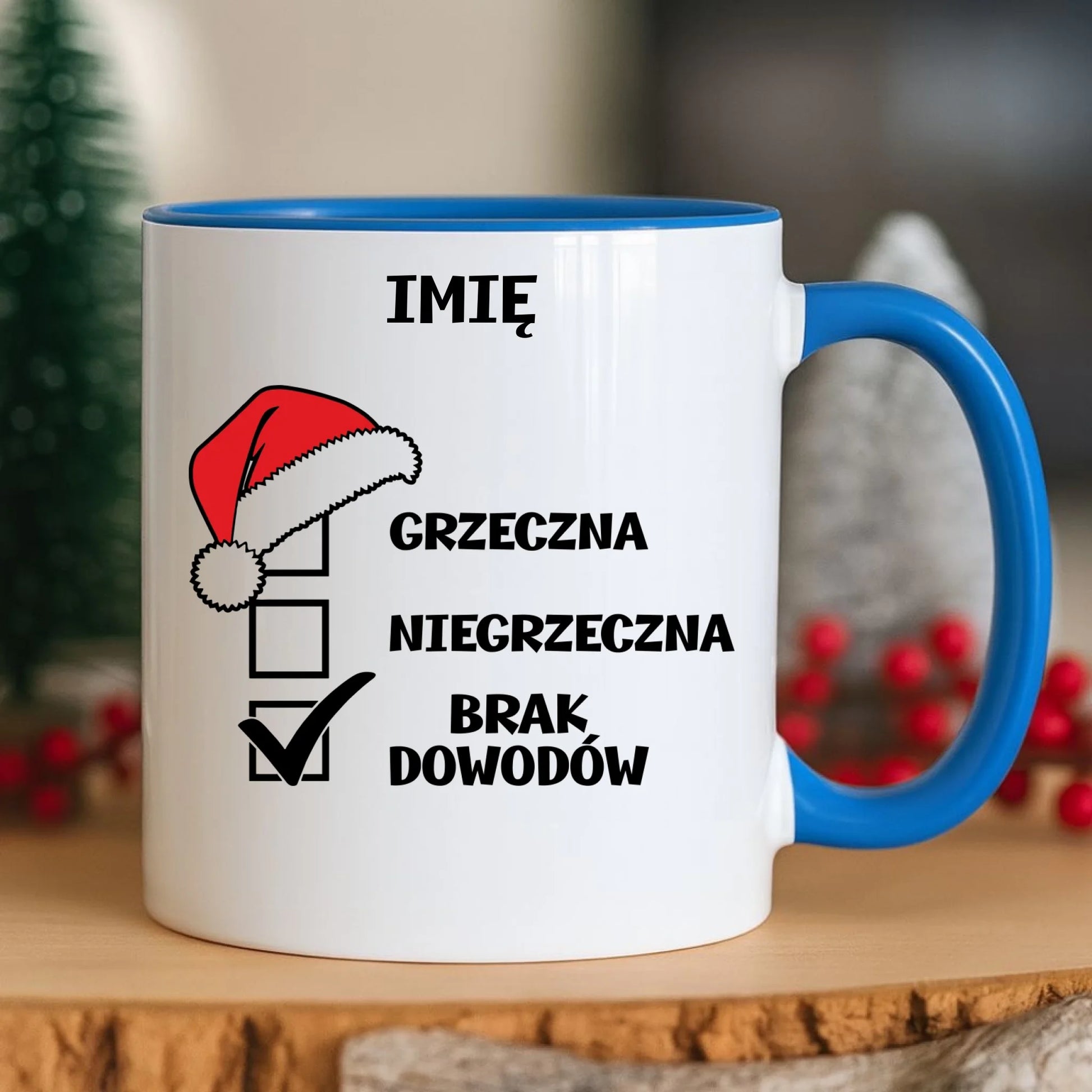 Kubek świąteczny - Grzeczna niegrzeczna brak dowodów - personalizowany BN147